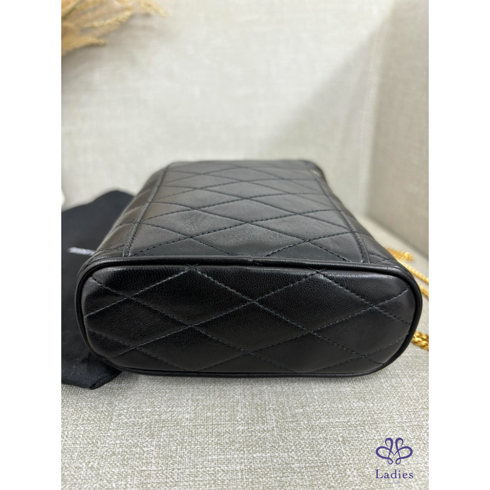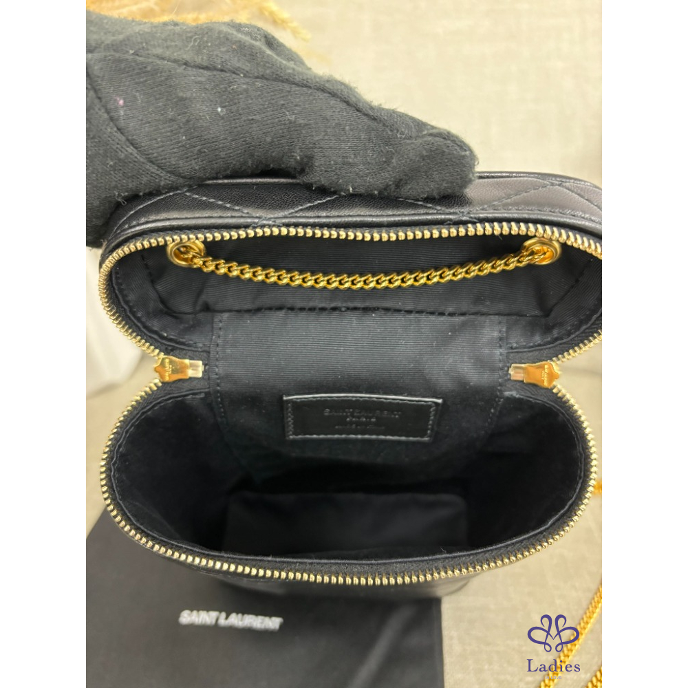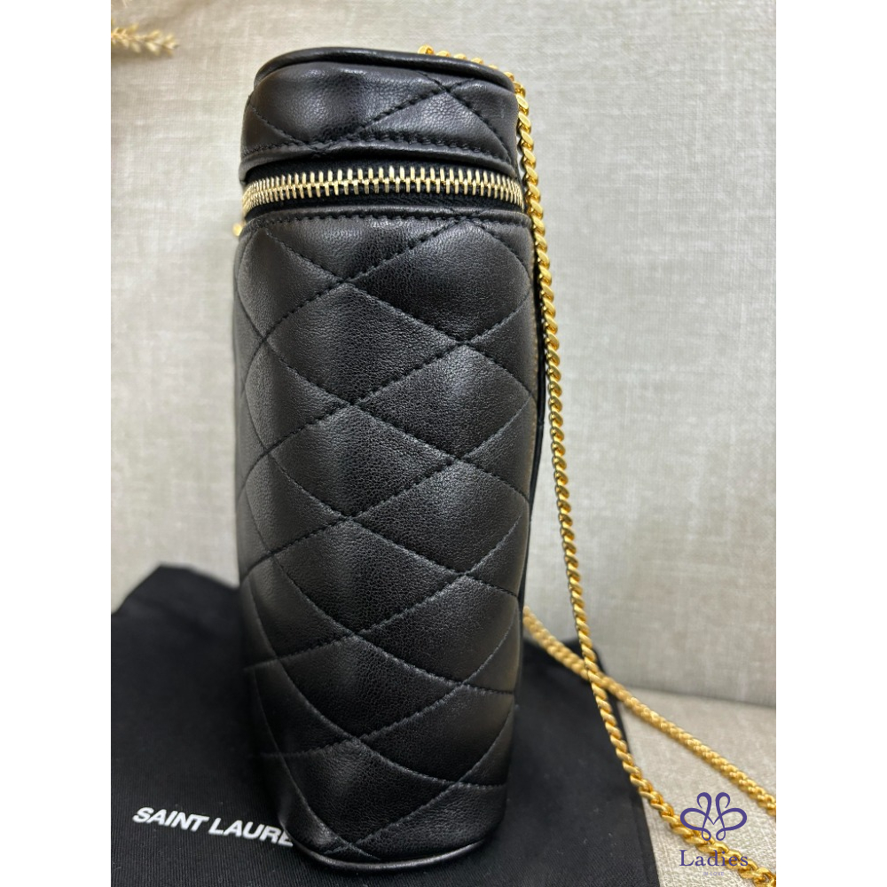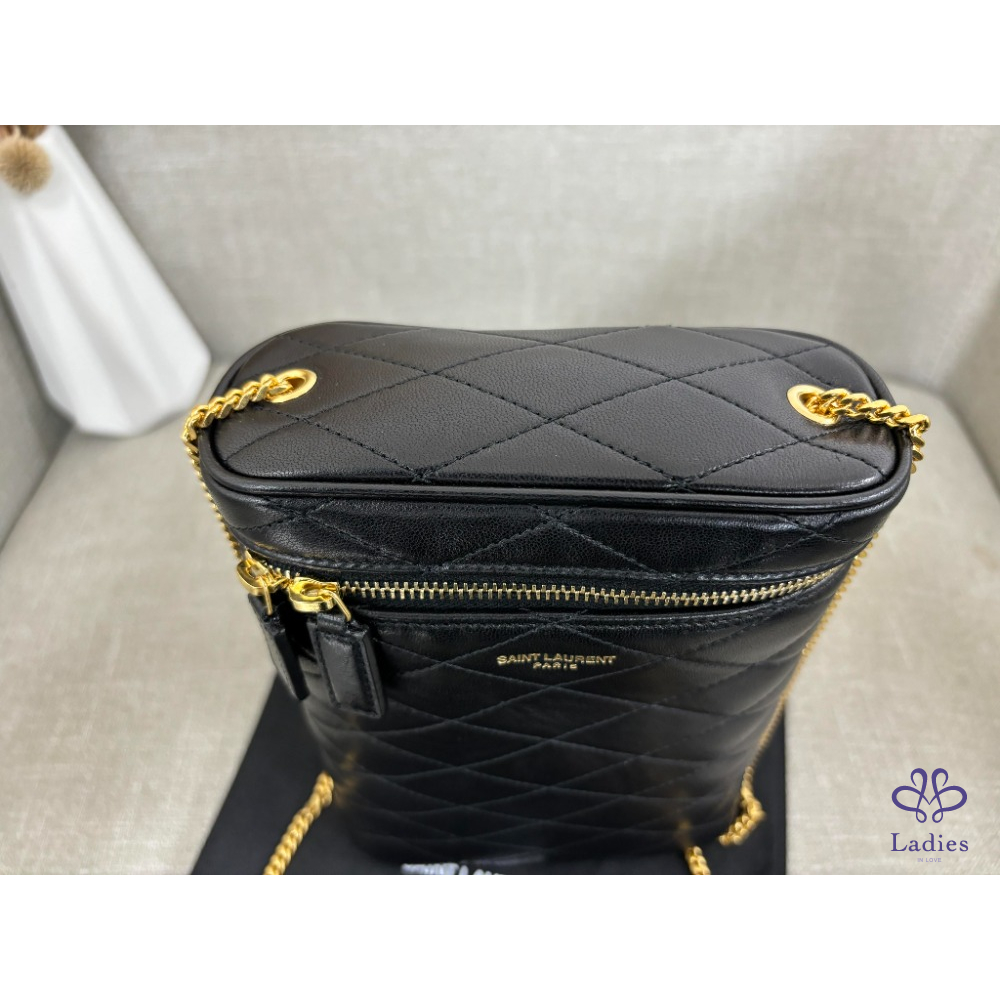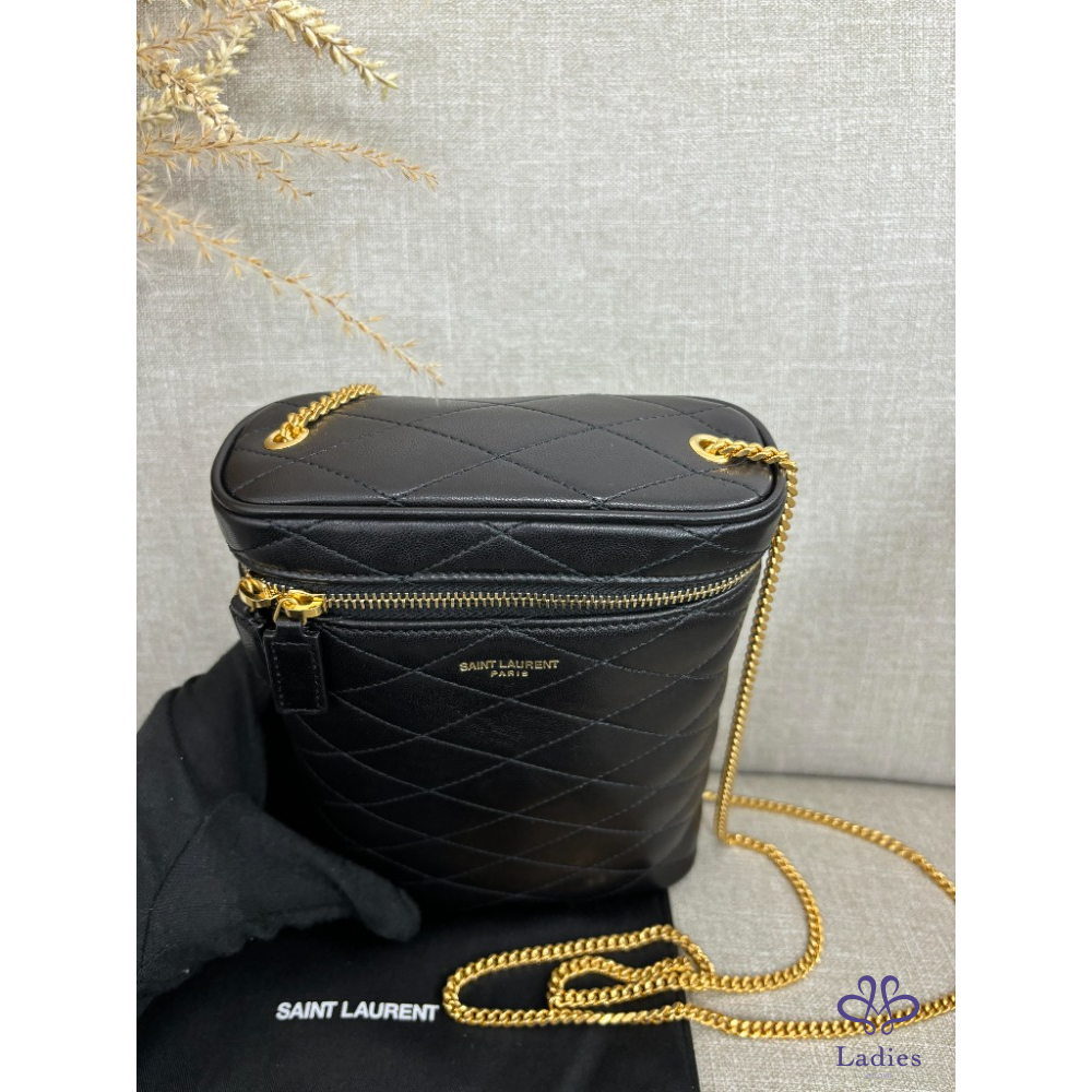 售  SAINT LAURENT 黑色菱格金色鍊條包