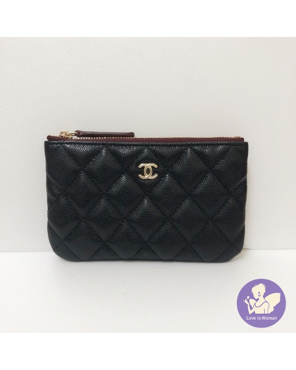 CHANEL 香奈兒 小香 秒殺 缺貨款 黑色 荔枝牛皮 金扣 一字拉鍊 零錢包 卡包 全新✨