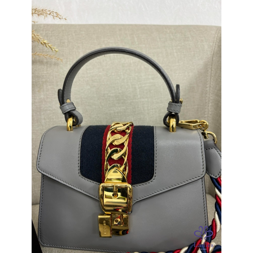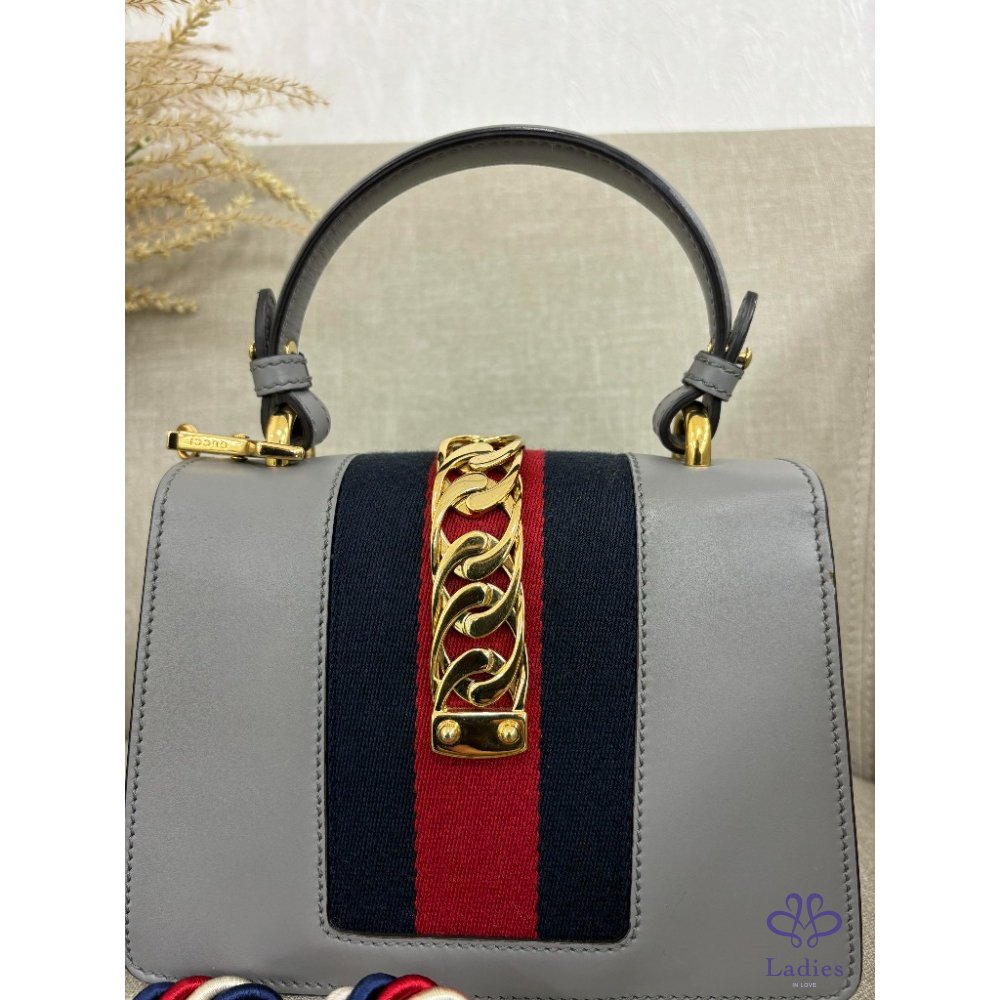 首頁 精品包包  Gucci Sylvie 灰色 手提肩背兩用包