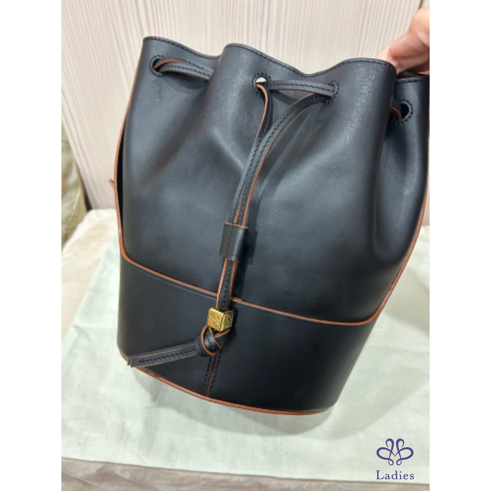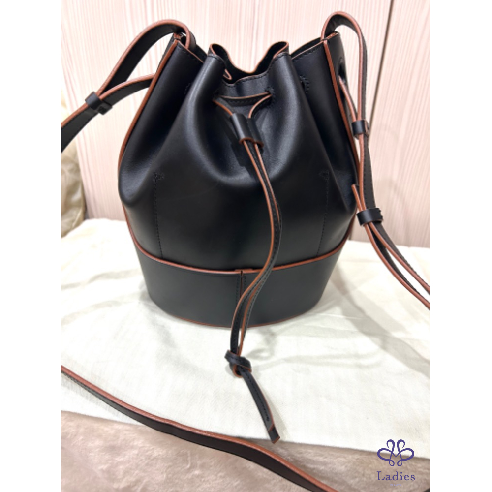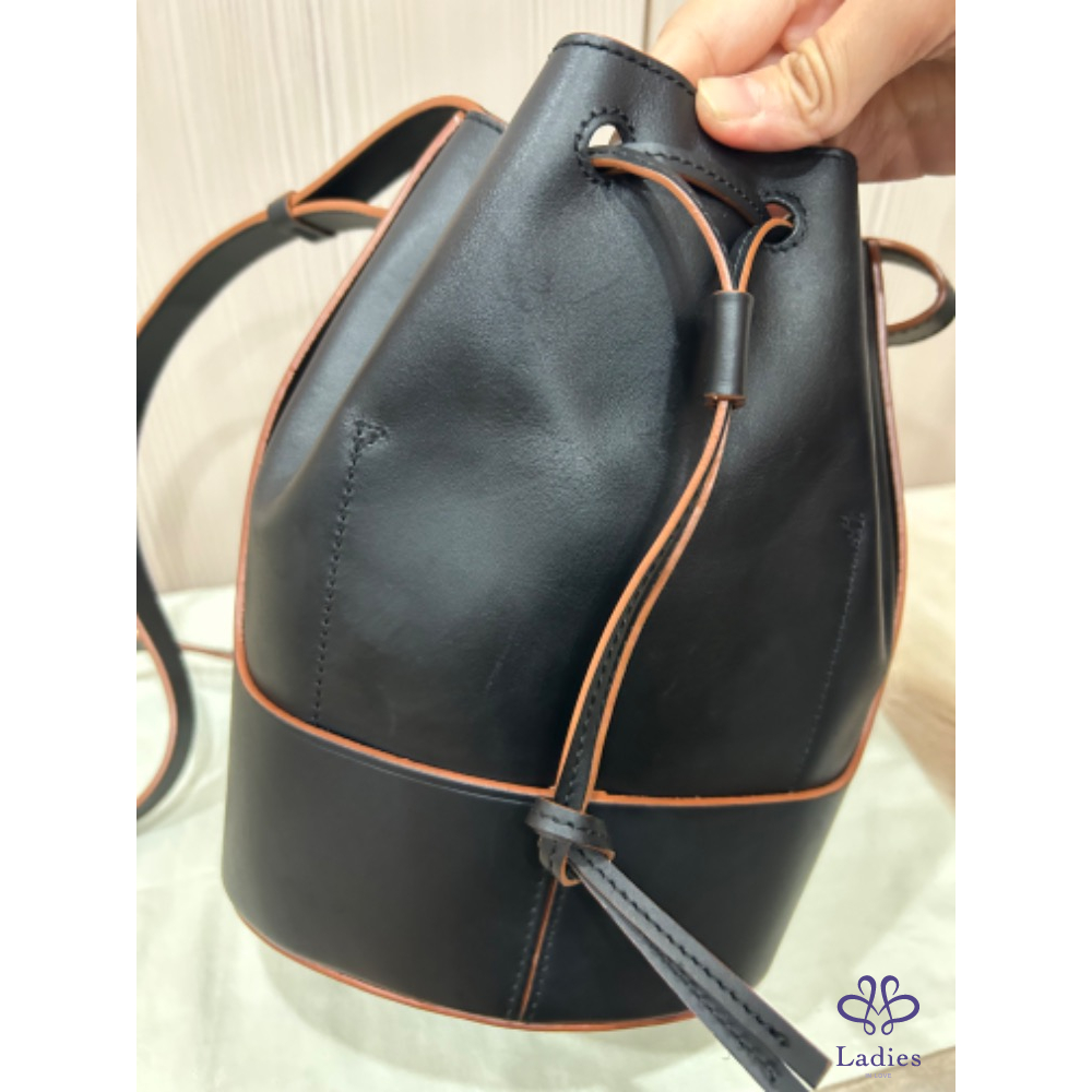 LOEWE Balloon 牛皮小型束口斜背氣球水桶包(黑色)