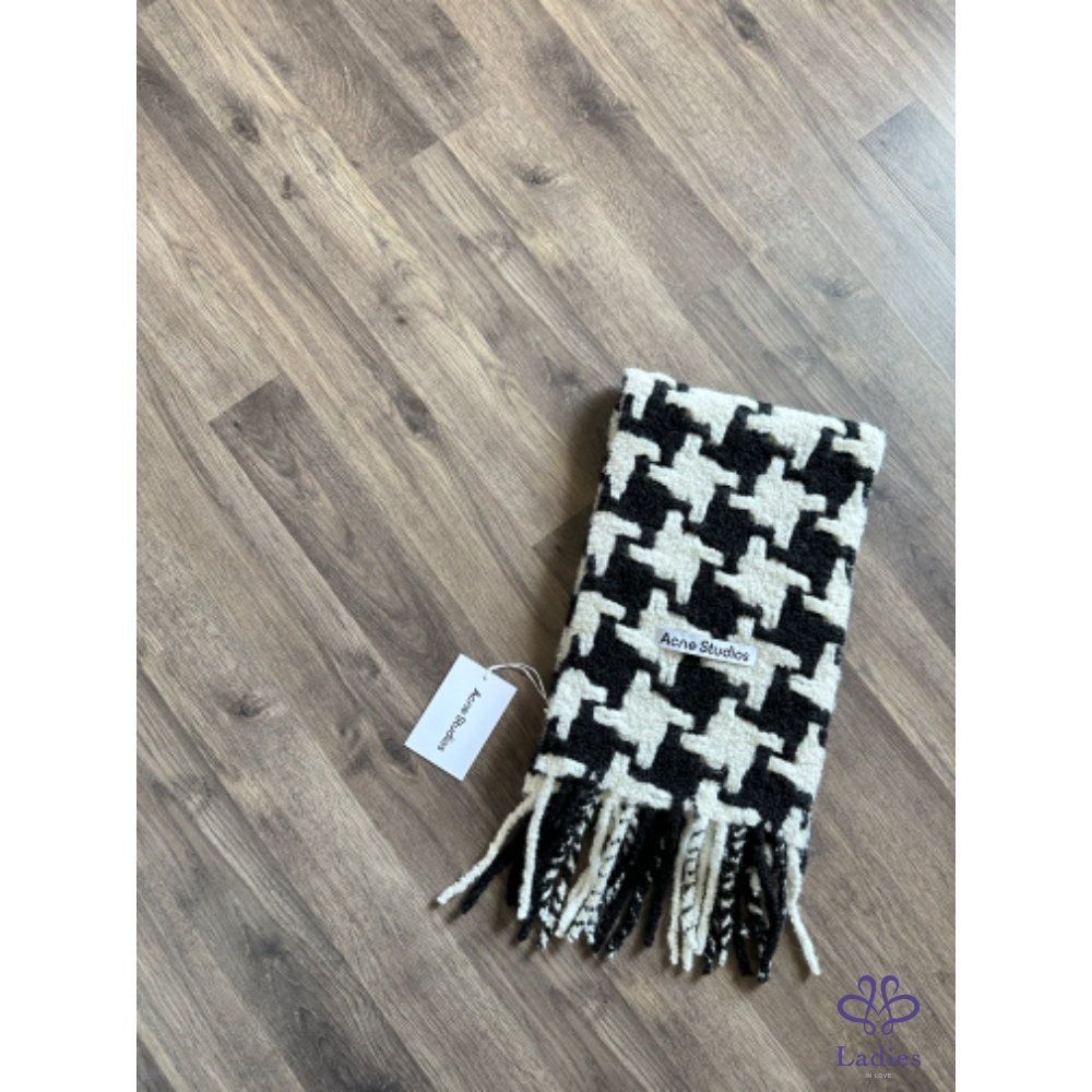 產品信息 A001664 全新 ACNE STUDIOS。Houndstooth 千鳥格羊駝毛 圍巾 全新 電商購入約11000 Instagram熱門單品 黑白千鳥格 萬年經典款式 高級時尚 非常好搭配 羊駝毛輕柔軟 親膚保暖 90% alpaca。10% nylon 尺寸210*26 義大利製 畢竟離櫃商品,高標勿入,售出不退喔