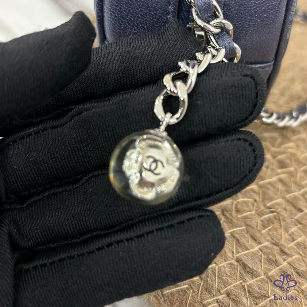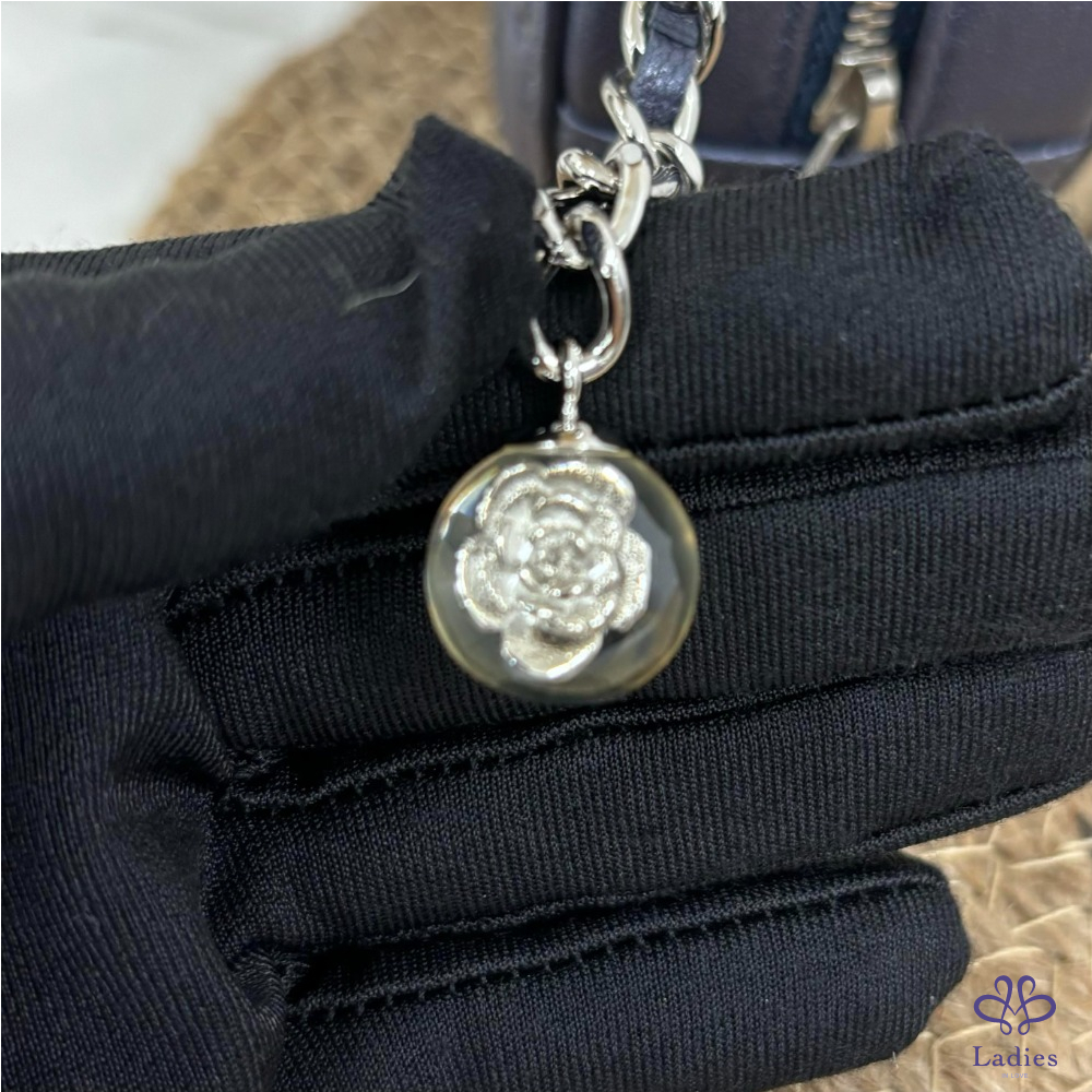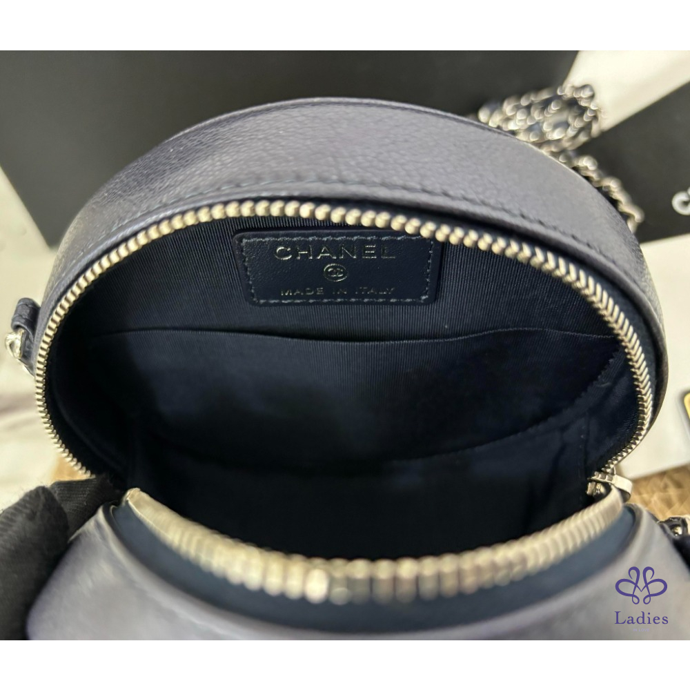 Chanel 藍紫色經典山茶花壓紋小圓餅包