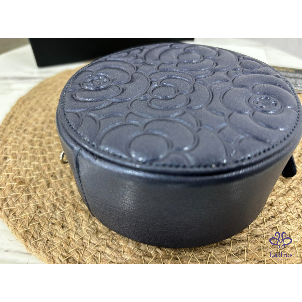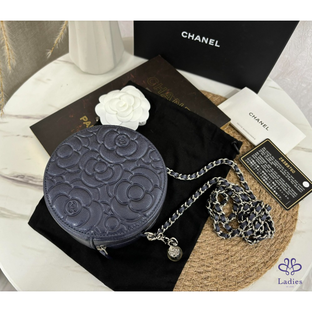 首頁 精品包包 Chanel 藍紫色經典山茶花壓紋小圓餅包