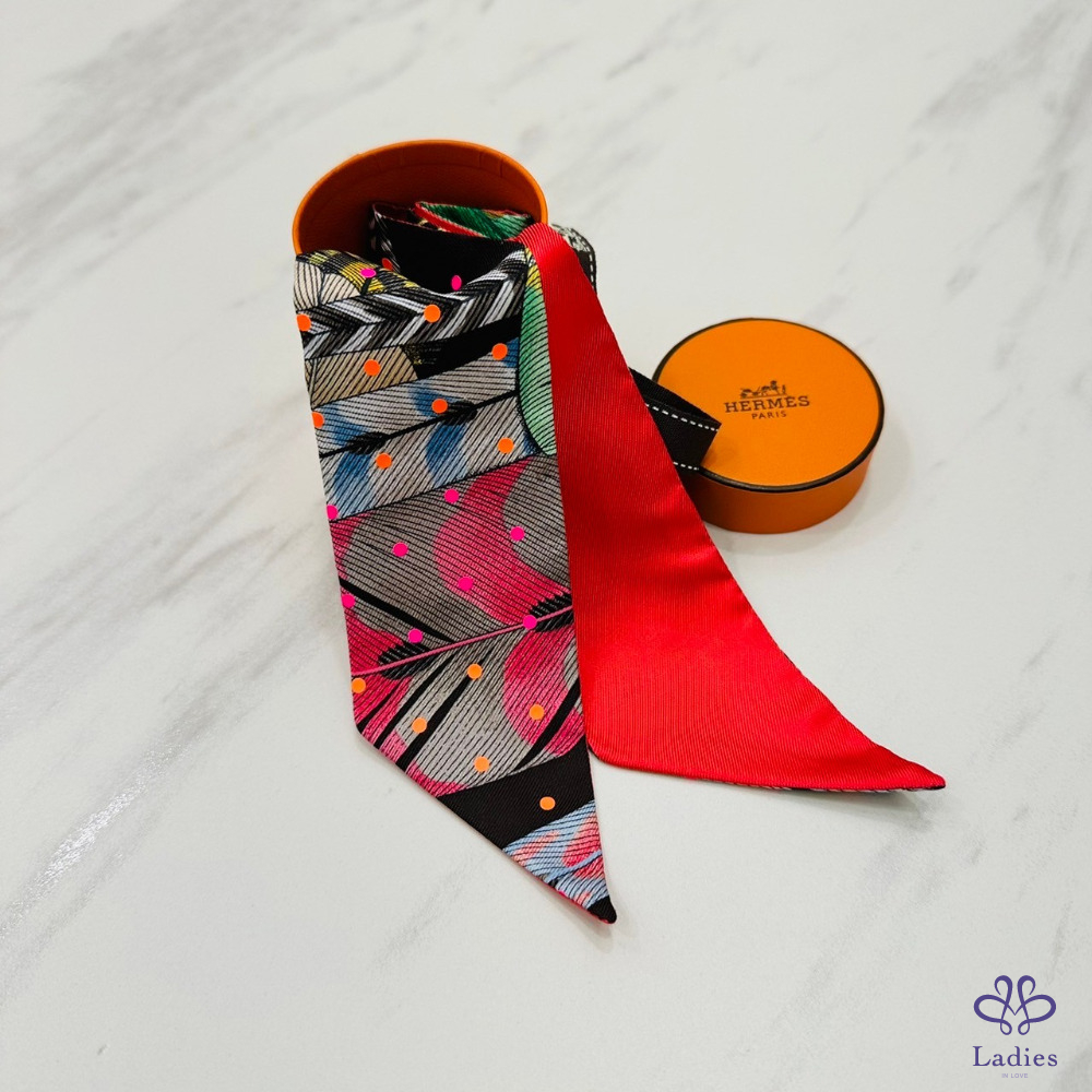 售 Hermes Plumetis Twilly x hg/rose 愛馬仕特殊限量款綁帶長絲巾