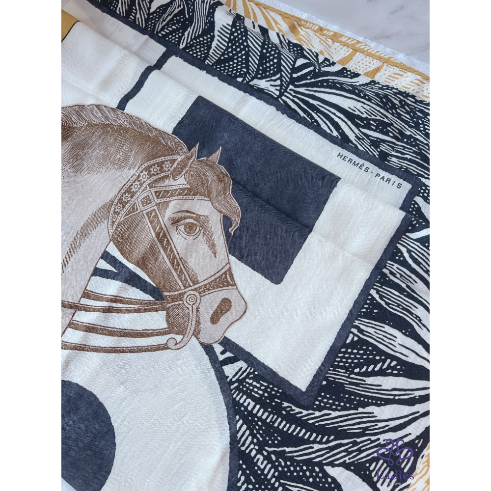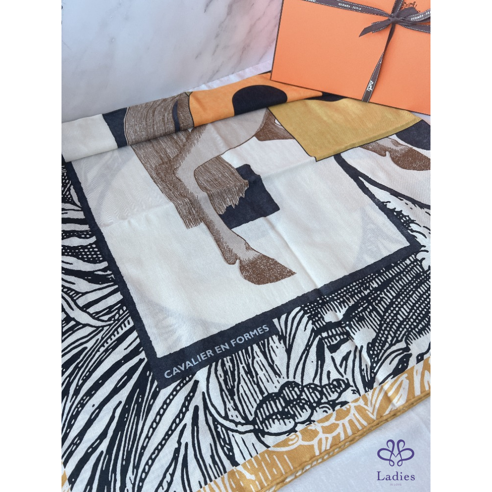 Hermes愛馬仕 CAVALIER EN FORMES優雅騎士140cm輕羊絨披肩|荷蘭購證x全配