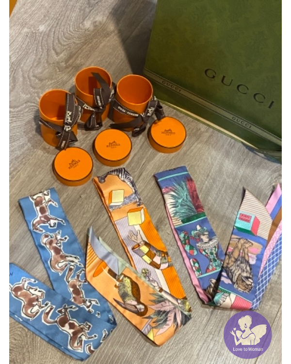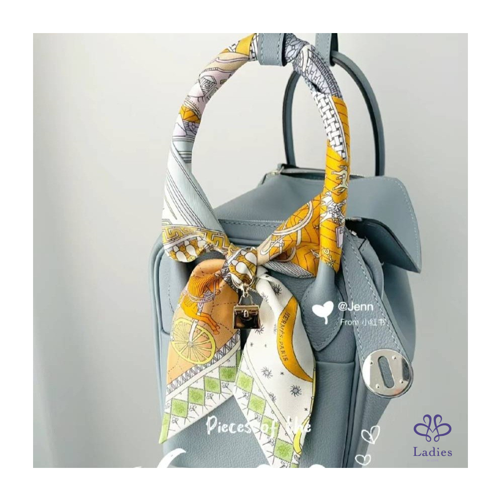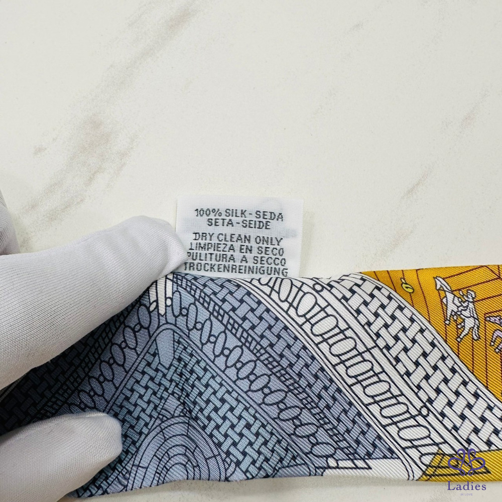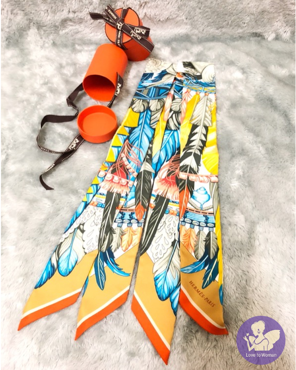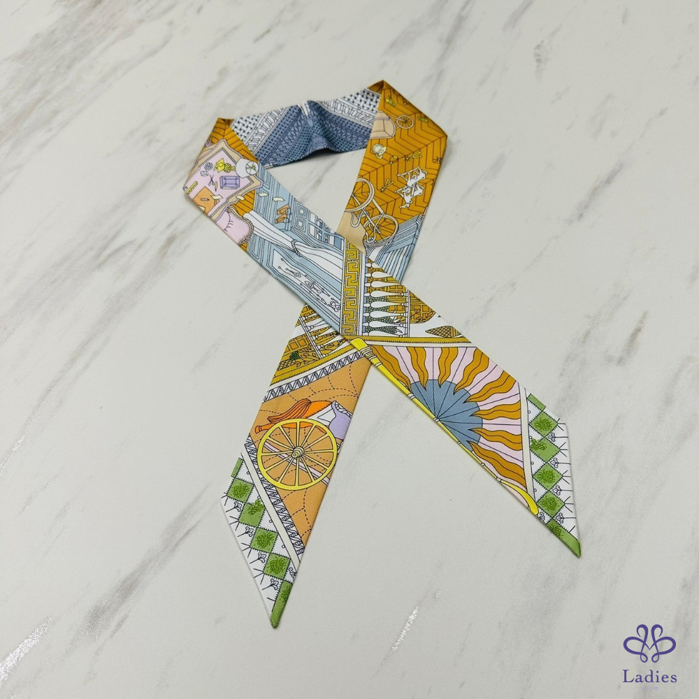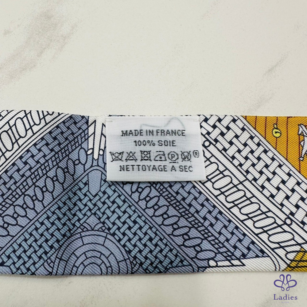 售 Hermes Objets de Curiosite Twilly x gris bleuté/miel/blanc 愛馬仕好奇心(奇珍異寶)藍灰/蜂蜜/白 綁帶長絲巾