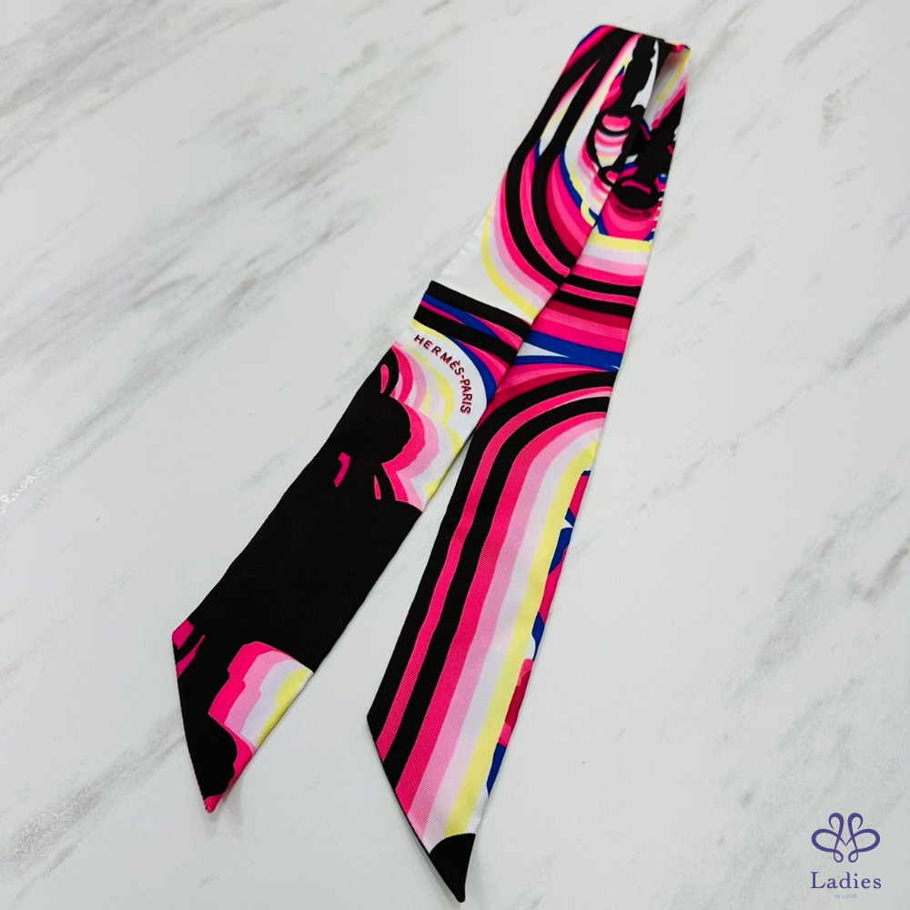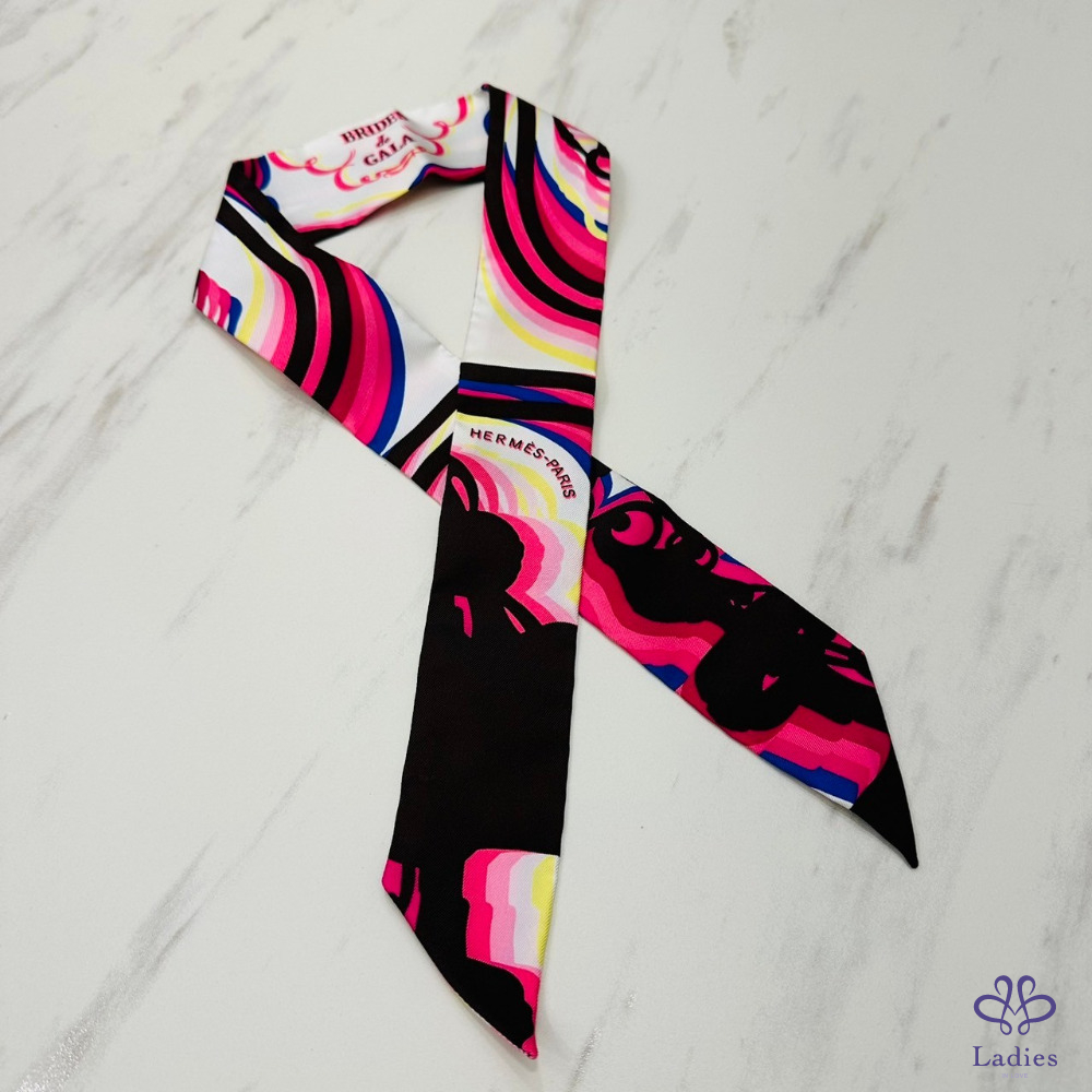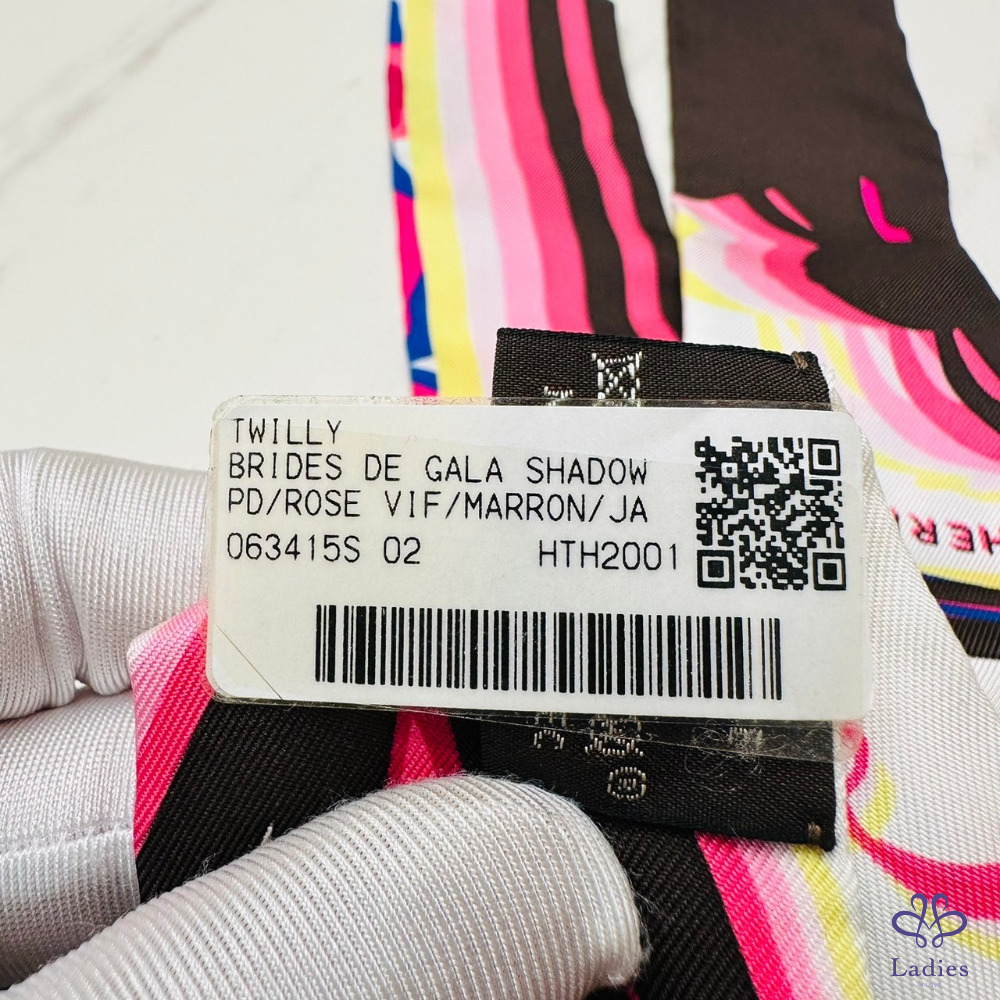 售 Hermes Brides De Gala Shadow Twilly x pd/rose vif/marron/jaune 愛馬仕疊影華麗的韁轡綁帶長絲巾