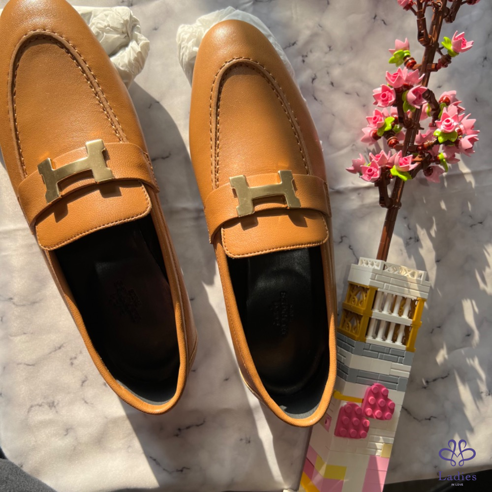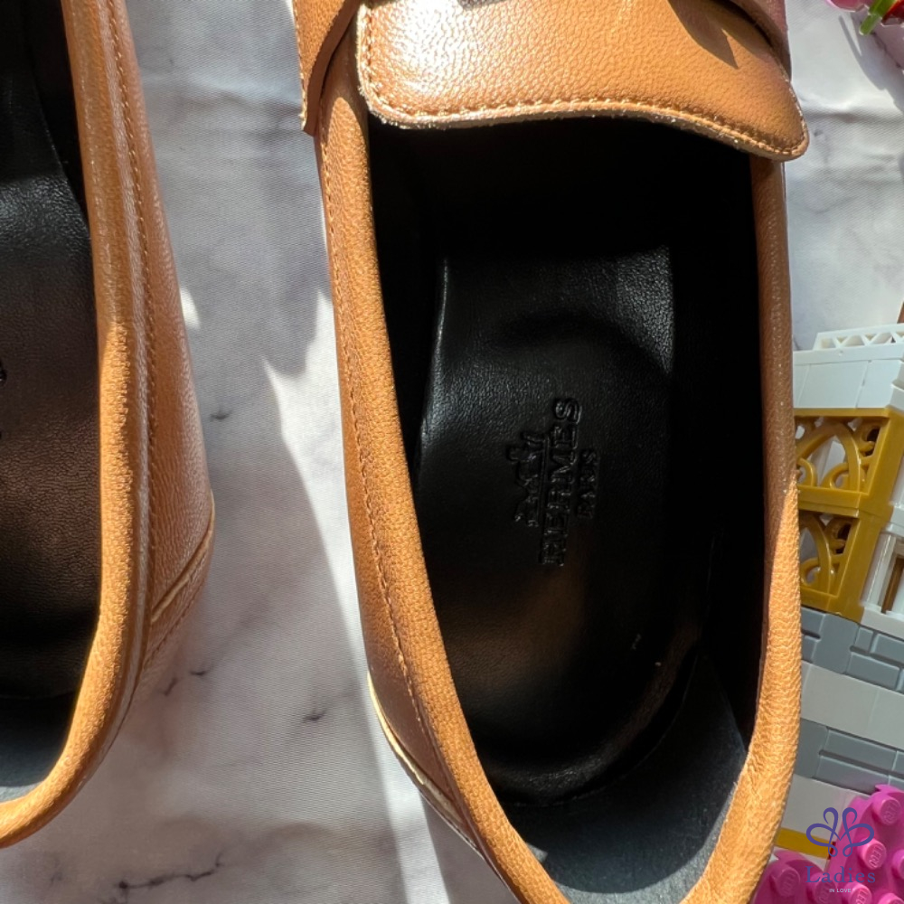 Hermes 全新 Muler Paris 金棕色 樂福鞋 37