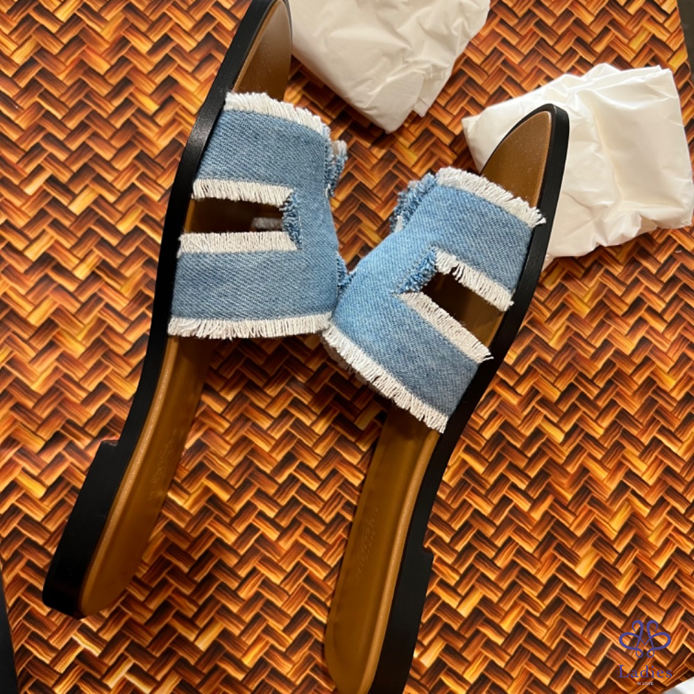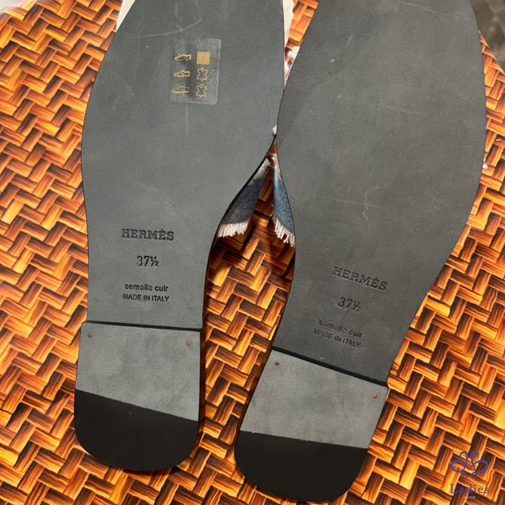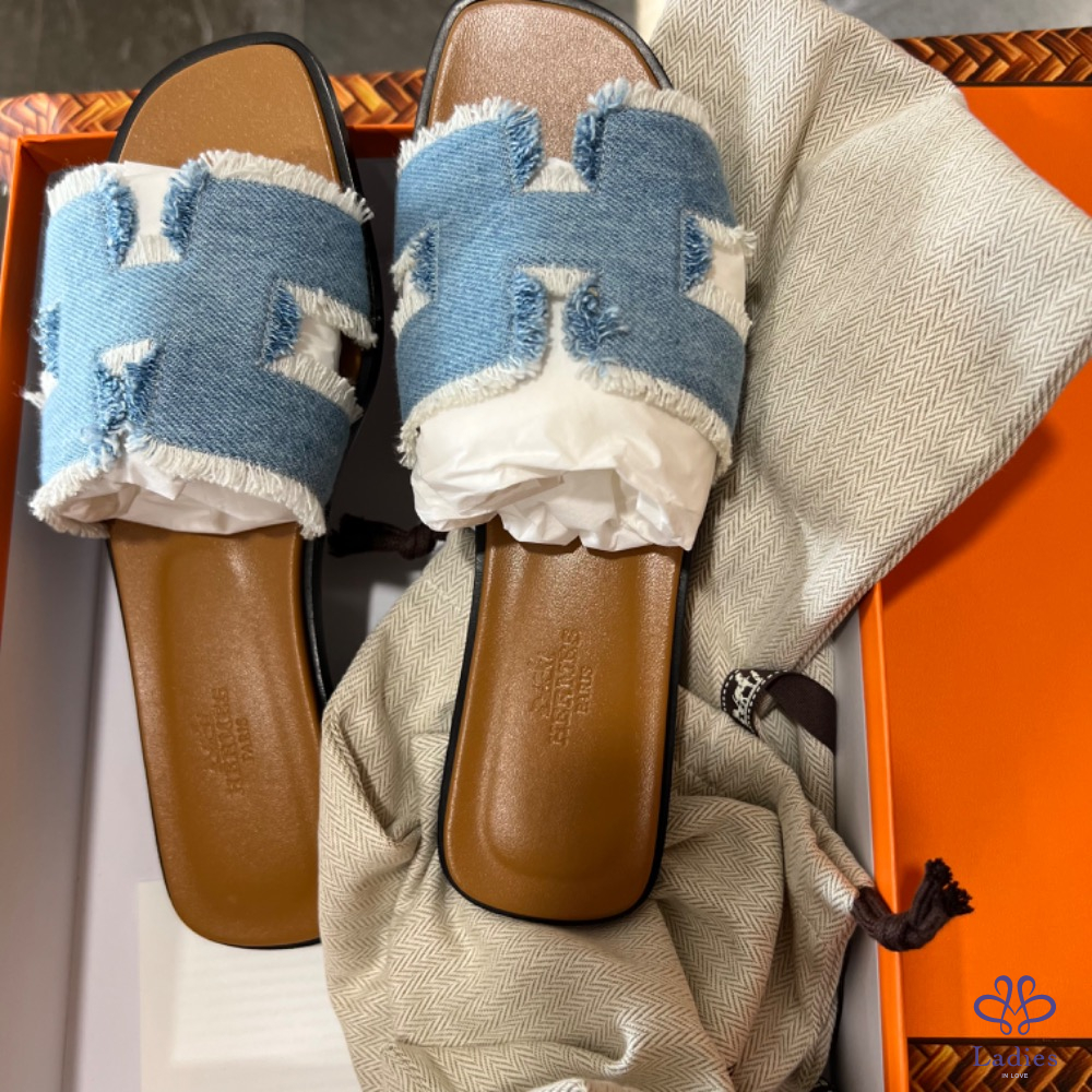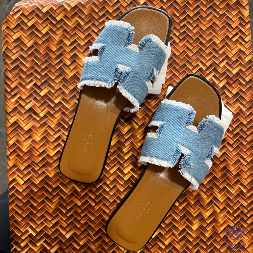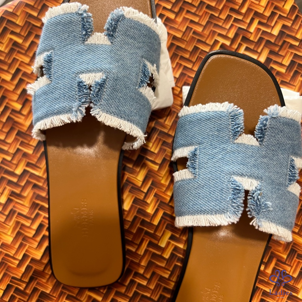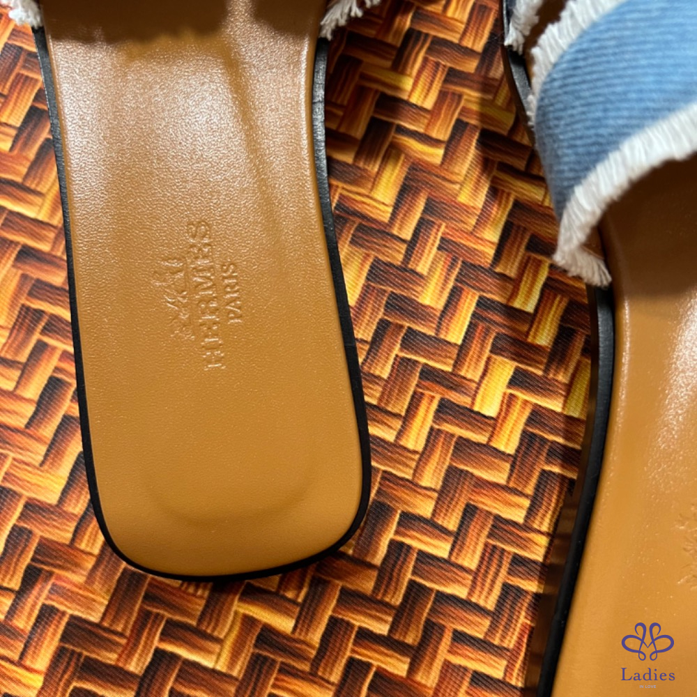 產品信息 A013132 售 離櫃新 Hermès ORAN 流蘇牛仔款 2024新款 37.5 號 #Ada在寵愛 售價 : 25800元 含郵寄 入手價:台灣愛馬仕專櫃購入,入手價約台幣27000元 使用狀況:離櫃商品,實際狀況如照片。 附件:購證電子檔、紙盒 新款的牛仔系列,在外緣做流蘇,更顯隨性,搭配性佳