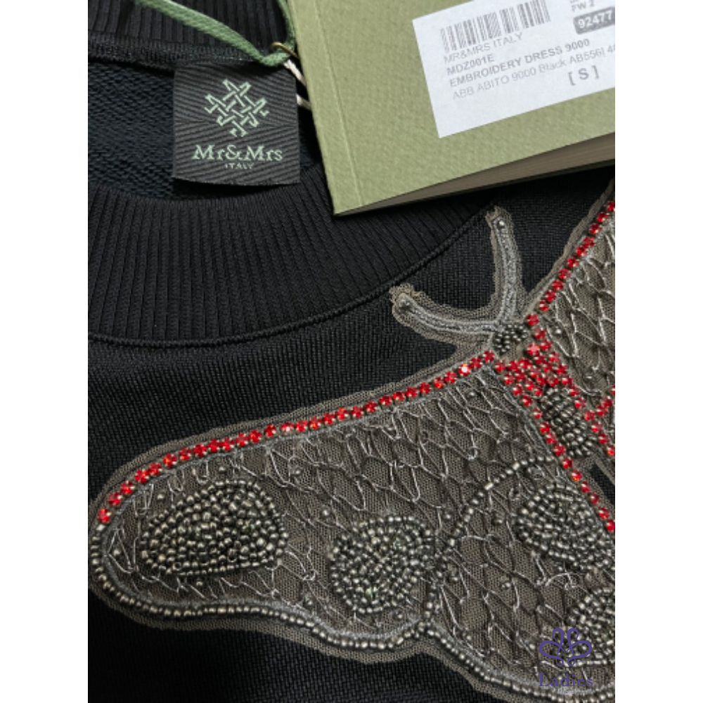 全新Mr & Mrs Italy 立體蝴蝶刺繍黑色連身裙