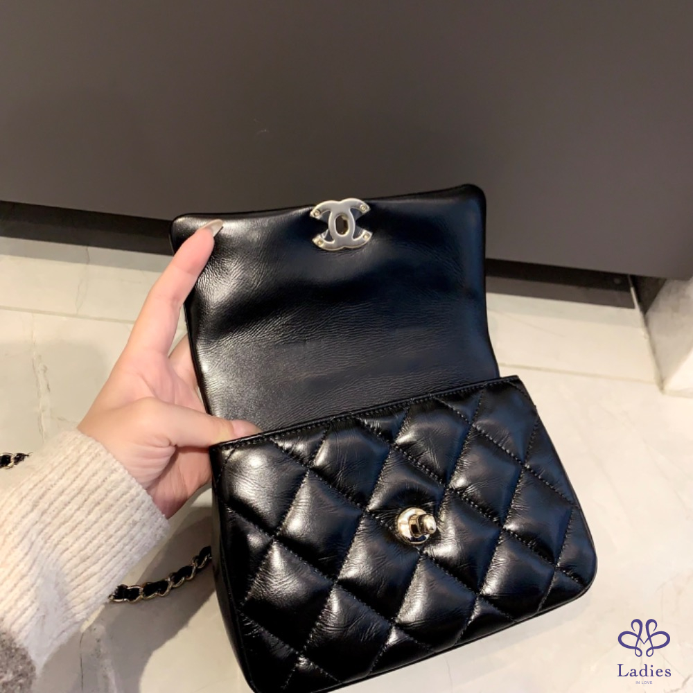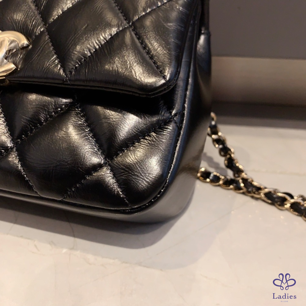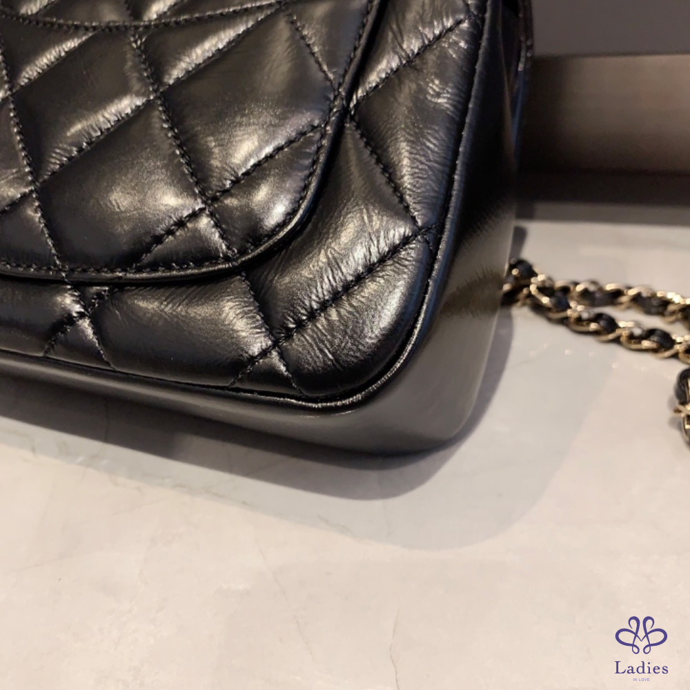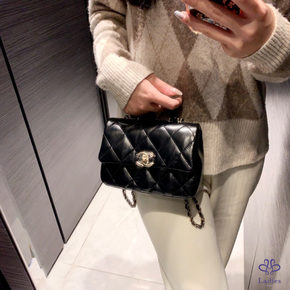 Chanel 口蓋包 黑色淡金釦 晶片款