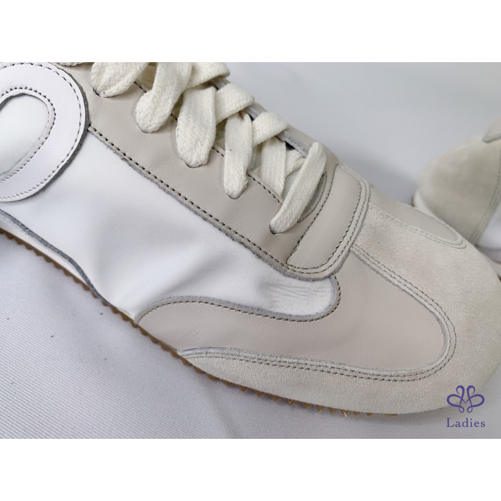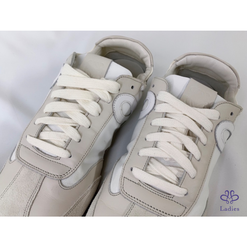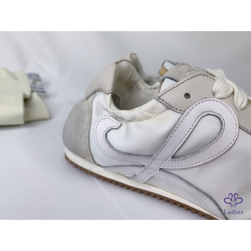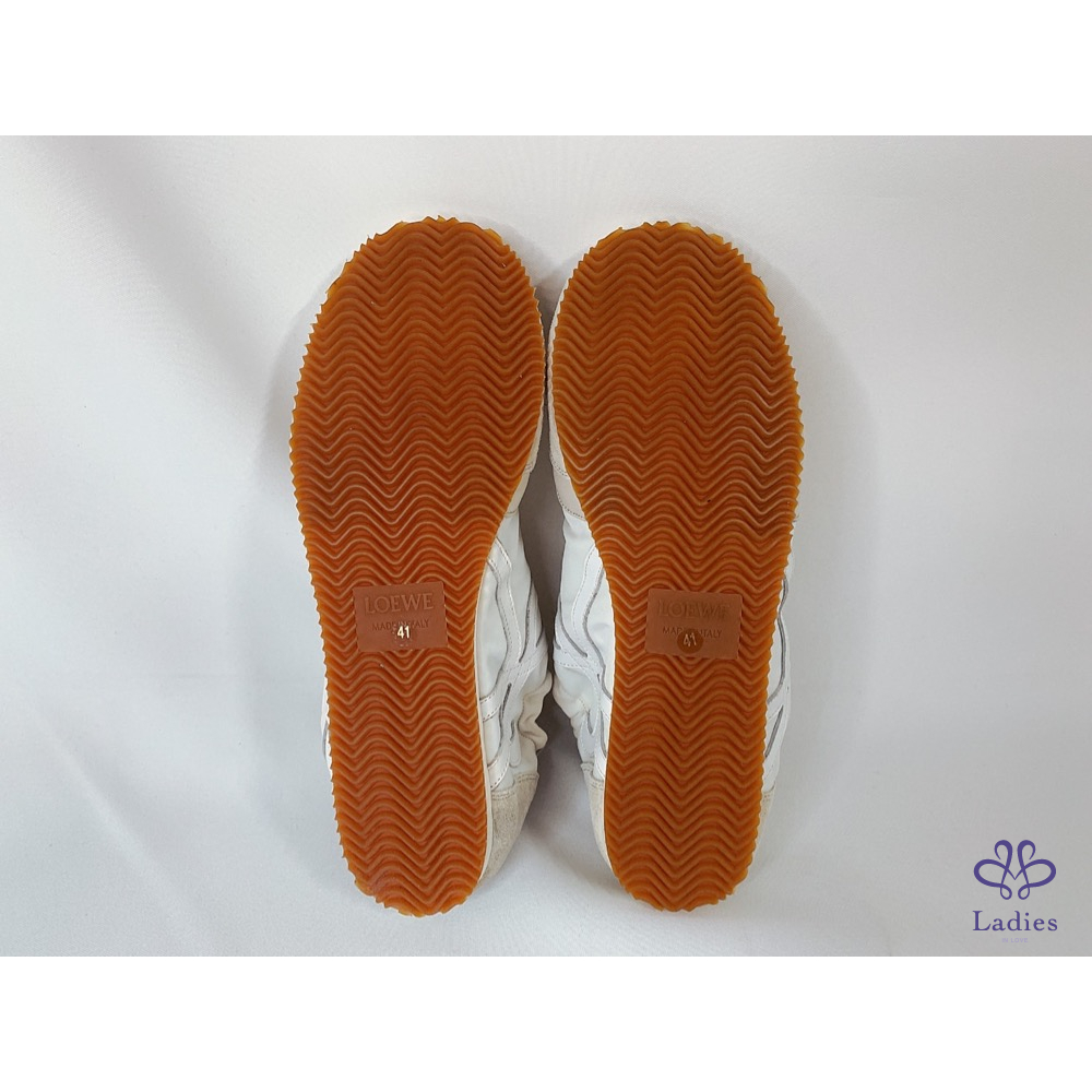 產品信息 【LOEWE 男款米白尼龍皮革芭蕾跑鞋】 ????這款質地輕盈的運動鞋採用柔軟鞋底和彈力側面設計???? ????融合芭蕾軟鞋構造與1970年代跑鞋款式???? #閒置未穿鞋面鞋底僅有輕微存放痕跡???? ????整體品項約9成新,二手商品均有正常使用/存放痕跡 ????尺寸:41號 ????附件:原廠防塵袋 #A112092103
