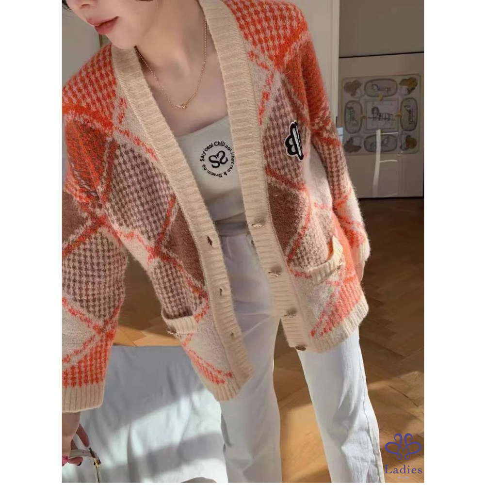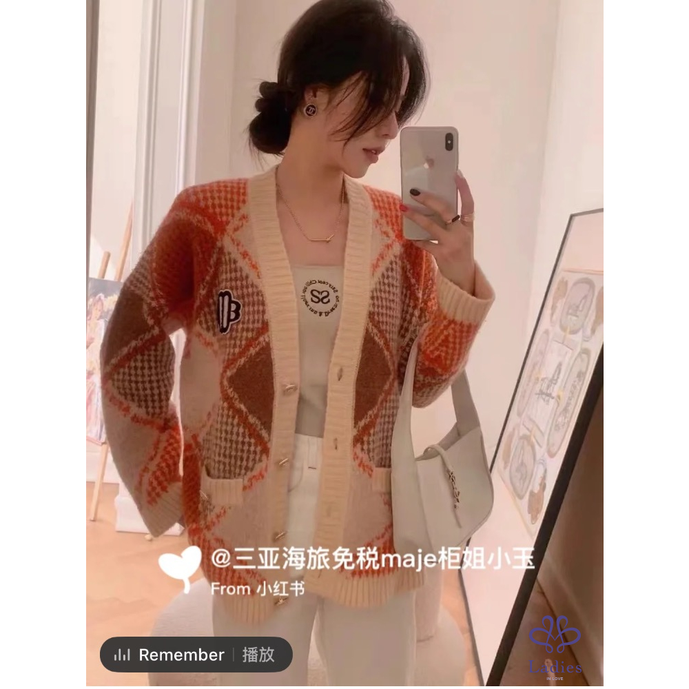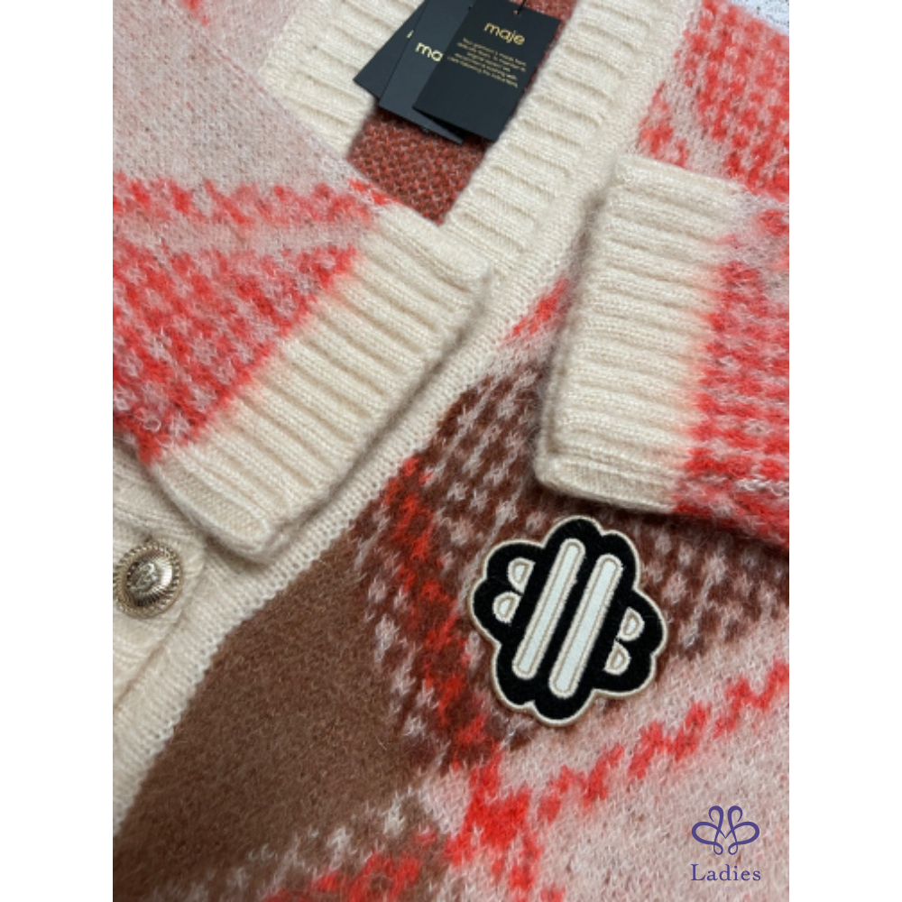 首頁 精品服飾 全新MAJE小香風粉橘格紋針織外套