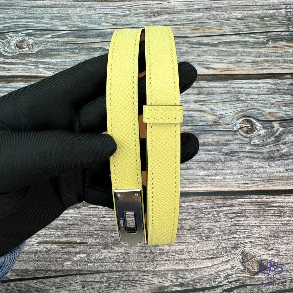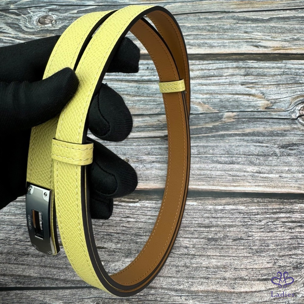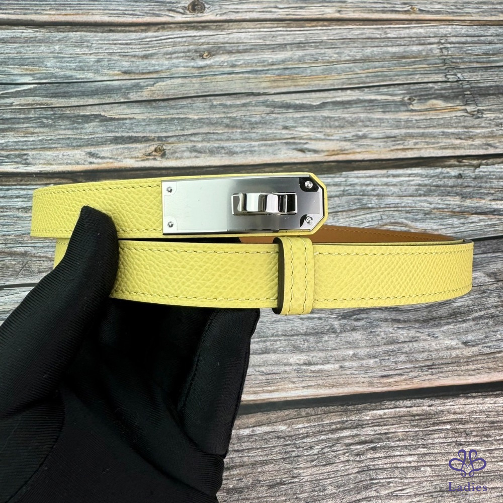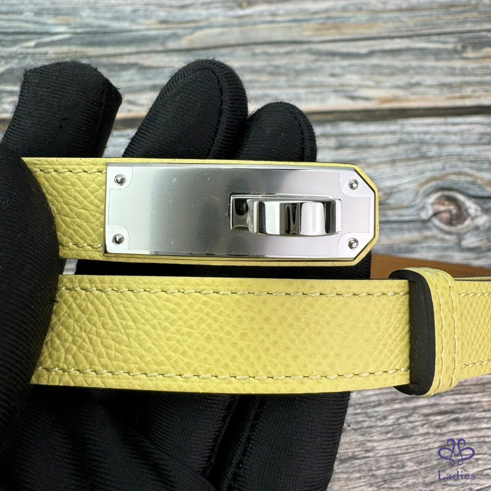 Hermes Kelly皮帶 櫃上超難買的款式,小雞黃配上銀扣超級好看,自由伸縮不限腰圍,褲裝 群裝搭配都完全沒問題