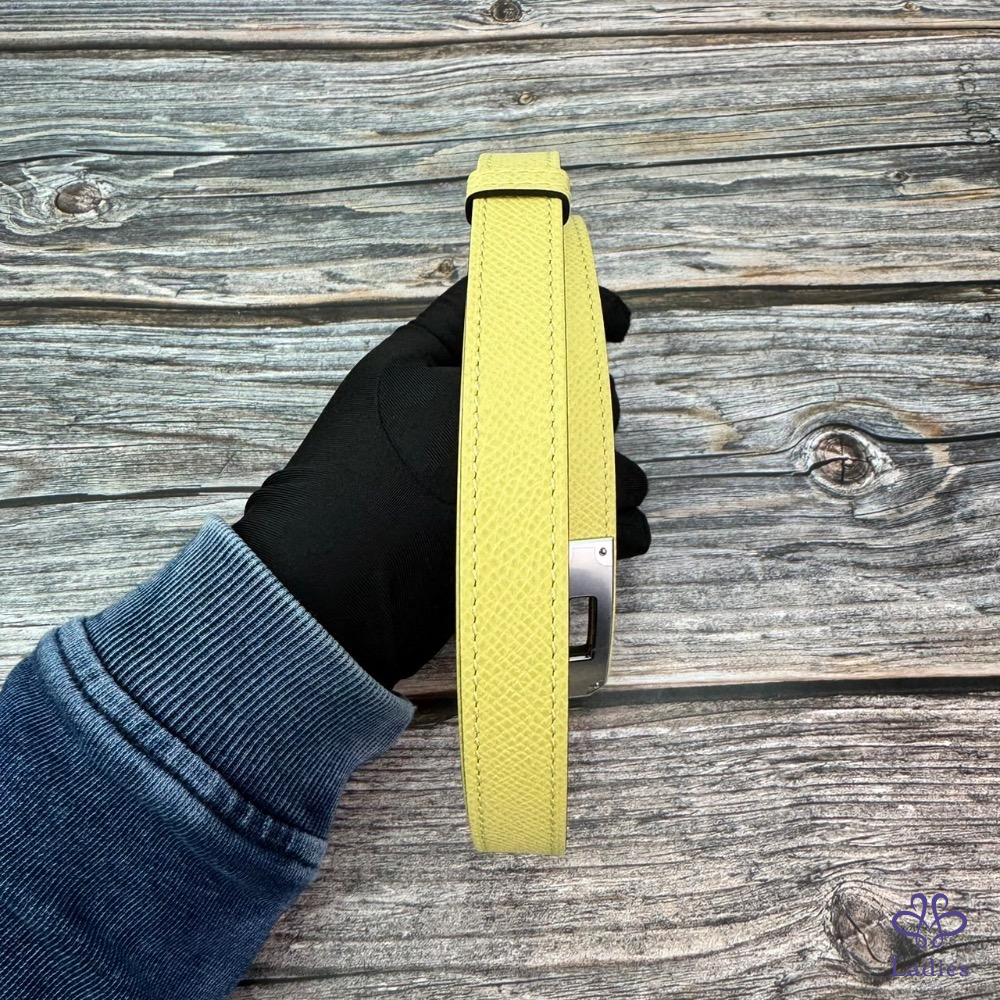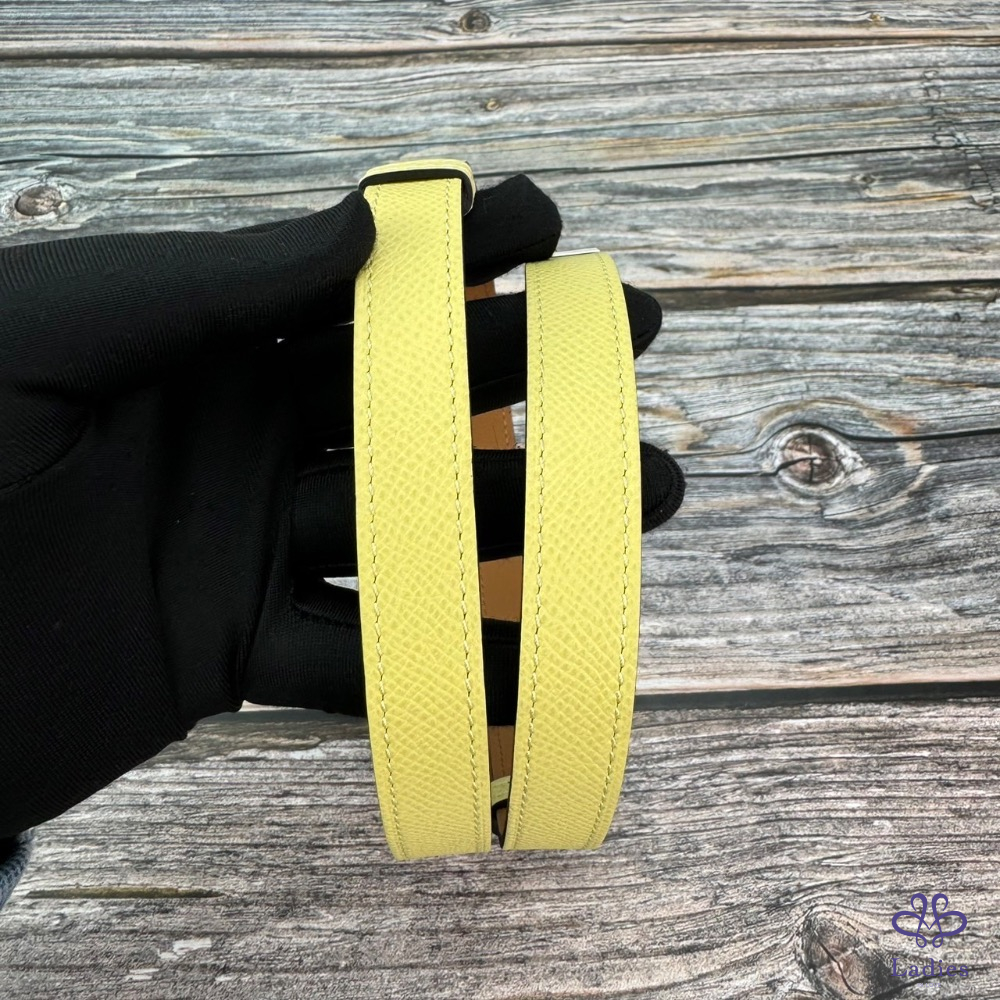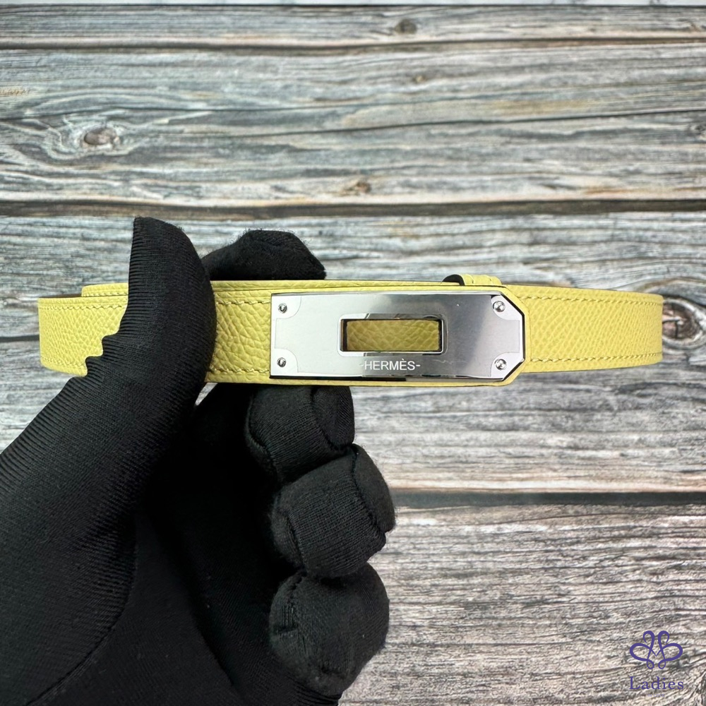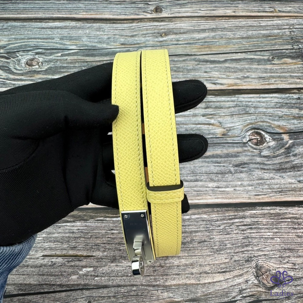 Hermes Kelly皮帶 櫃上超難買的款式,小雞黃配上銀扣超級好看,自由伸縮不限腰圍,褲裝 群裝搭配都完全沒問題