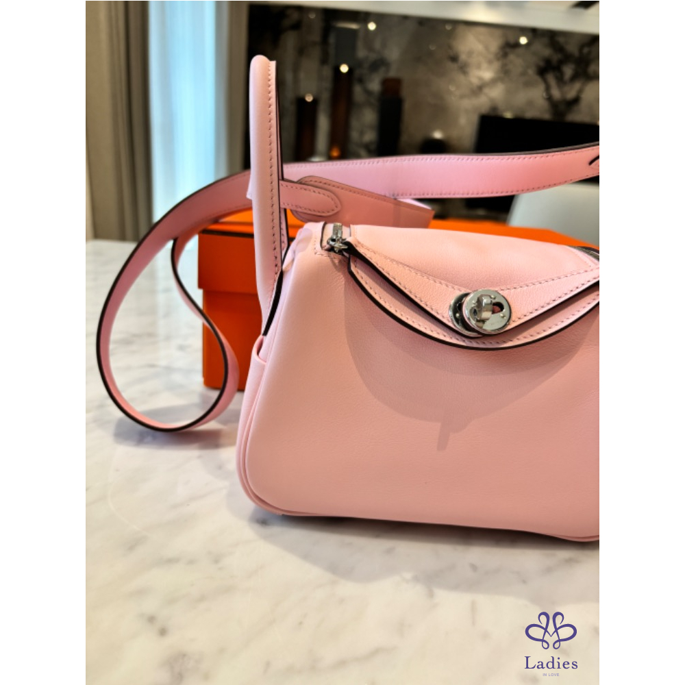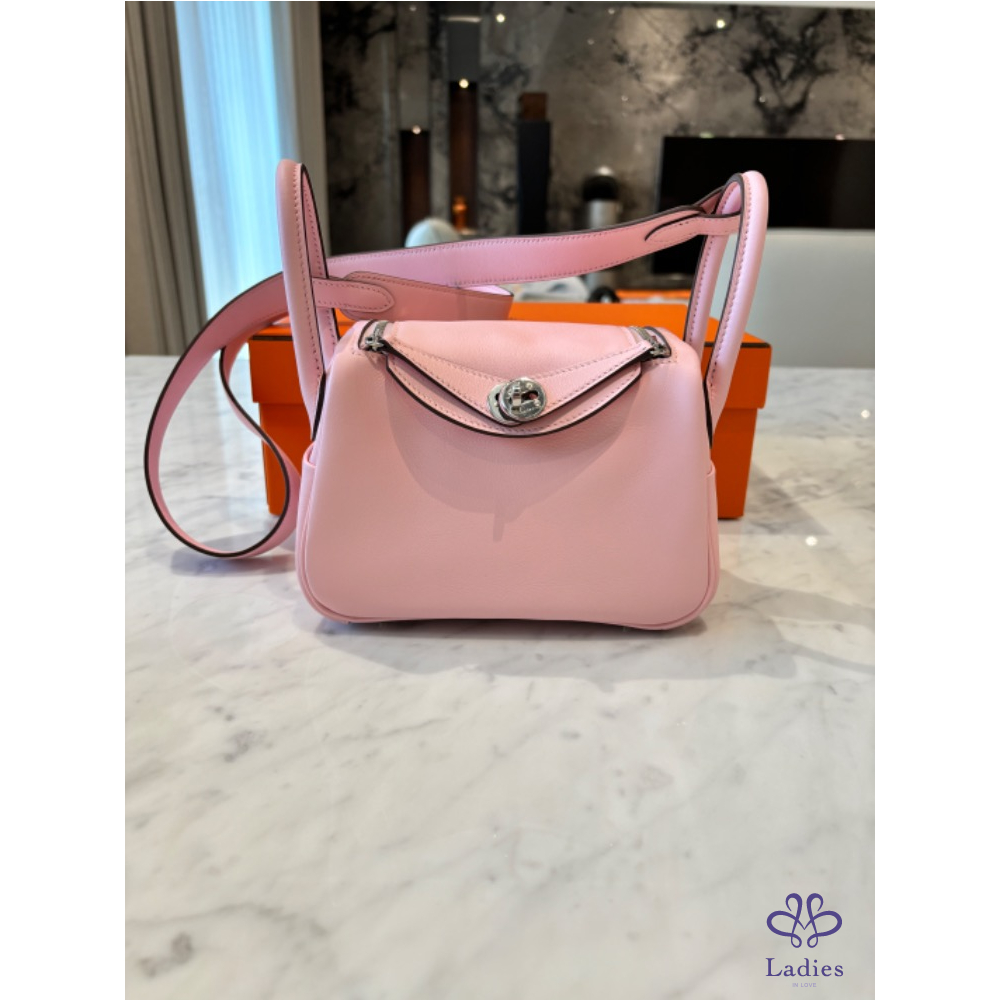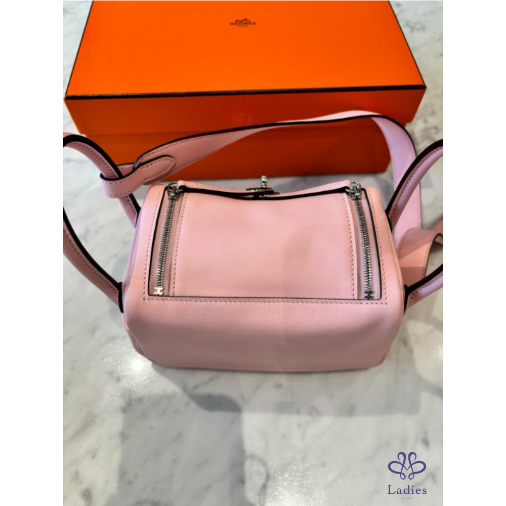 售Hermes mini lindy 3Q櫻花粉銀扣