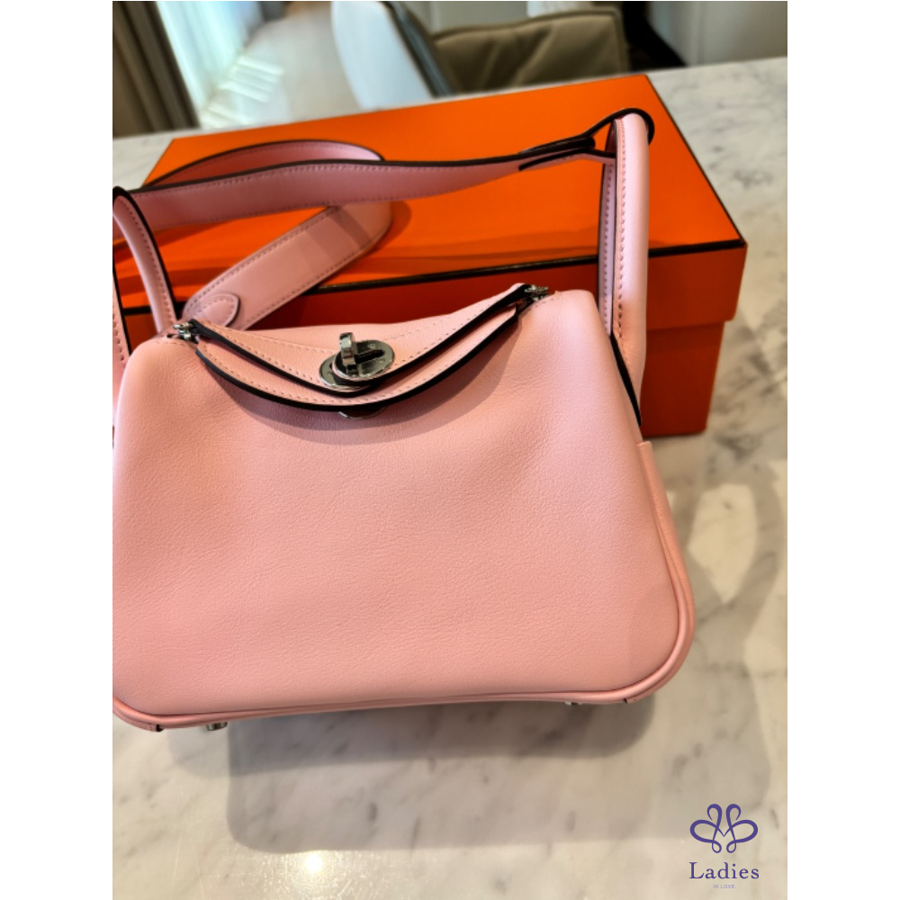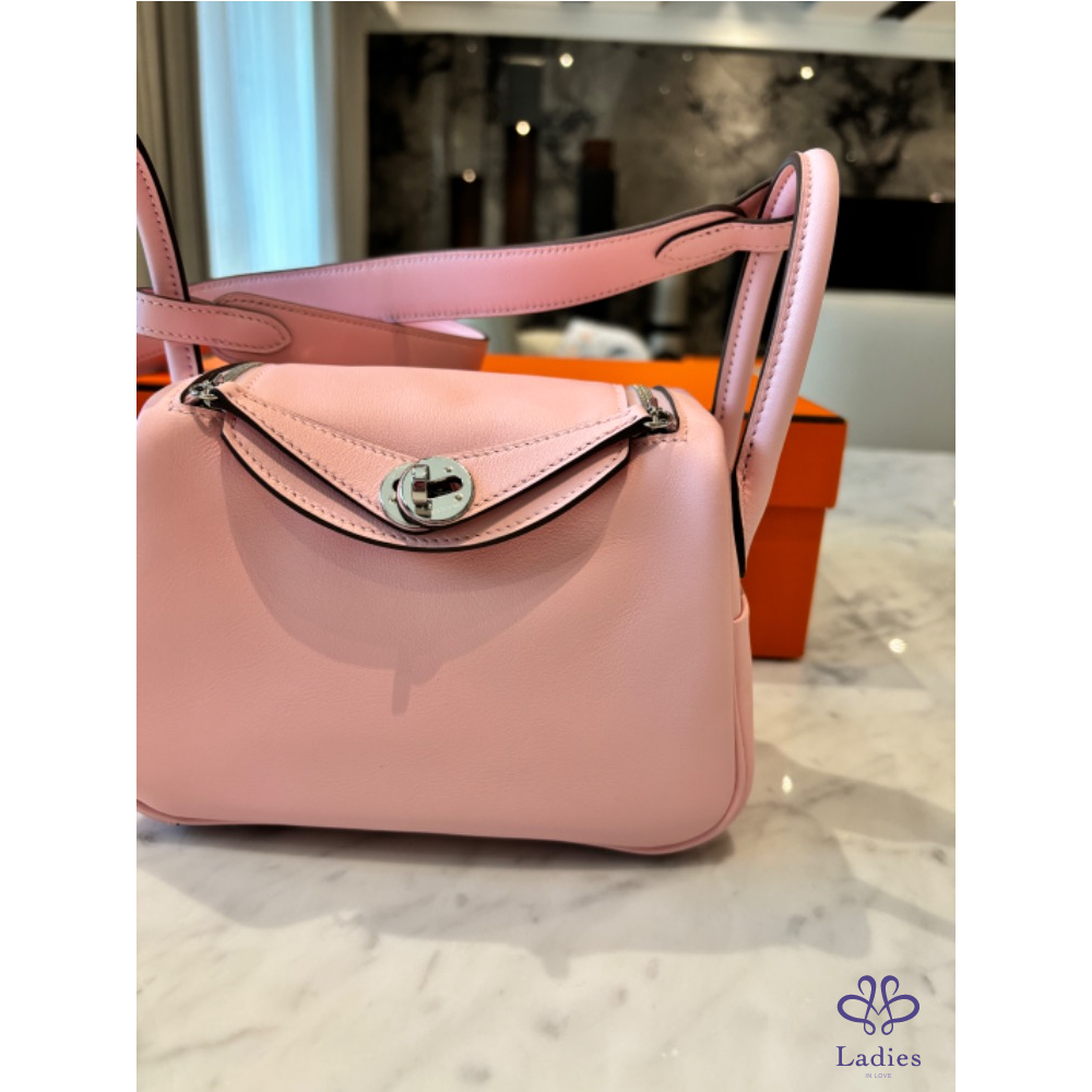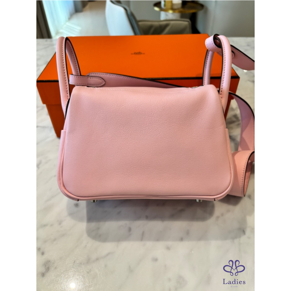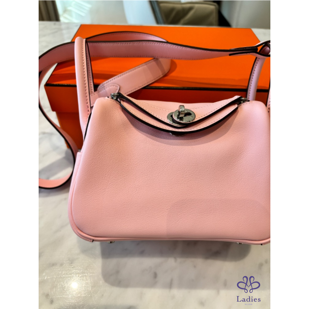 售Hermes mini lindy 3Q櫻花粉銀扣