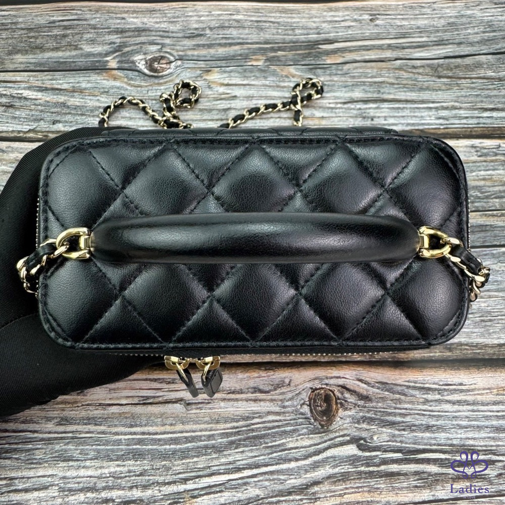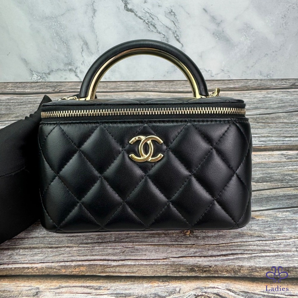 #CHANEL 金屬手柄長盒子黑淡金 #芯片款