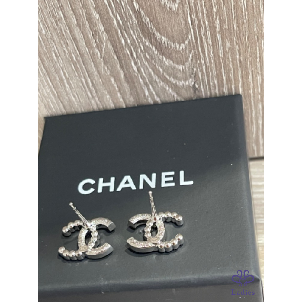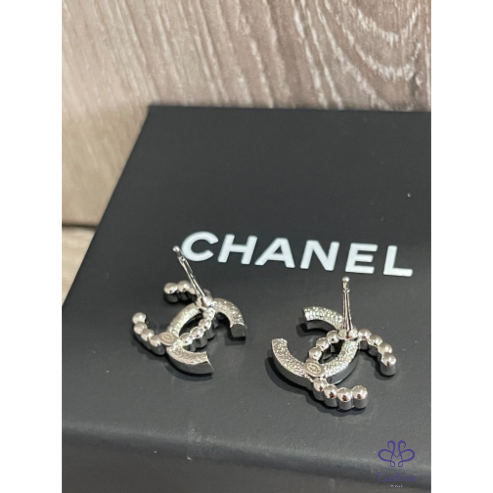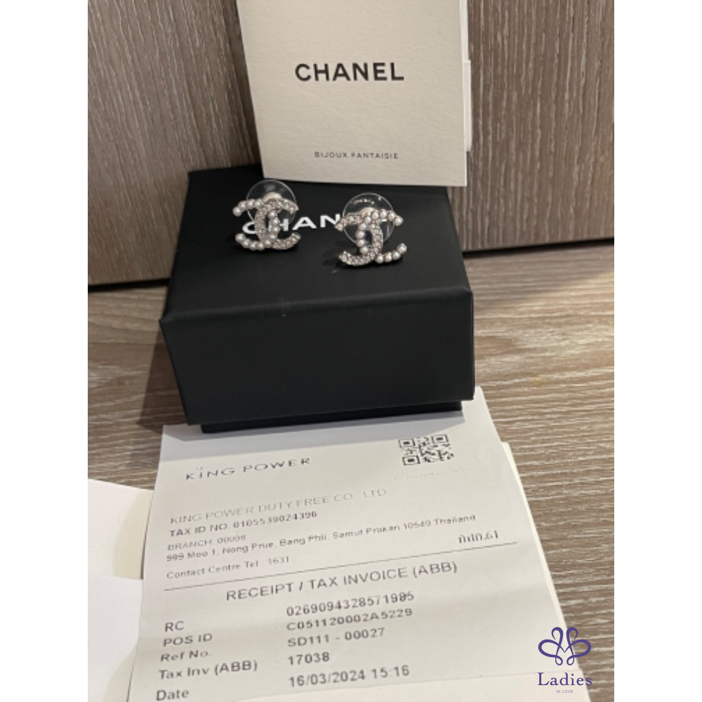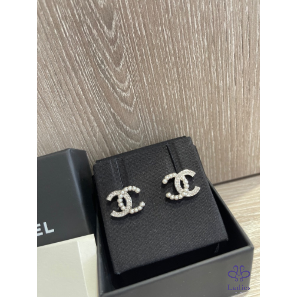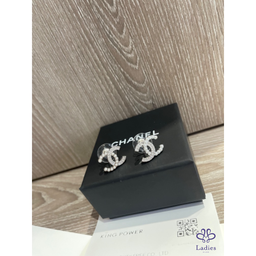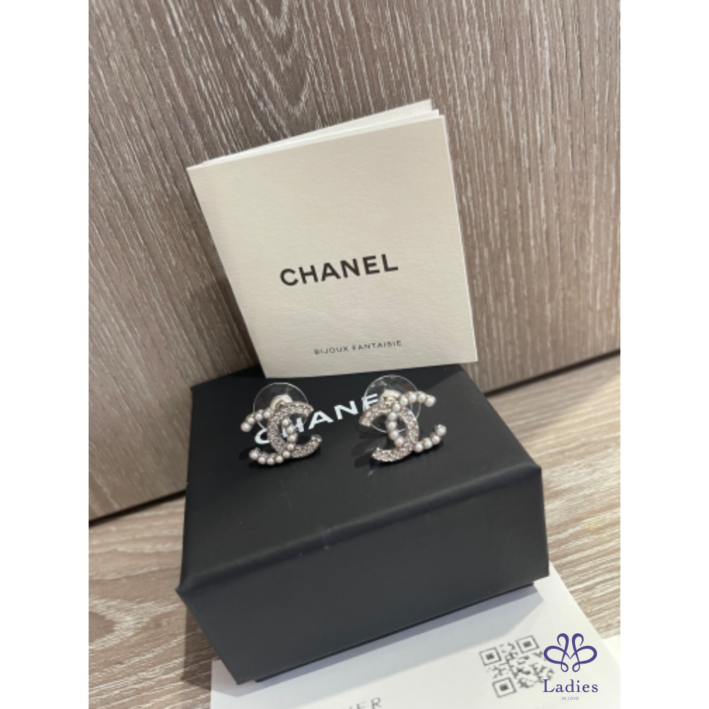 全新 CHANEL 24S 經典雙C 水鑽珍珠耳環