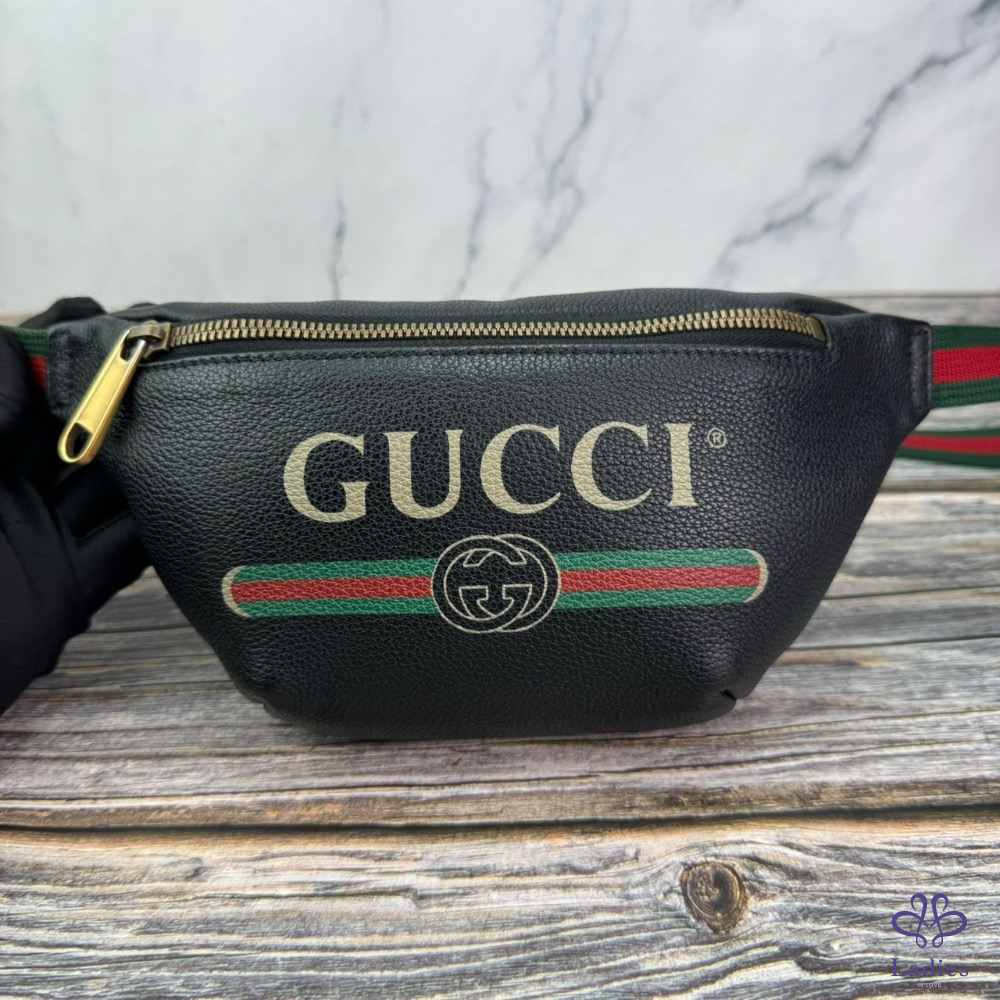 GUCCI 復古風格圖案 小牛皮 #胸口包 / #腰包(小款)