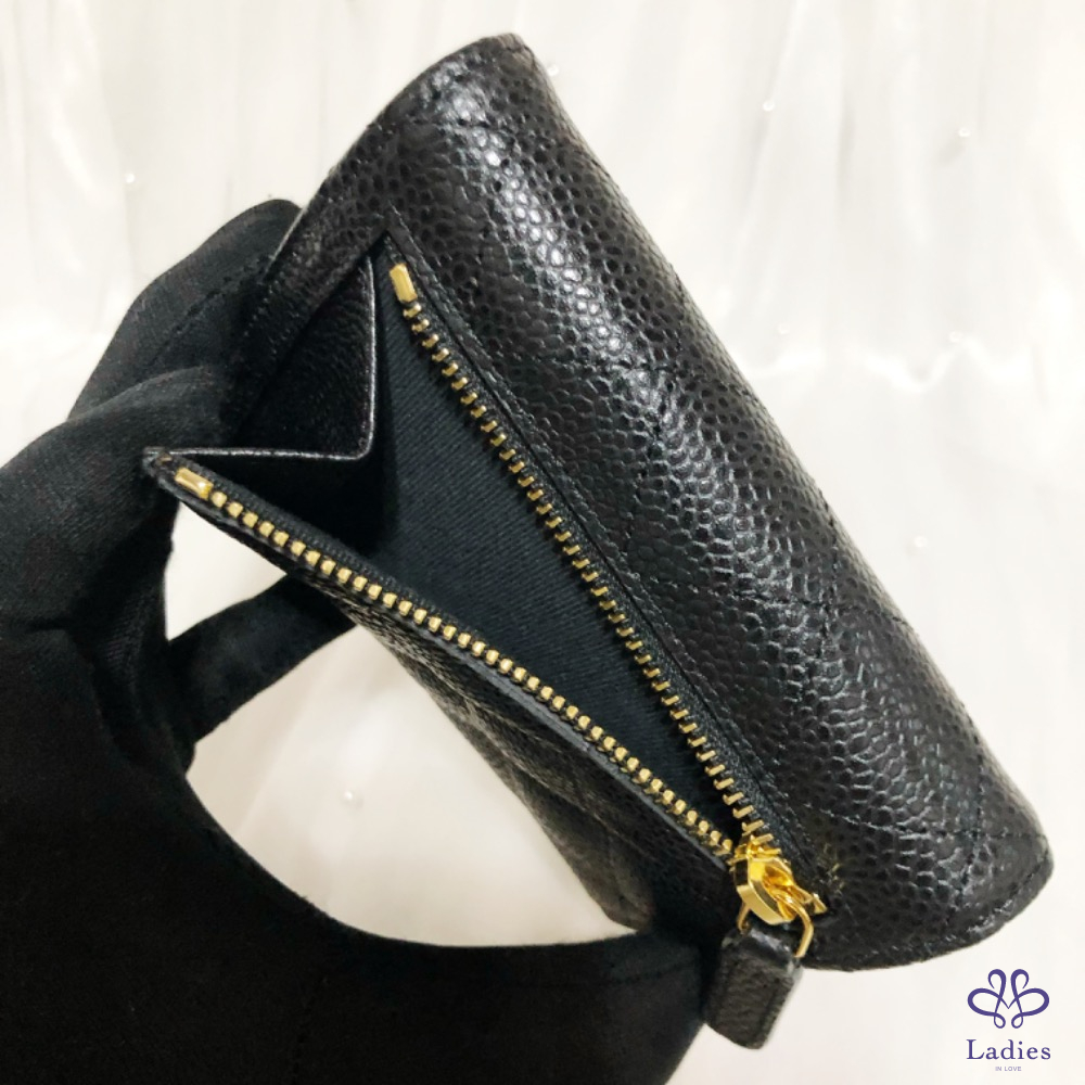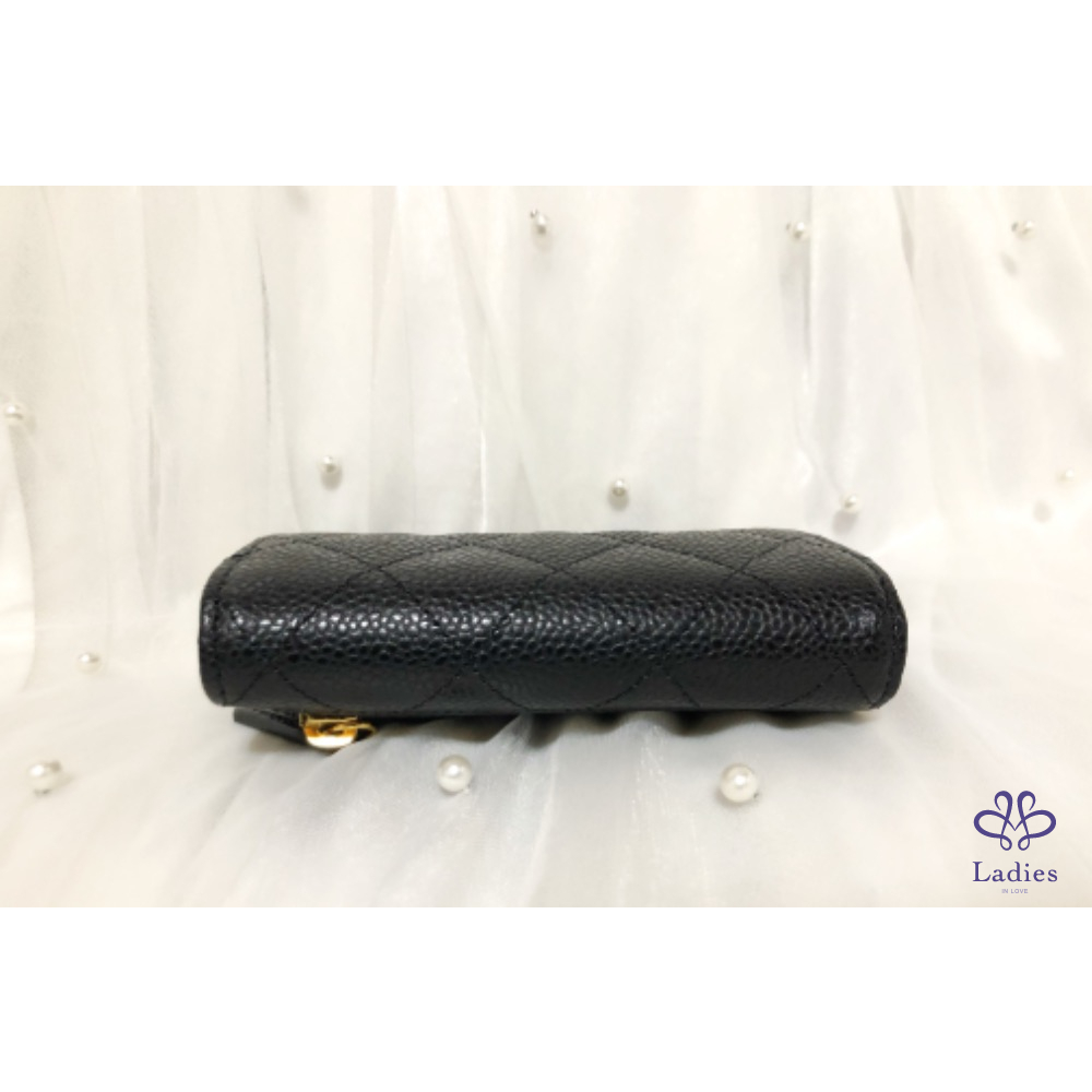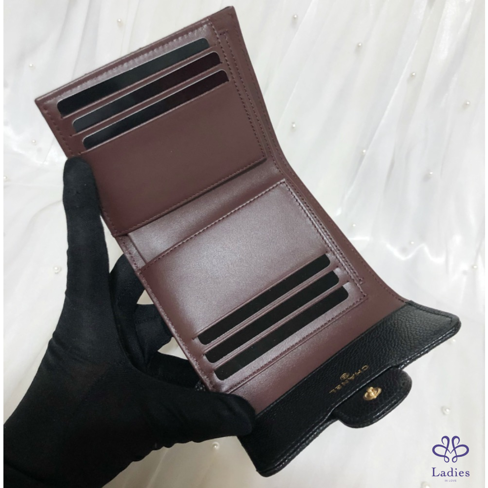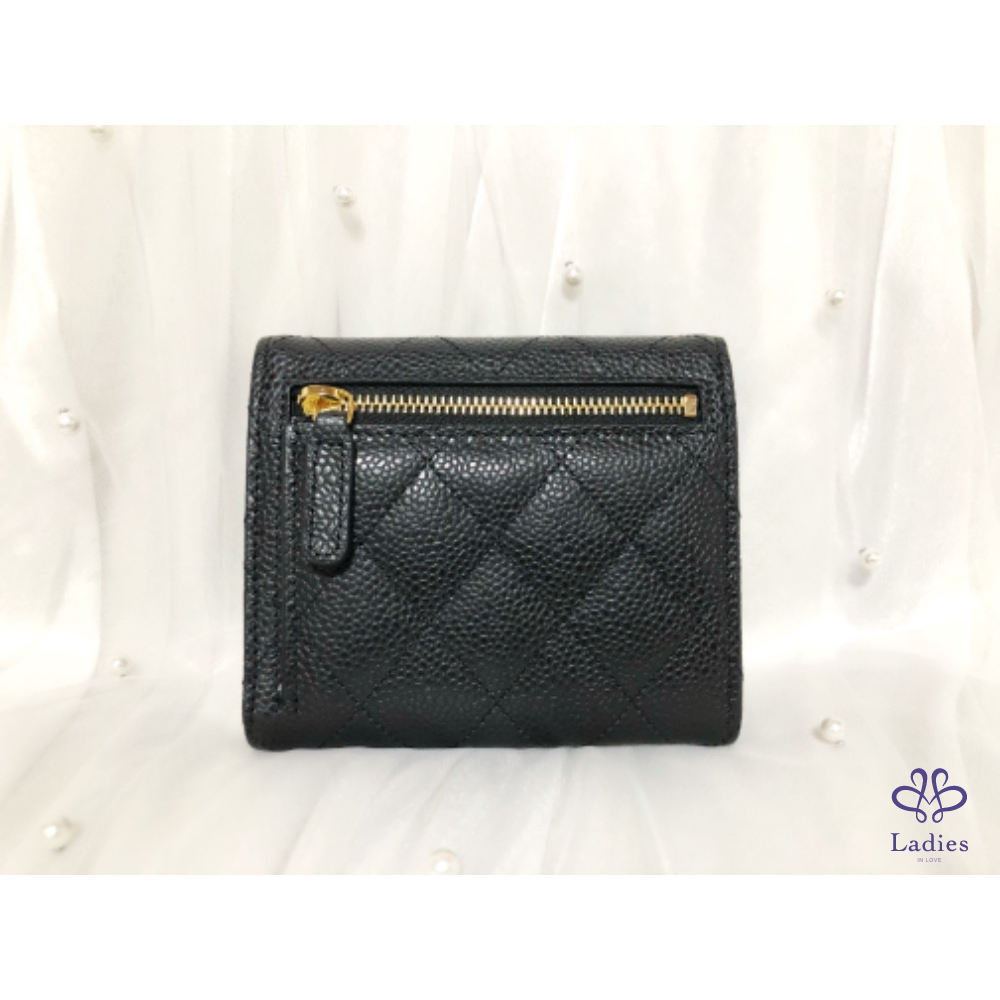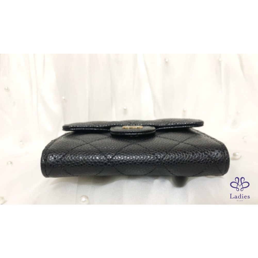 CHANEL 香奈兒 小香 缺貨 經典菱格紋 黑色金扣 荔枝牛皮 短夾 全新✨