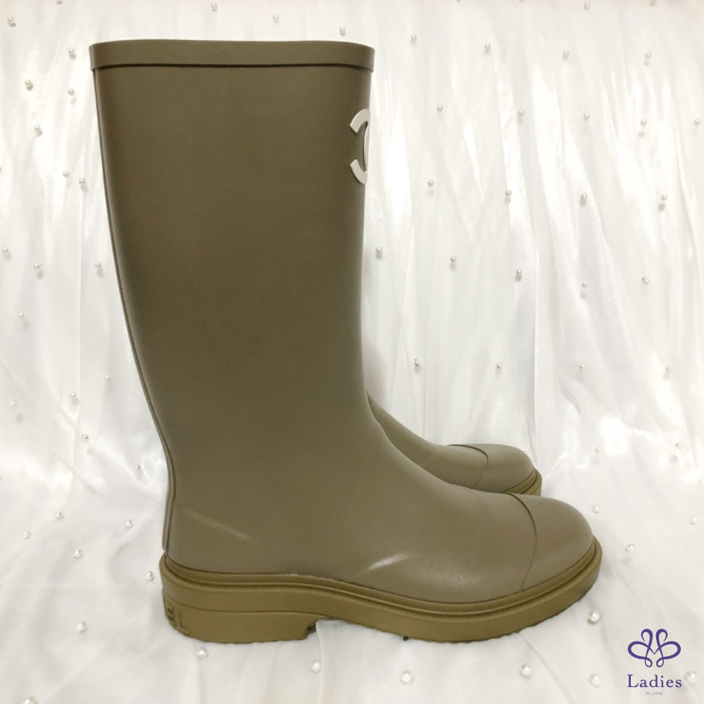 CHANEL 香奈兒 小香 爆款 橄欖綠 長筒 靴子 雨鞋 38號 全新✨