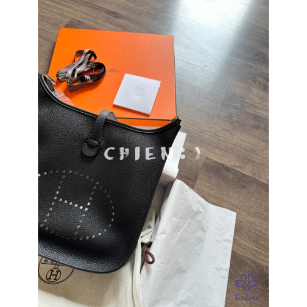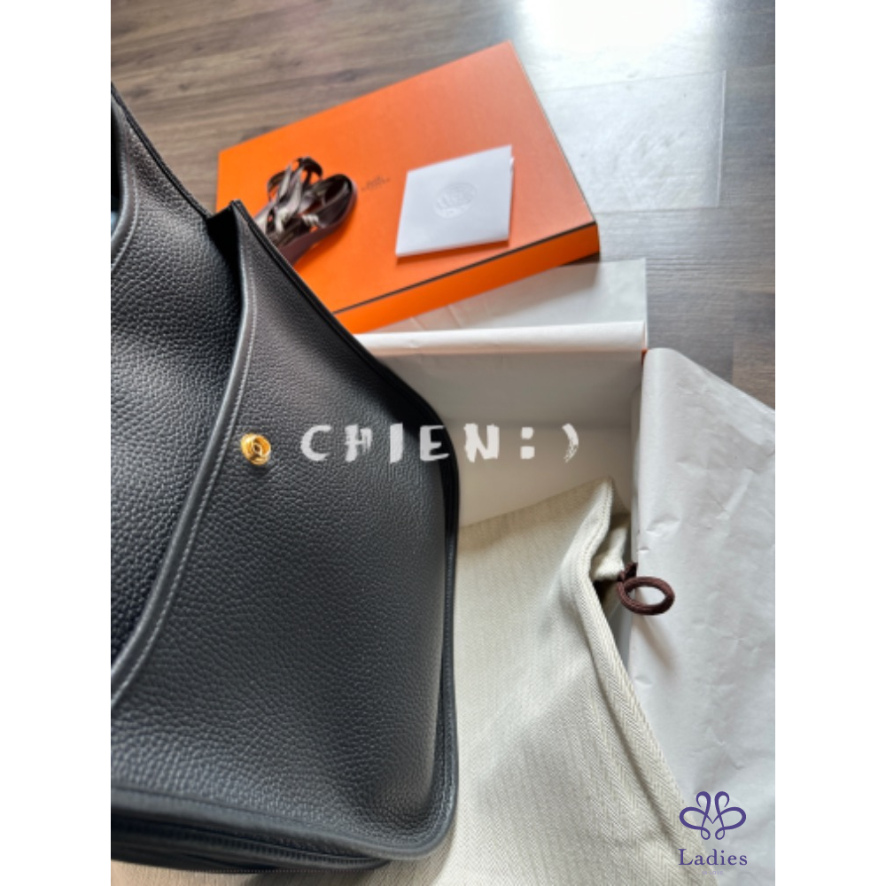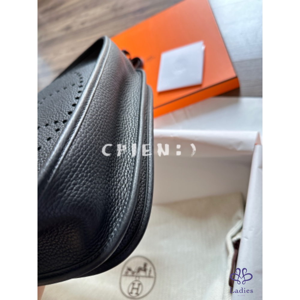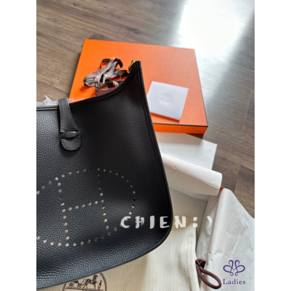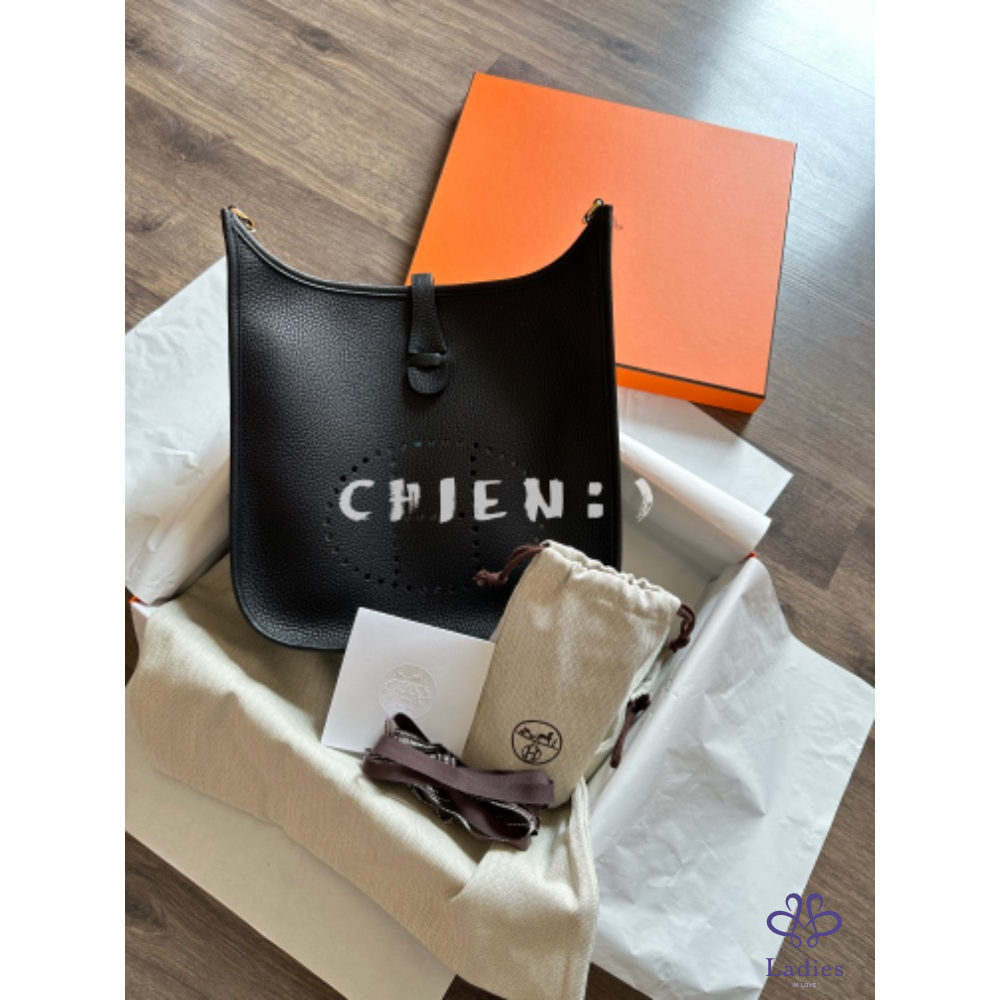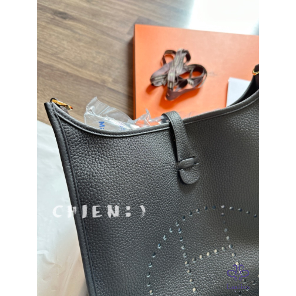 產品信息 A001664 全新HERMÈS Évelyne III 29 黑。金 全新 2024。03歐洲官網購入 入門超推薦款 TC皮革 經典黑金 萬年不敗配色 保值首選 最新W刻印 可斜背、單肩 CP值高 尺寸29*30*9 附紙盒、緞帶、購證影本、電子購證檔案