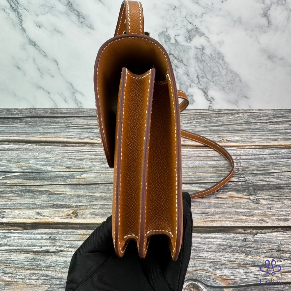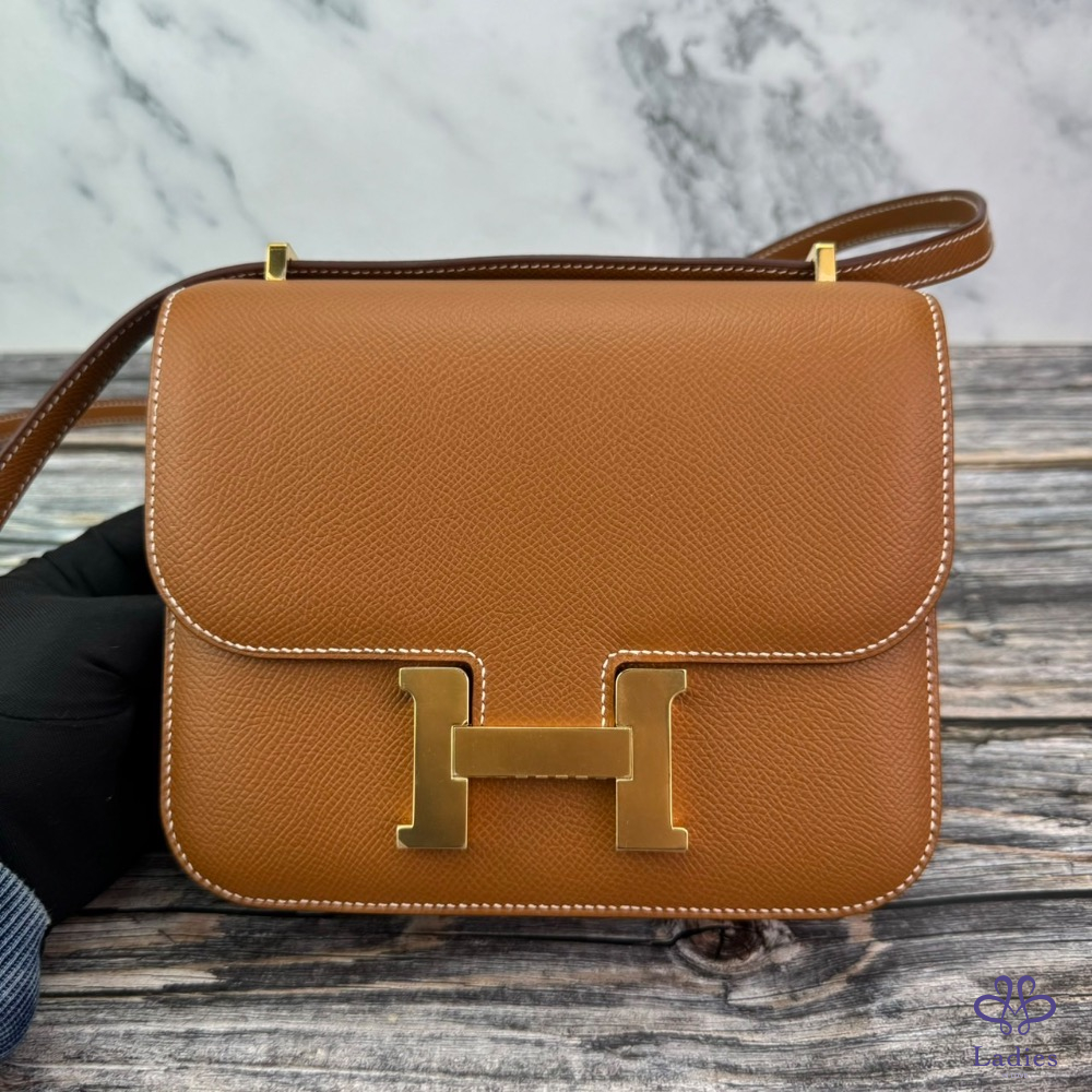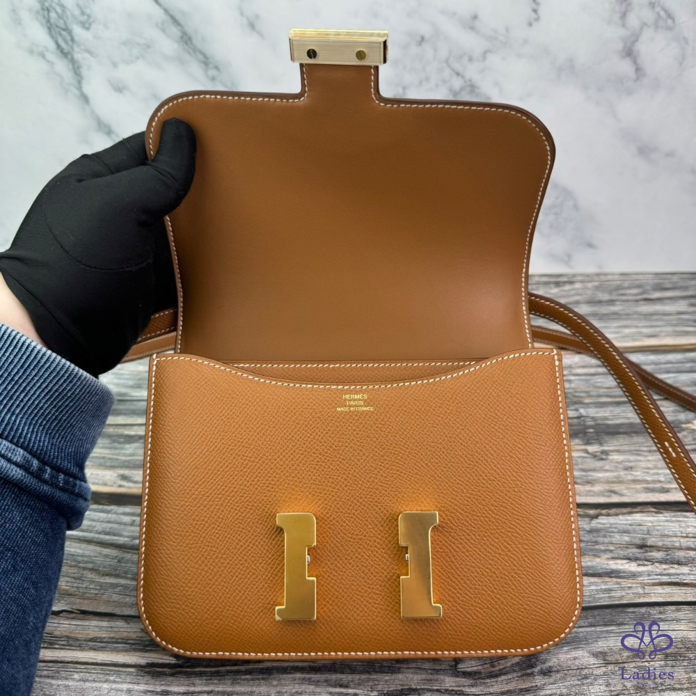 #HERMES 康康19 mini 金棕金扣 #鏡子款 B刻