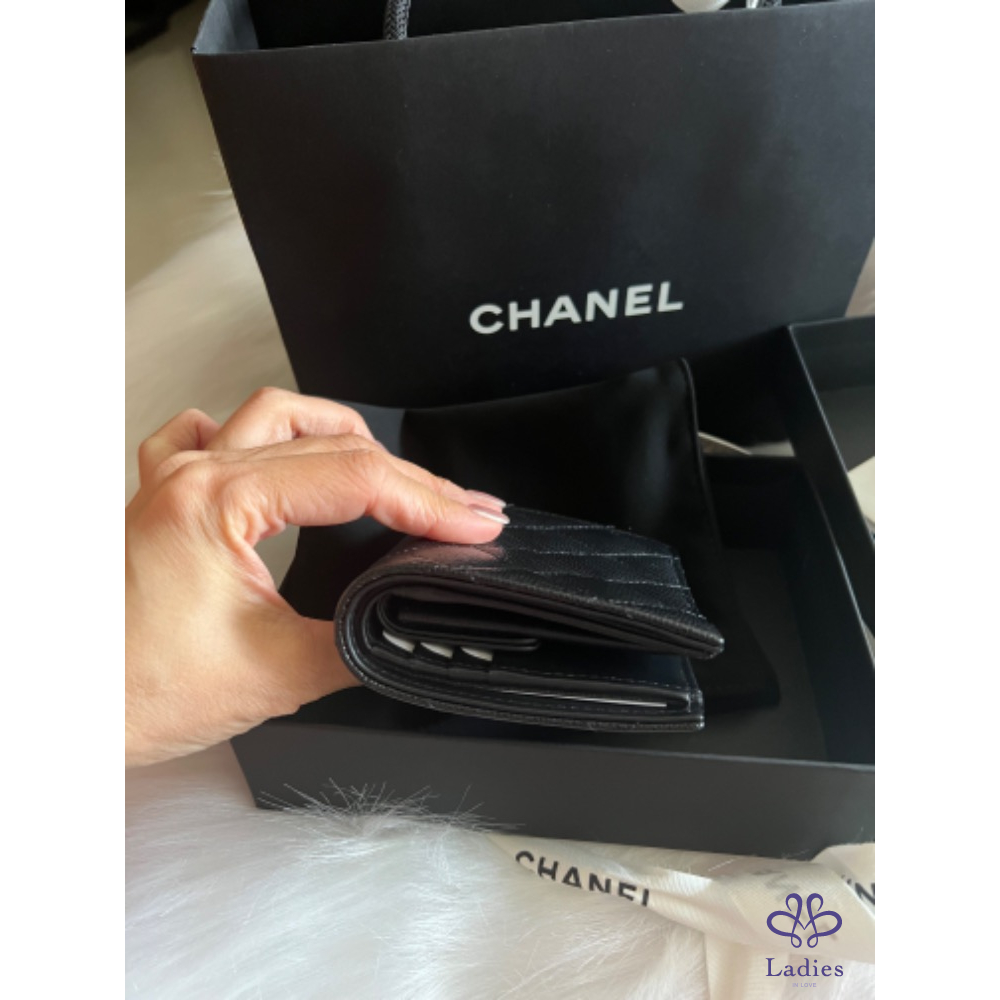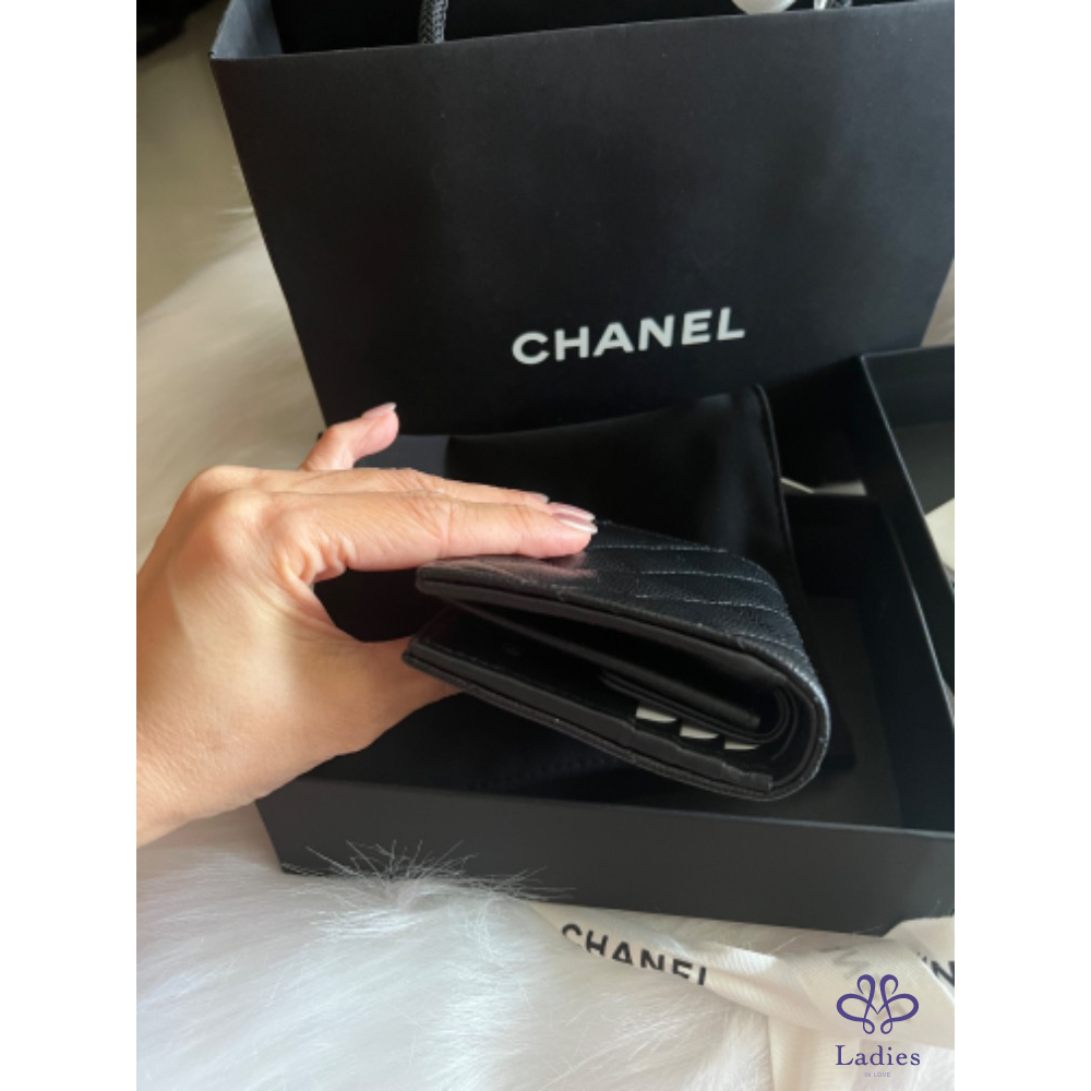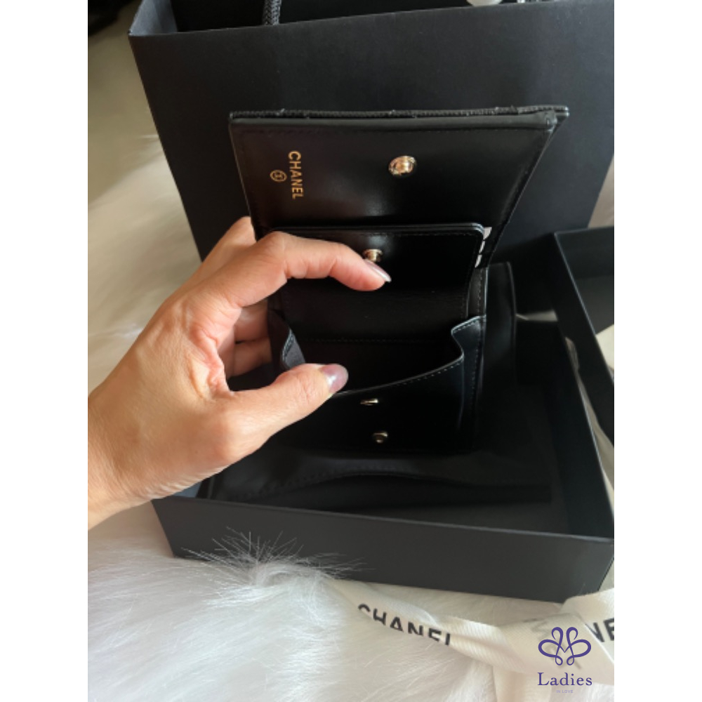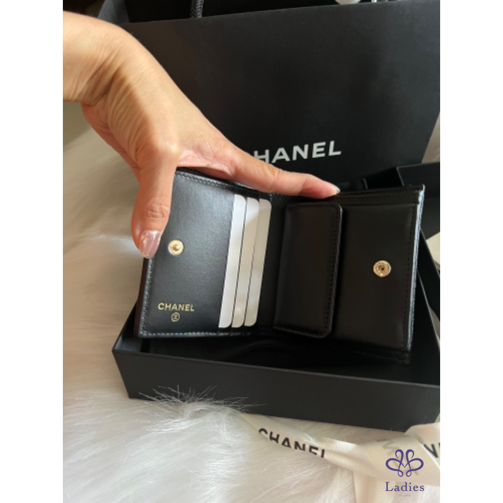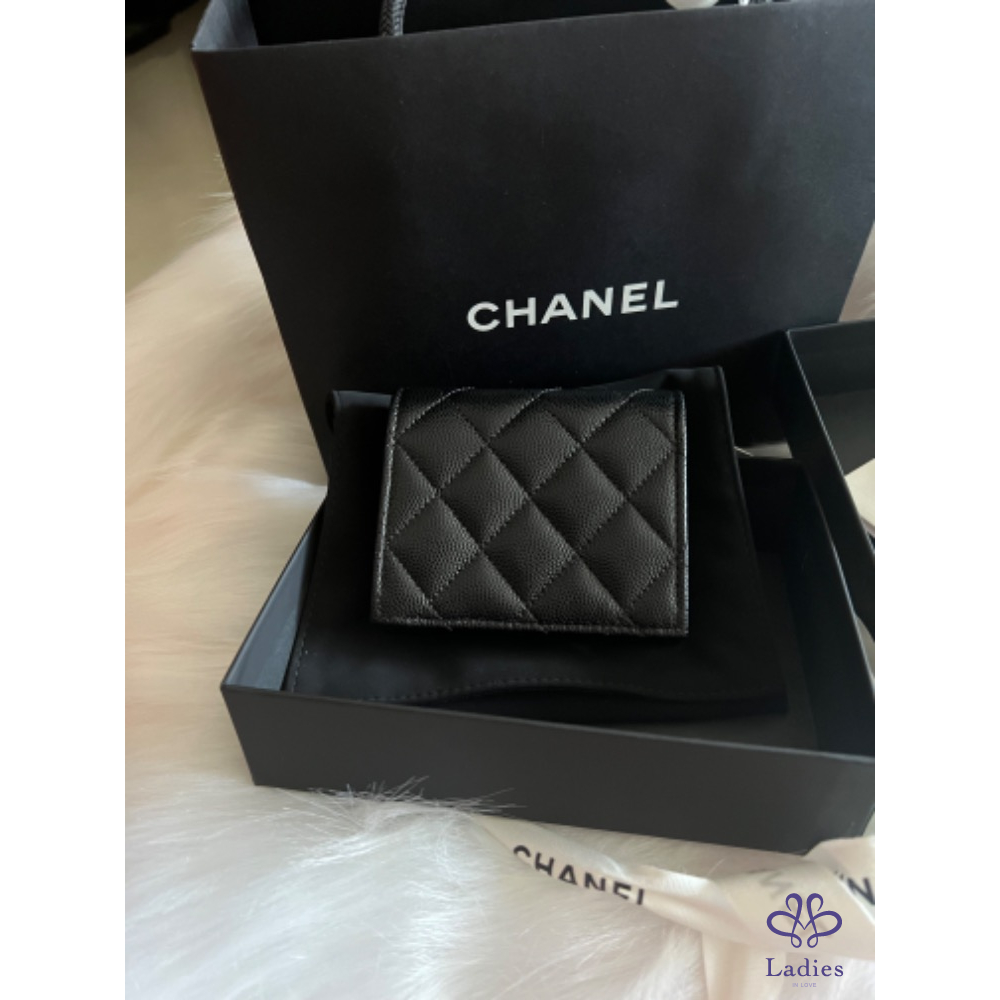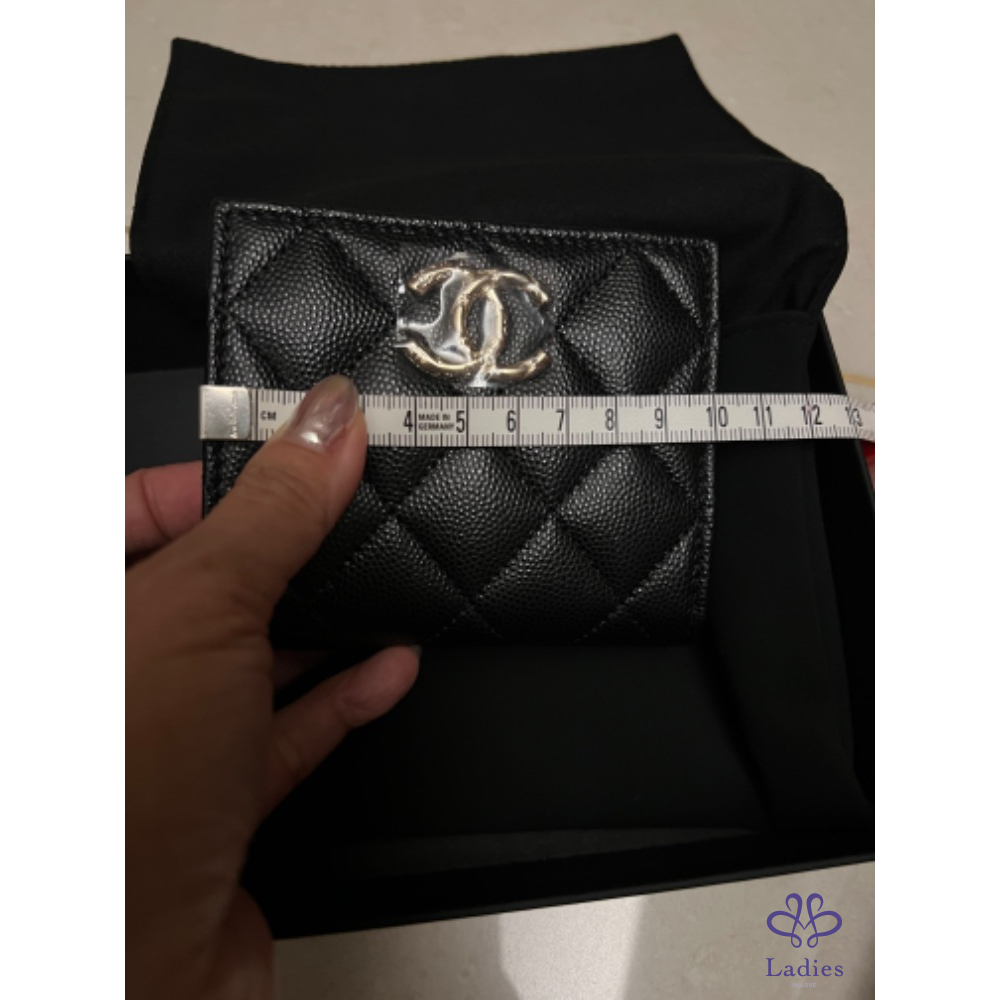 香奈兒24S季節款的大logo黑色荔枝短夾,這款的雙C裡多了狠多的細節,對開式的有個對釦