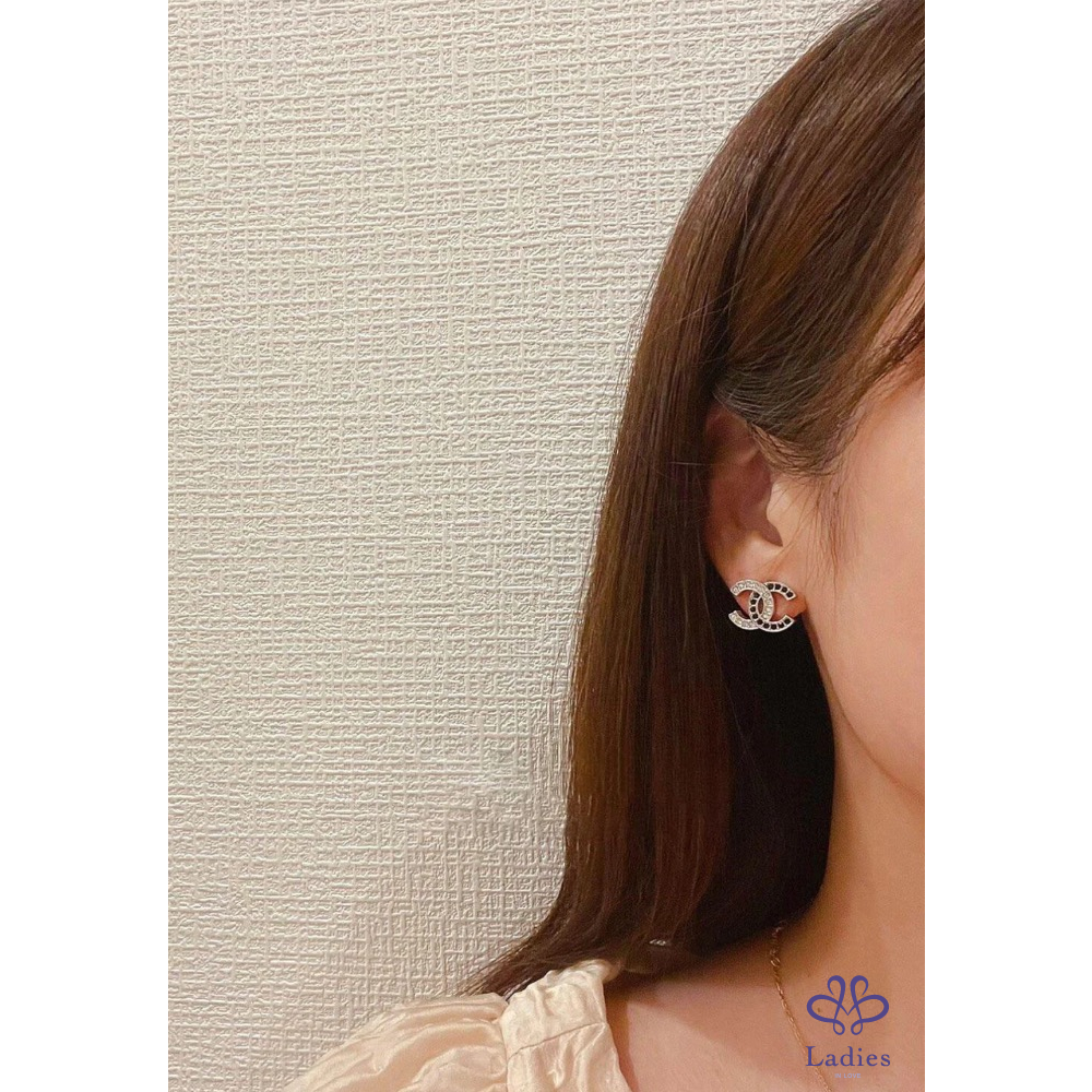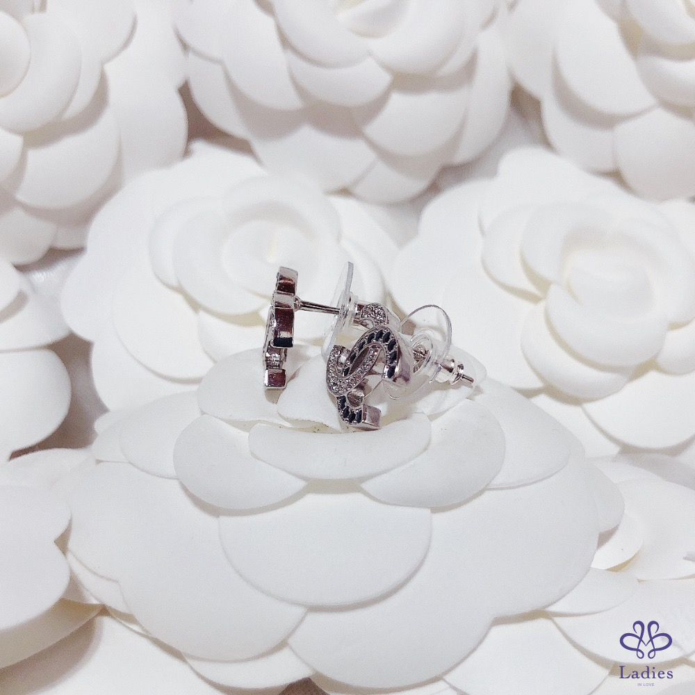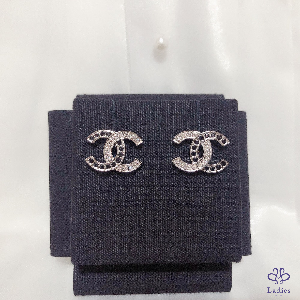 首頁 精品手錶 CHANEL 香奈兒 小香 銀色 黑色水鑽 貼耳雙C logo 針式 耳環 全新✨