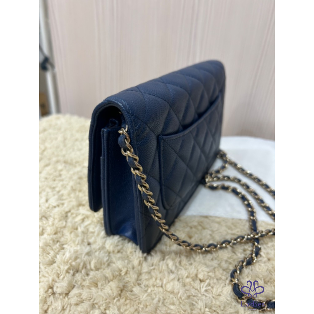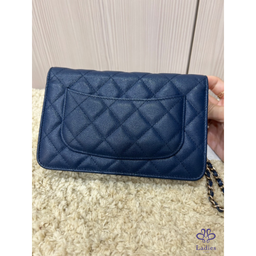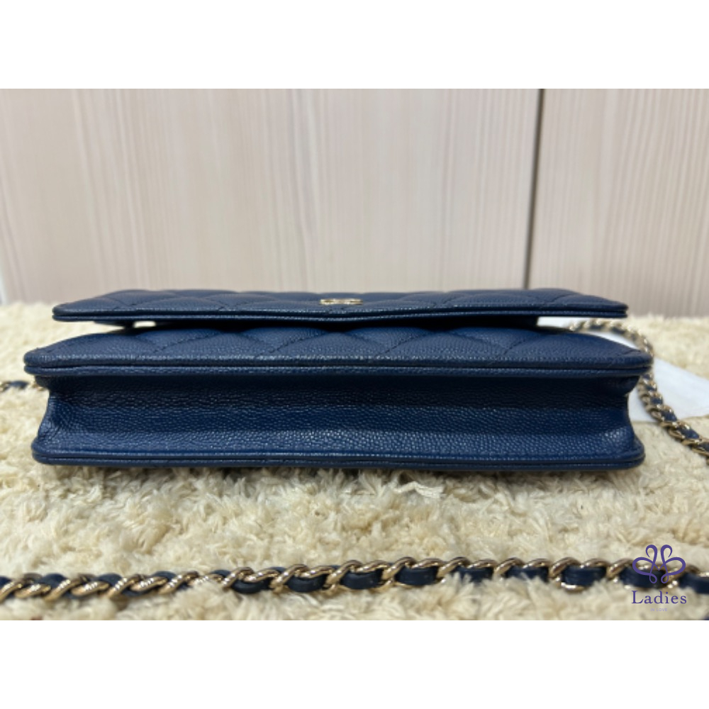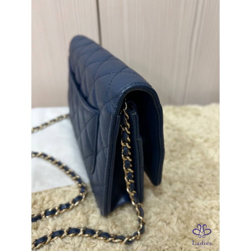 Chanel woc 經典海軍深藍色淡金釦woc 荔枝牛皮