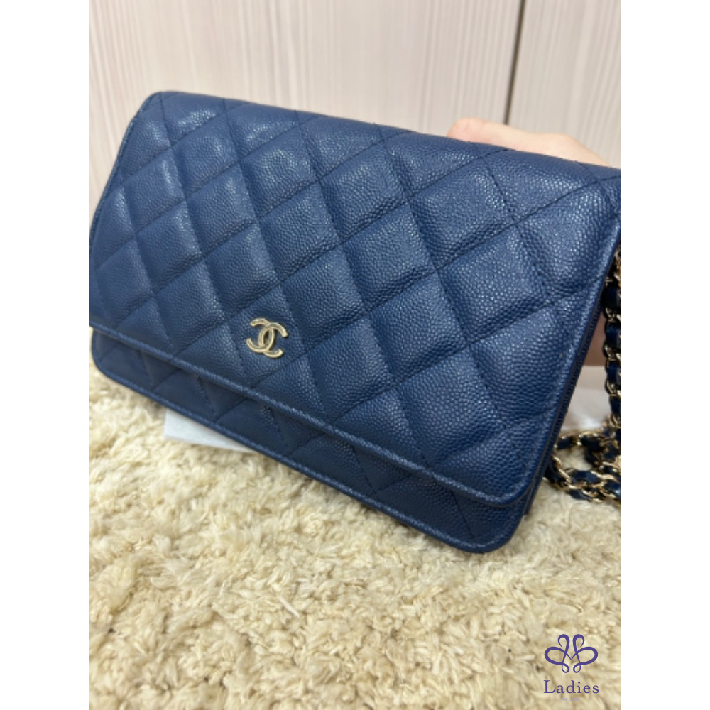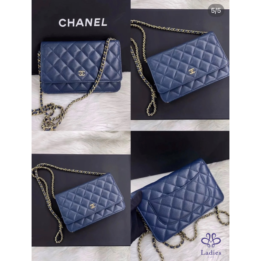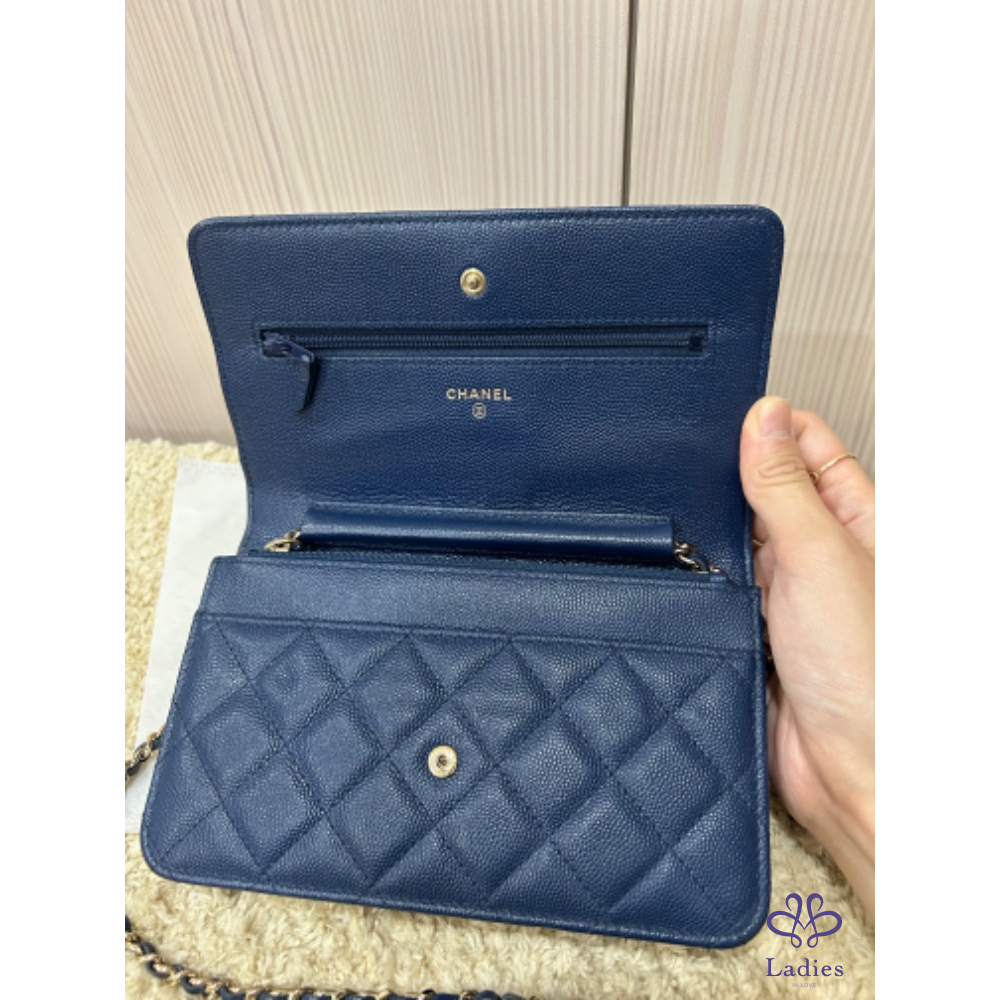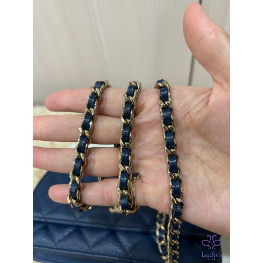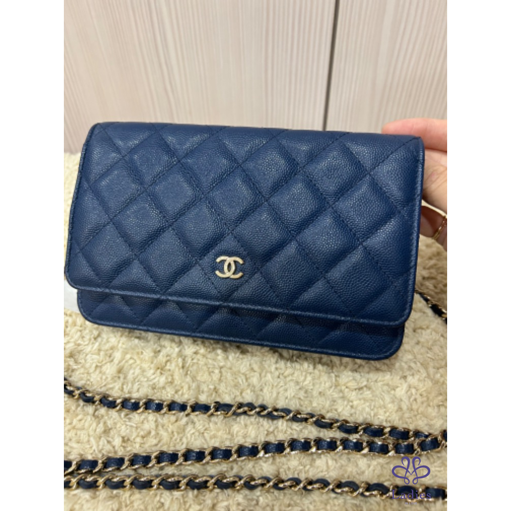 Chanel woc 經典海軍深藍色淡金釦woc 荔枝牛皮