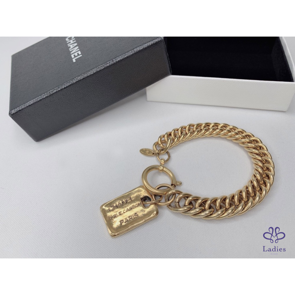 產品信息 【Chanel vintage Cambon軍牌手鍊】 ????vintage老香飾品 ????1971-1980年時期 ????️#典藏年份 ????喜愛老香物件的小香迷別錯過了 ????整體品項新舊如圖,二手商品均有正常使用/存放痕跡 ????尺寸:約23cm ????附件:原廠盒、原廠防塵袋 #B113031703