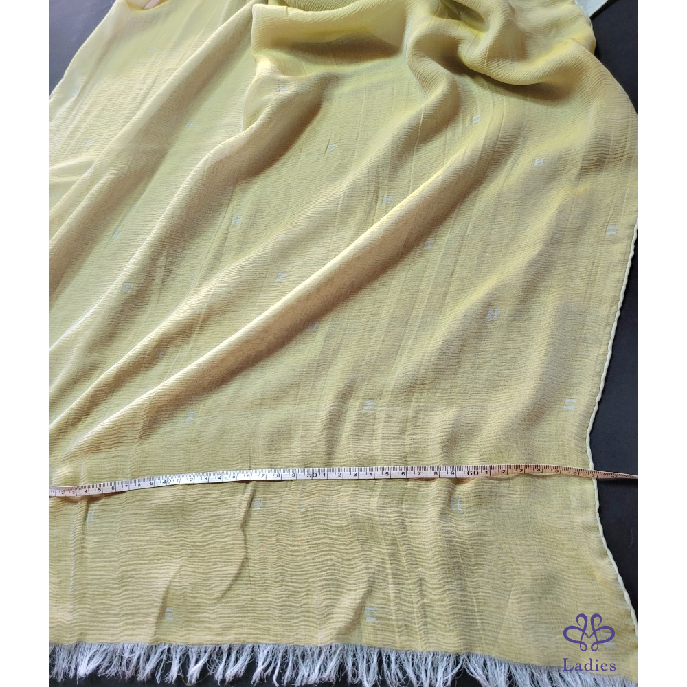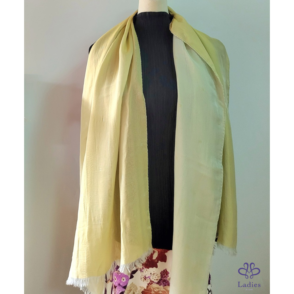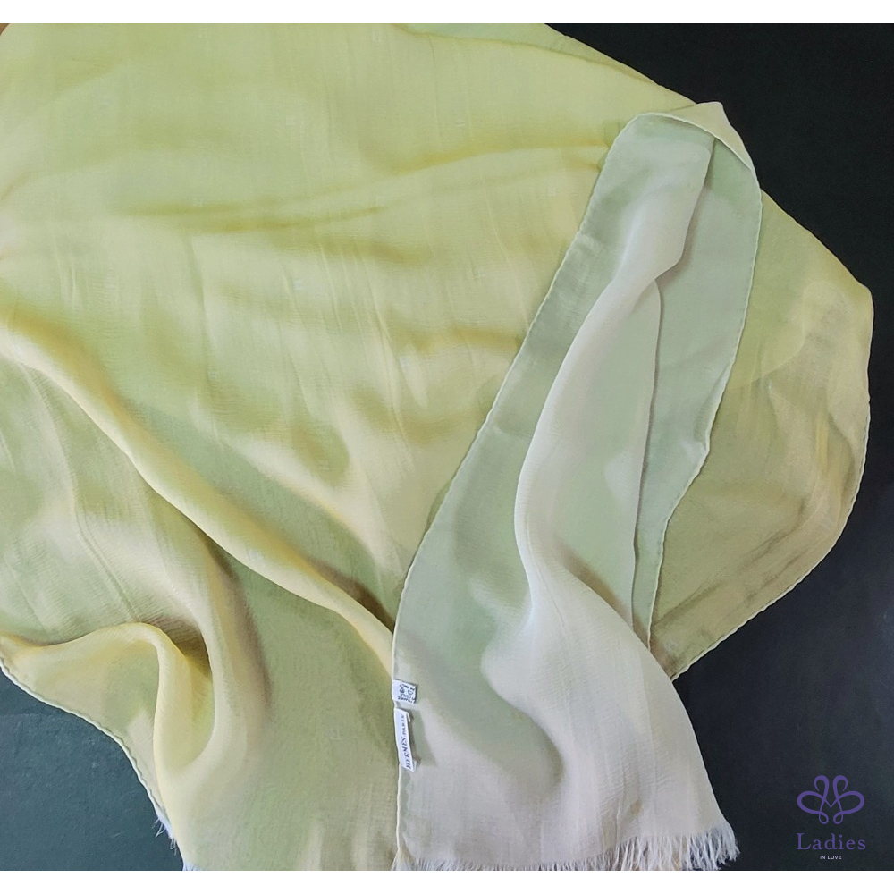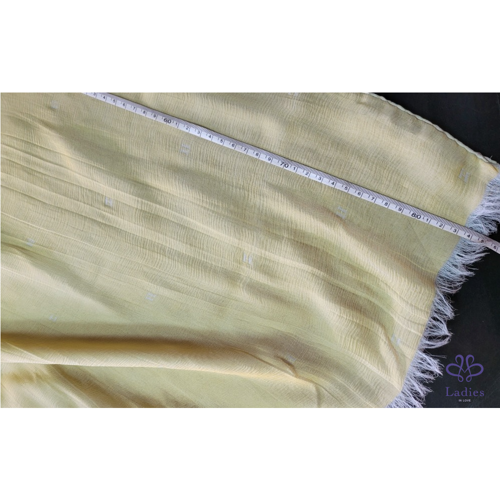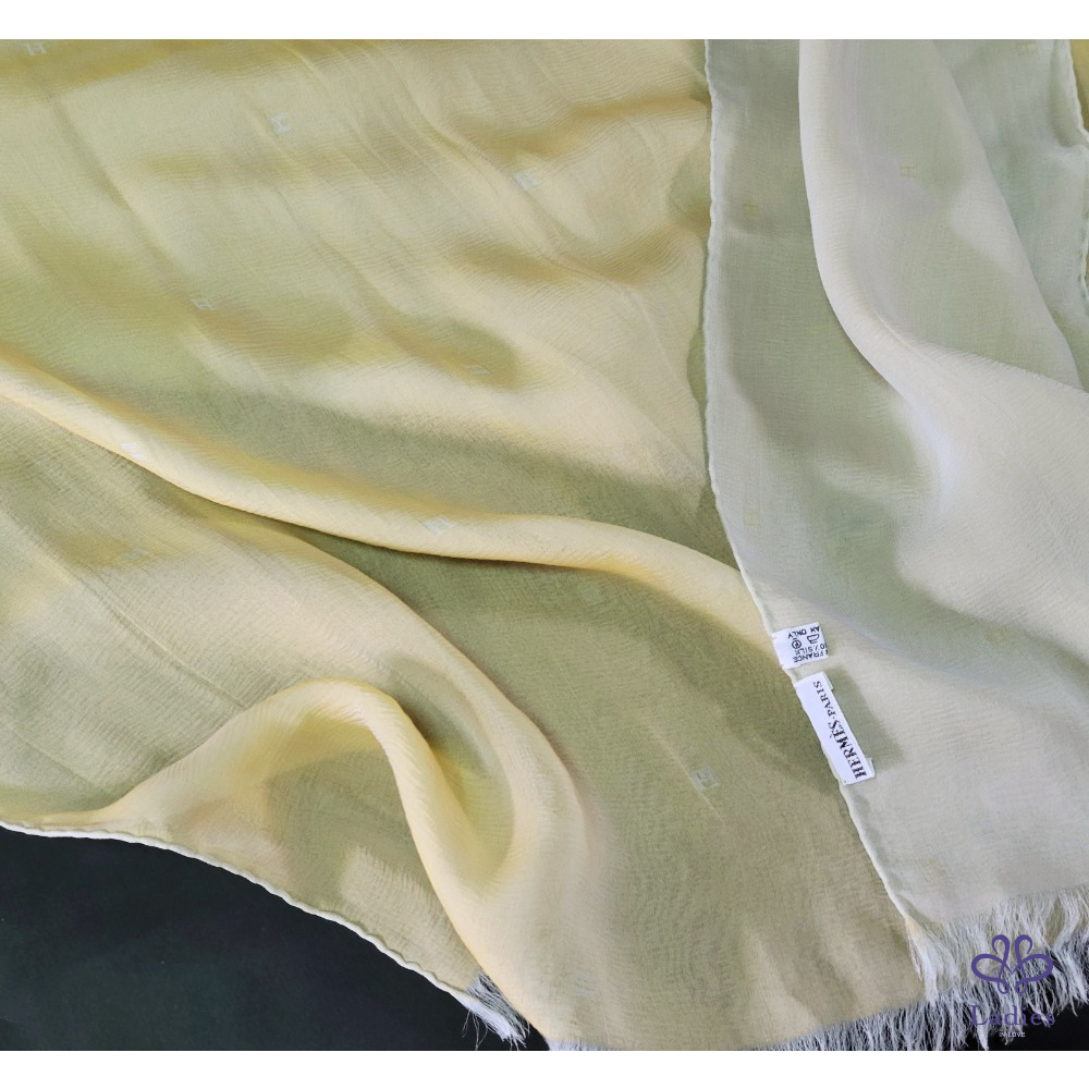 ~HERMES 原廠盒. 袋 嫩黃+珍珠白雙色刺繡H雙面長圍巾