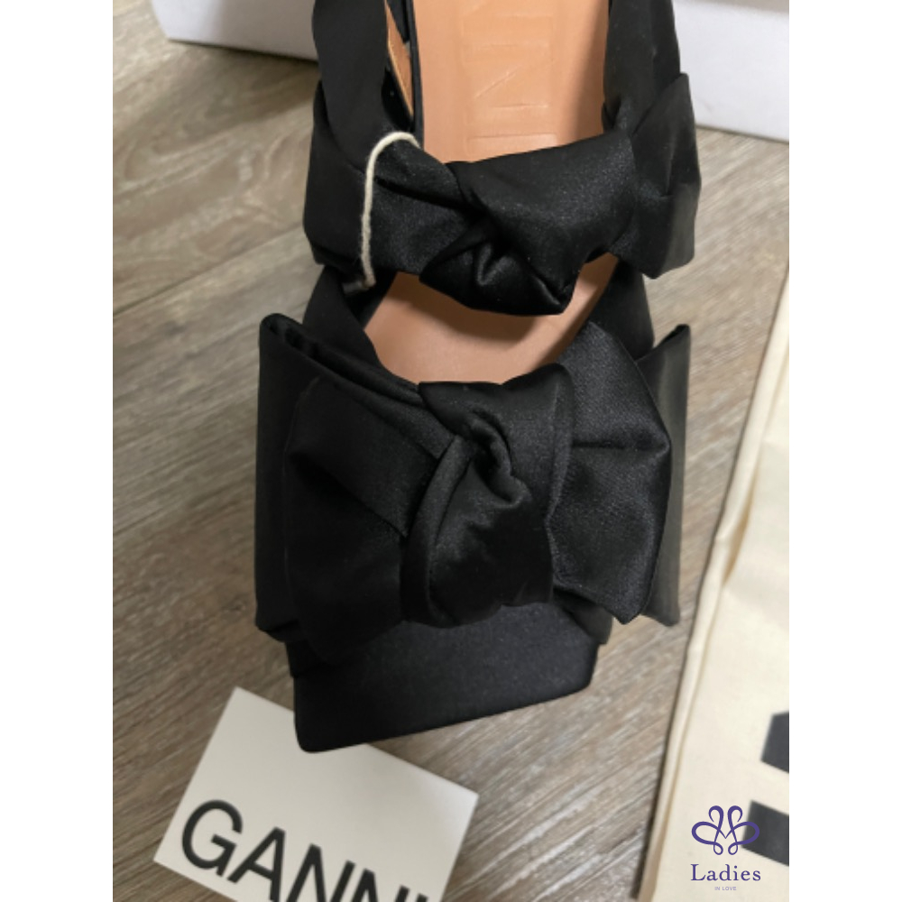 全新法國時尚GANNI 黑色立體蝴蝶結涼鞋