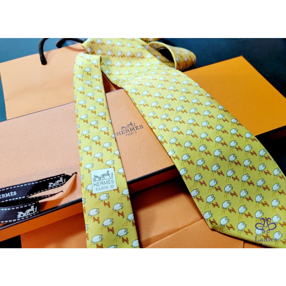 ~HERMES 全新 綿羊圖案領帶