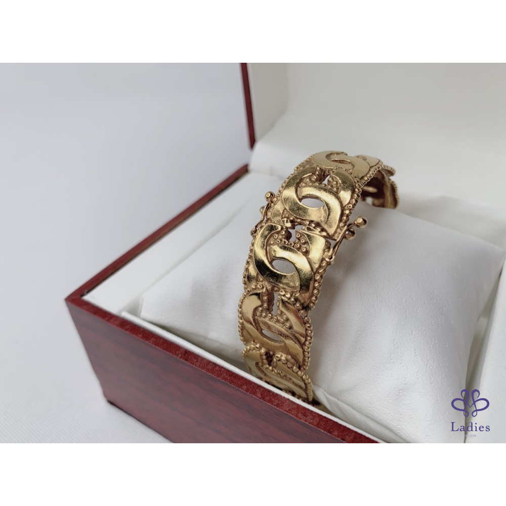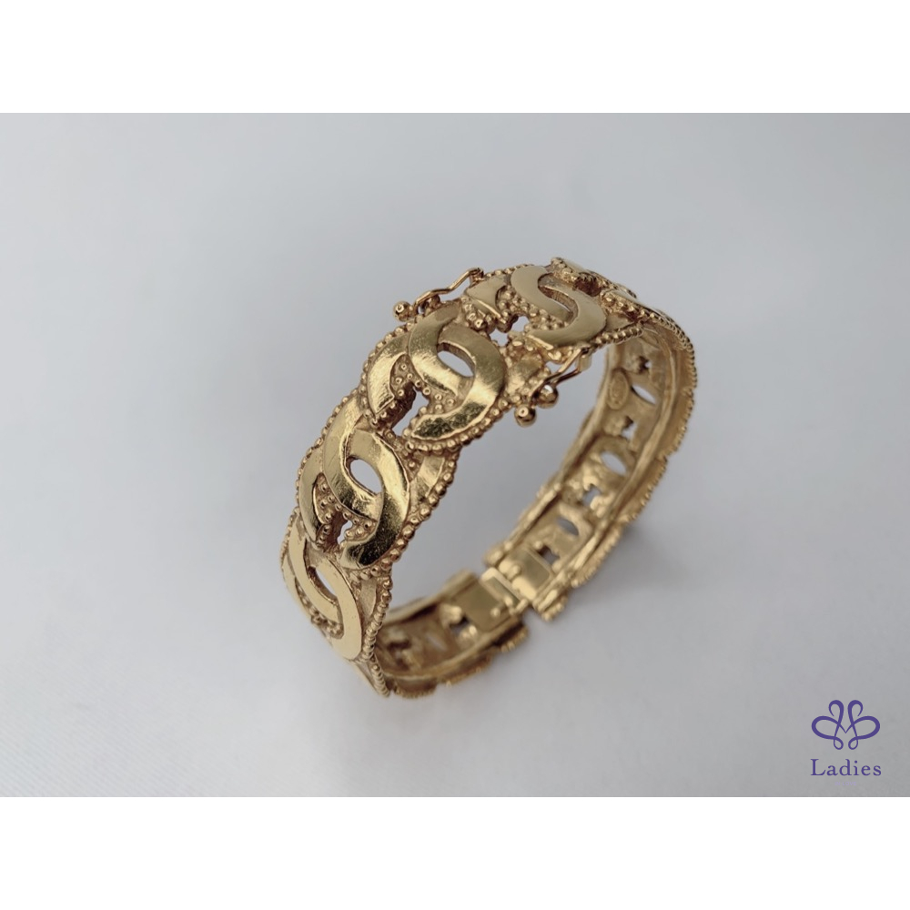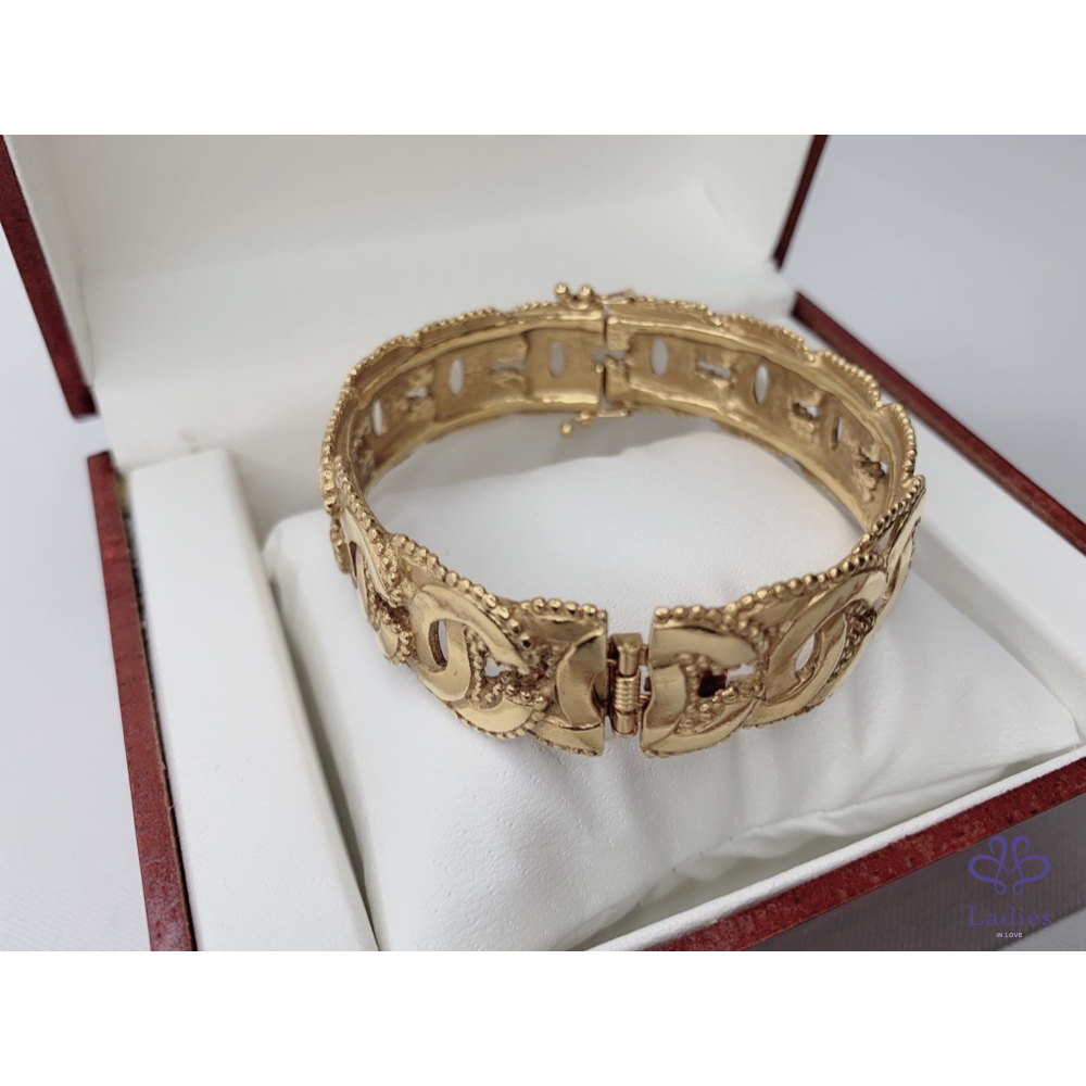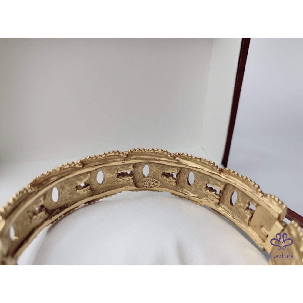 產品信息 【CHANEL 老香復古金96A手鐲】 ????#1996年時期 ????第一眼的懷舊心動款???? ????狀況保持非常良好,真的是賣一支少一支☝️ ????整體品項新舊如圖,二手商品均有正常使用/存放痕跡 ????尺寸:手圍19cm ????附件:一般盒子 #B113031704
