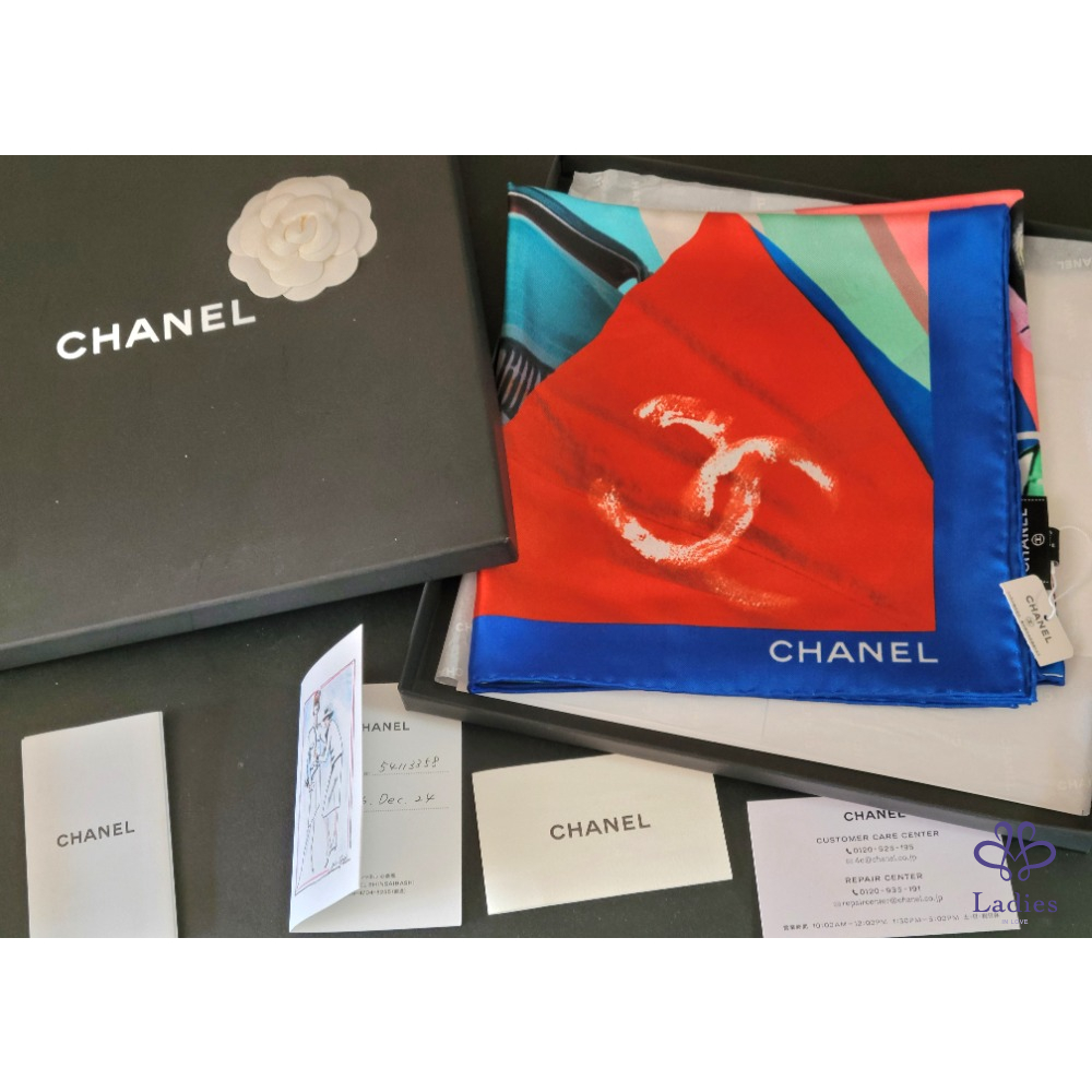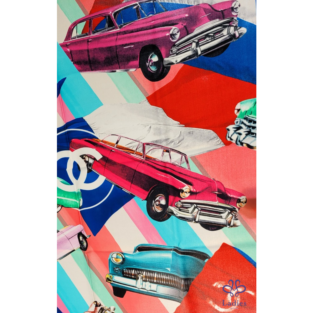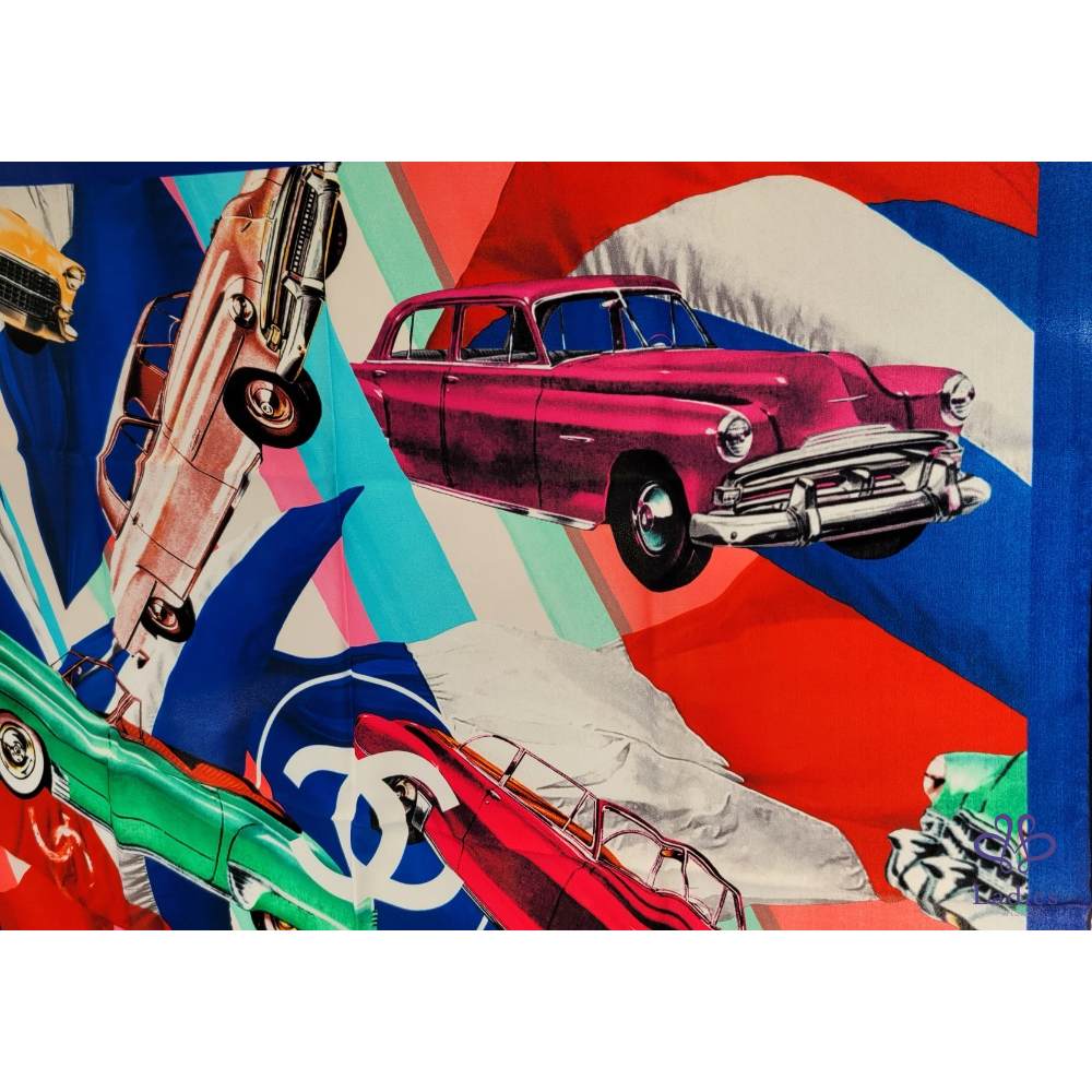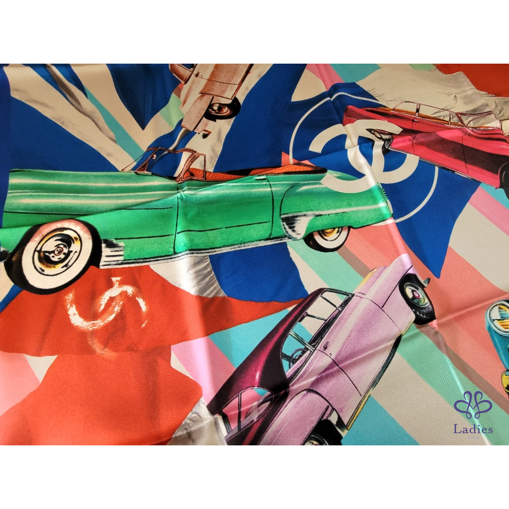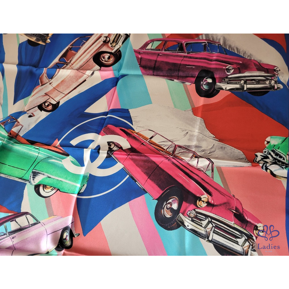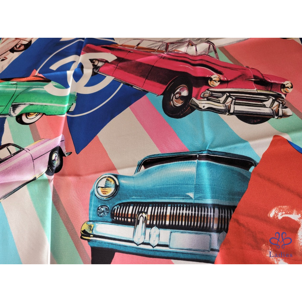 ~CHANEL 全新 雙C骨董車圖案絲巾