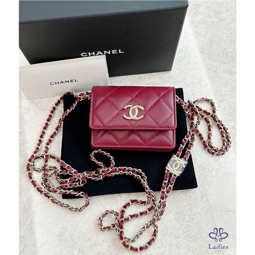 Chanel 迷你鏈條包 酒紅金鏈