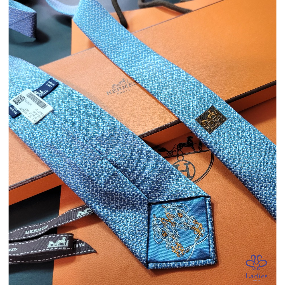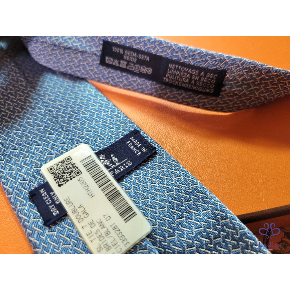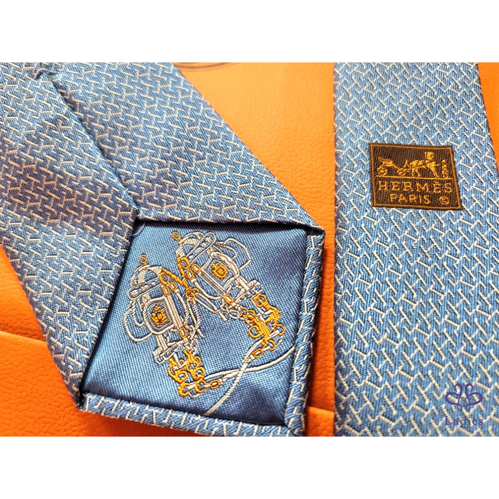 ~HERMES 全新 稀有款 莫蘭迪色H迷宮圖案領帶 裡面新娘馬鞍