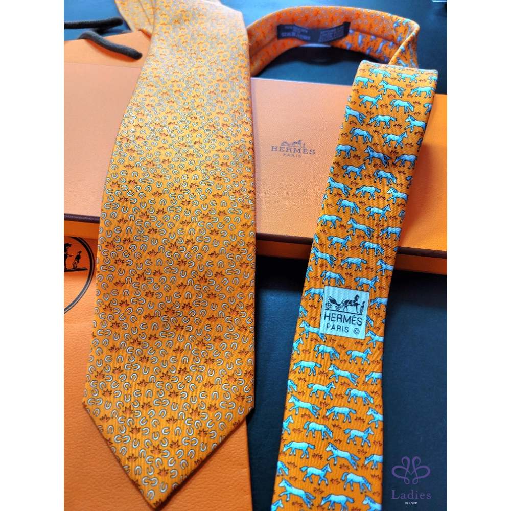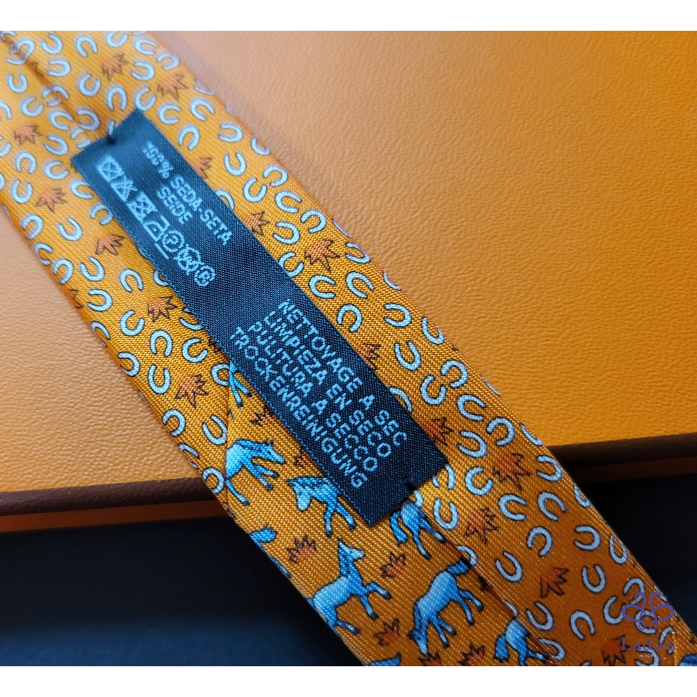 ~HERMES 全新 富貴平安特別設計圖案 馬+馬蹄圖案領帶