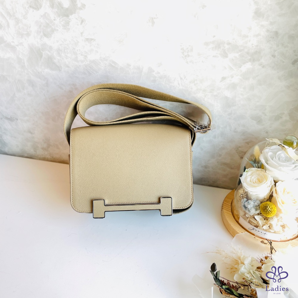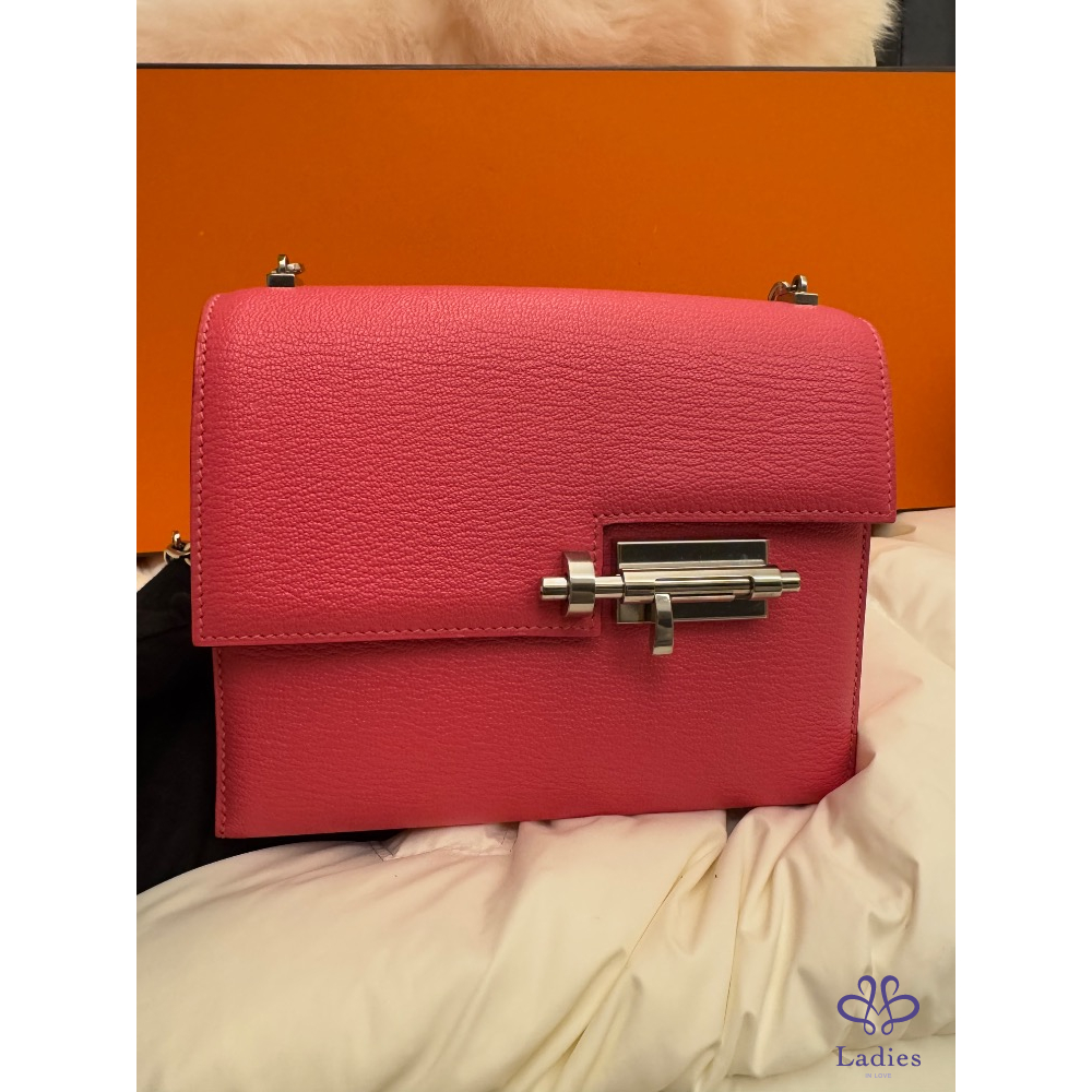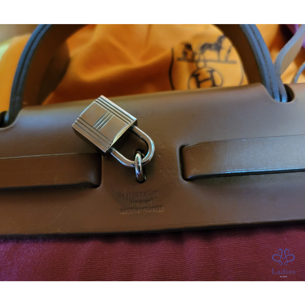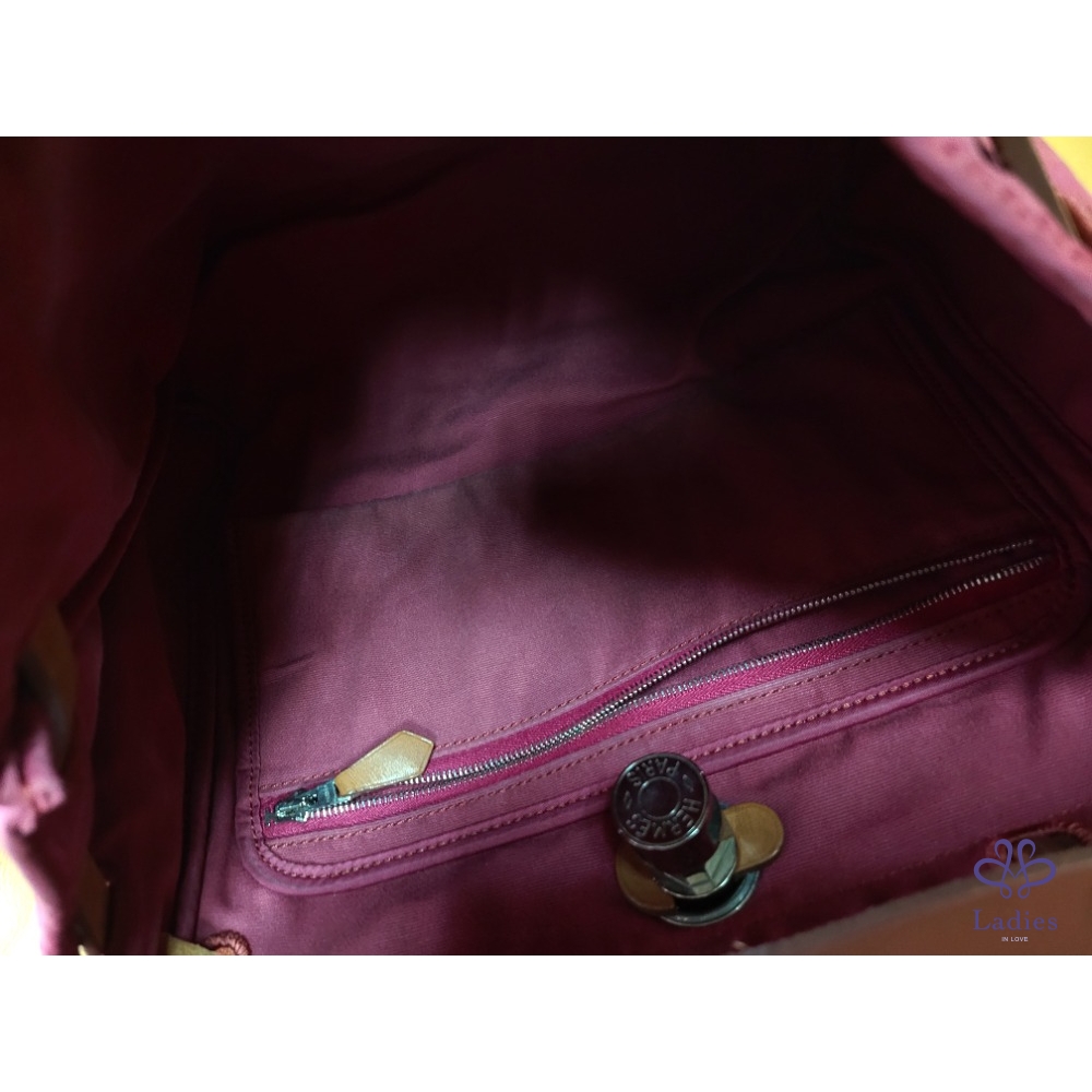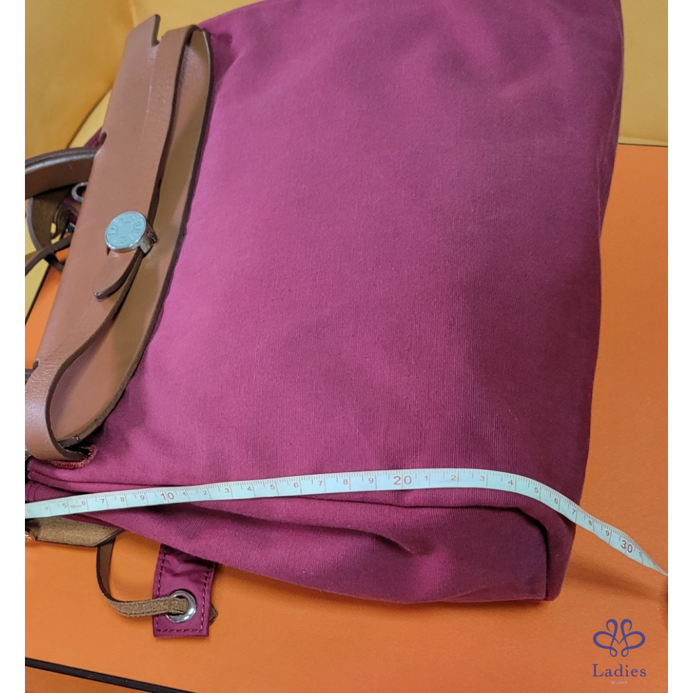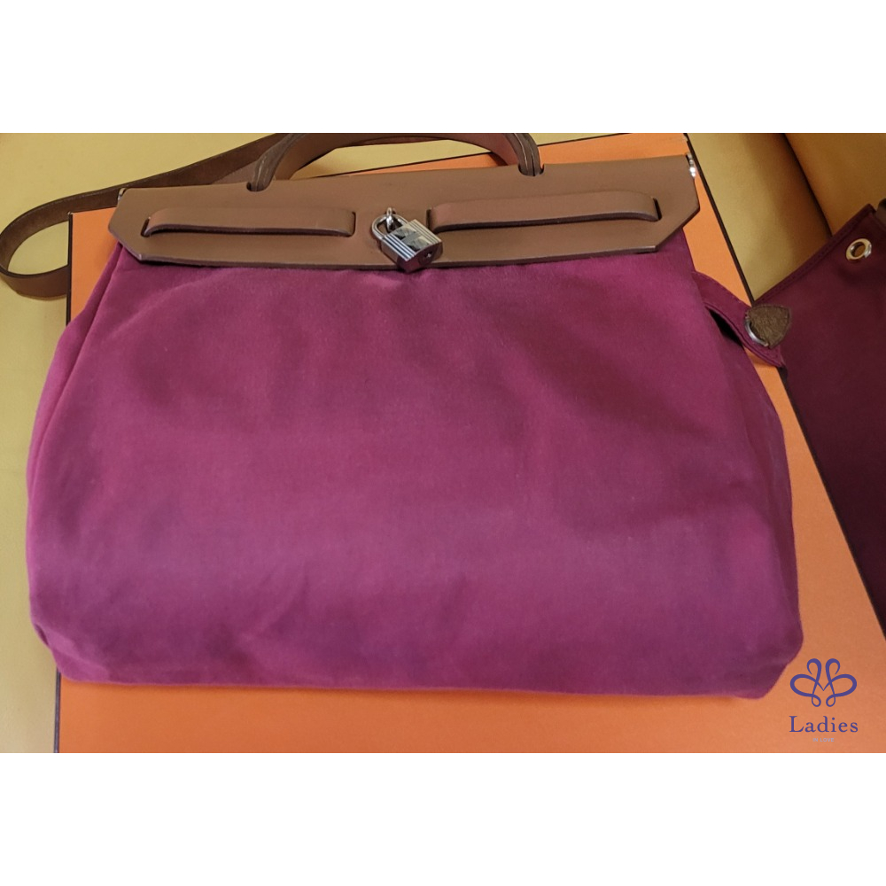 ~HERMES HERBAG 銀扣 駝革+桃紅包身+小長包 手提/肩背包(小號)