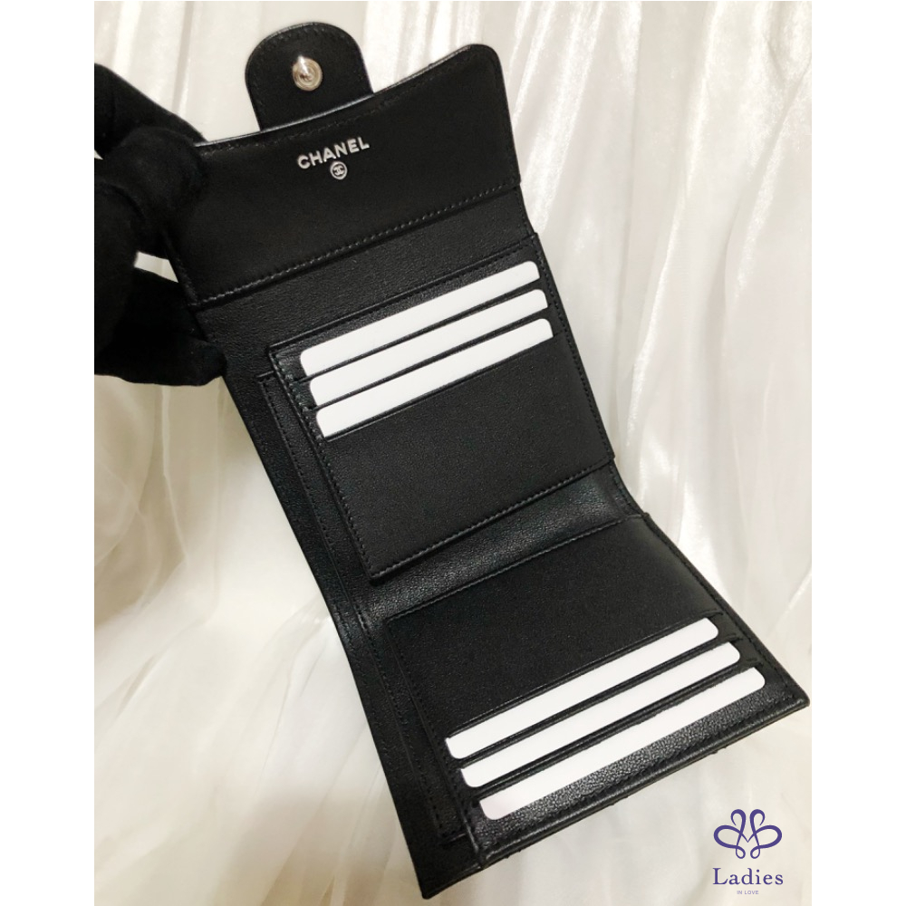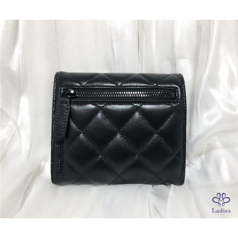 每年必漲的經典款短夾黑色黑扣羊皮有多難買多稀有因該不用我多敘述吧,這款短夾,內裏皮革是牛皮喔,跟以往全羊皮不一樣感覺更實用晶片雷標!全新膠膜都在!