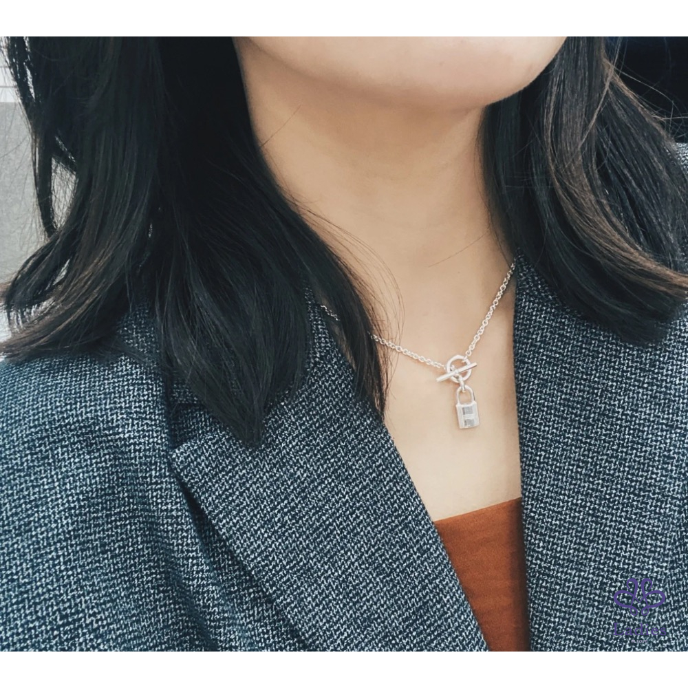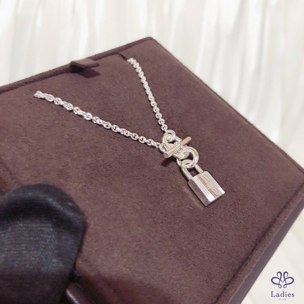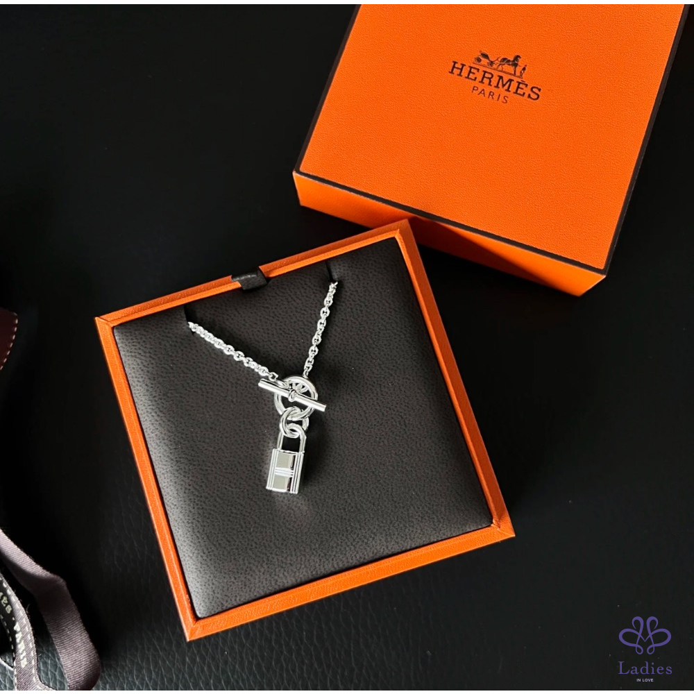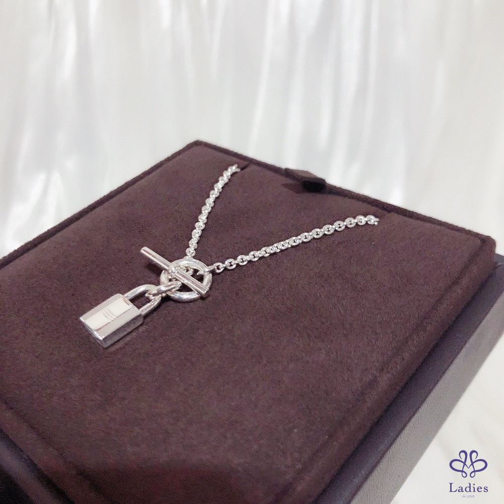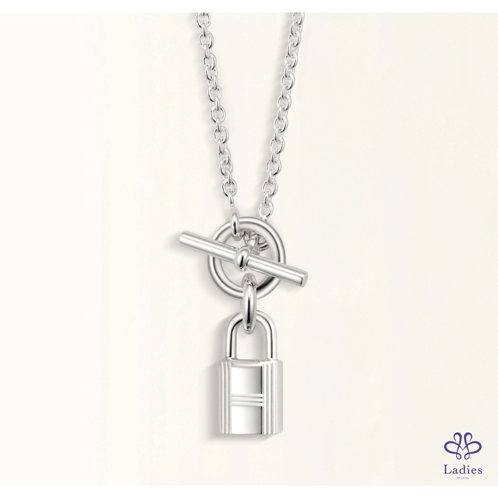 首頁 精品手錶 Hermes 愛馬仕 Kelly Cadenas pendant 925 純銀 鎖頭T扣 項鍊 全新✨
