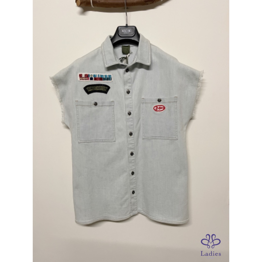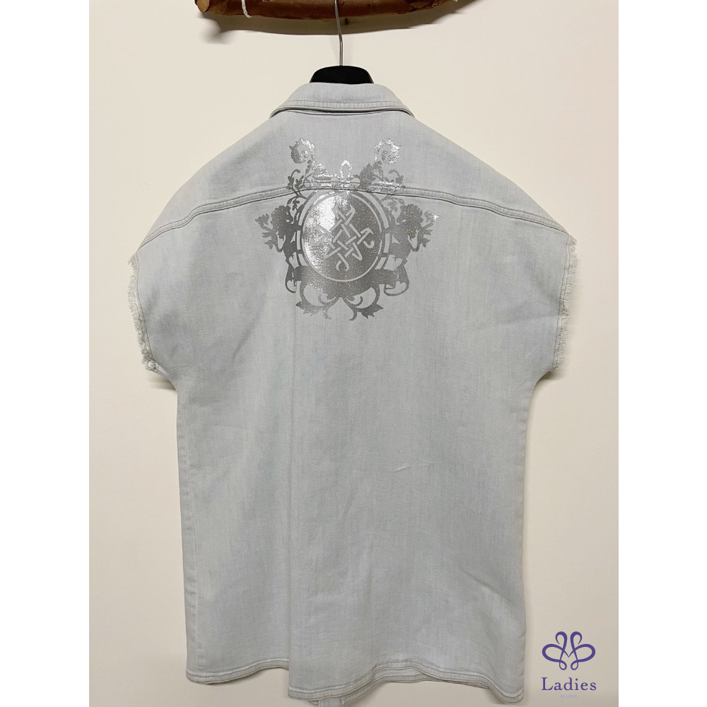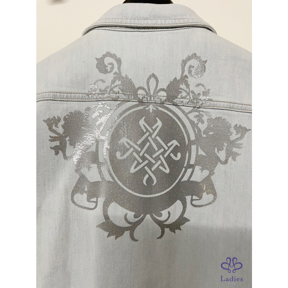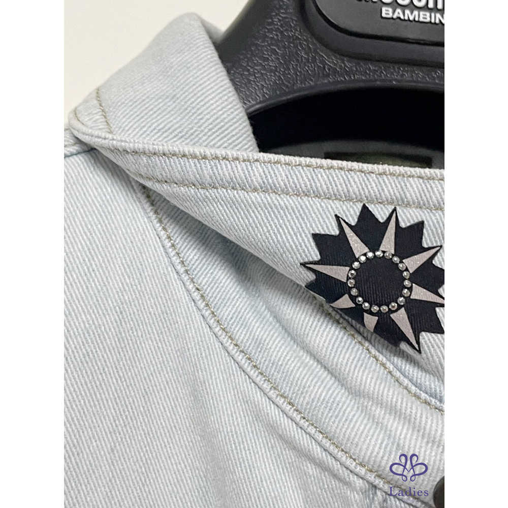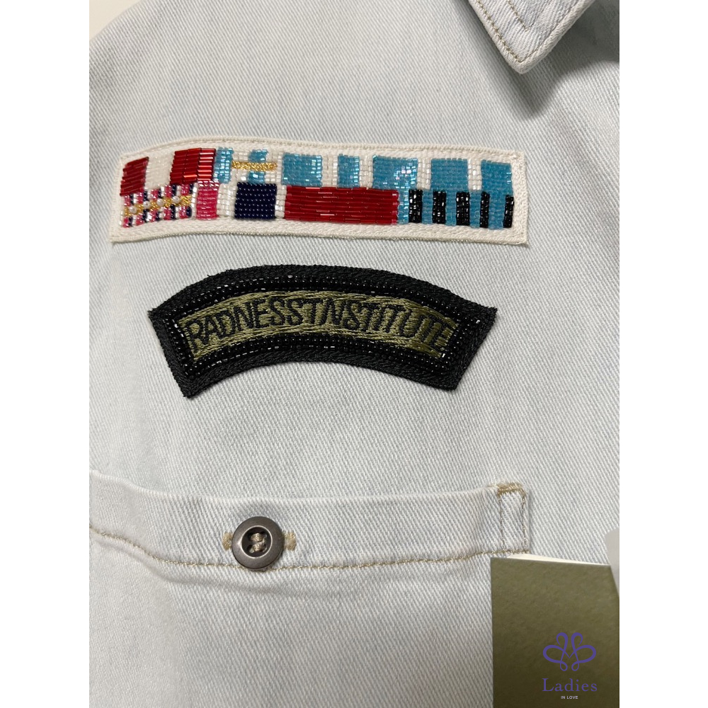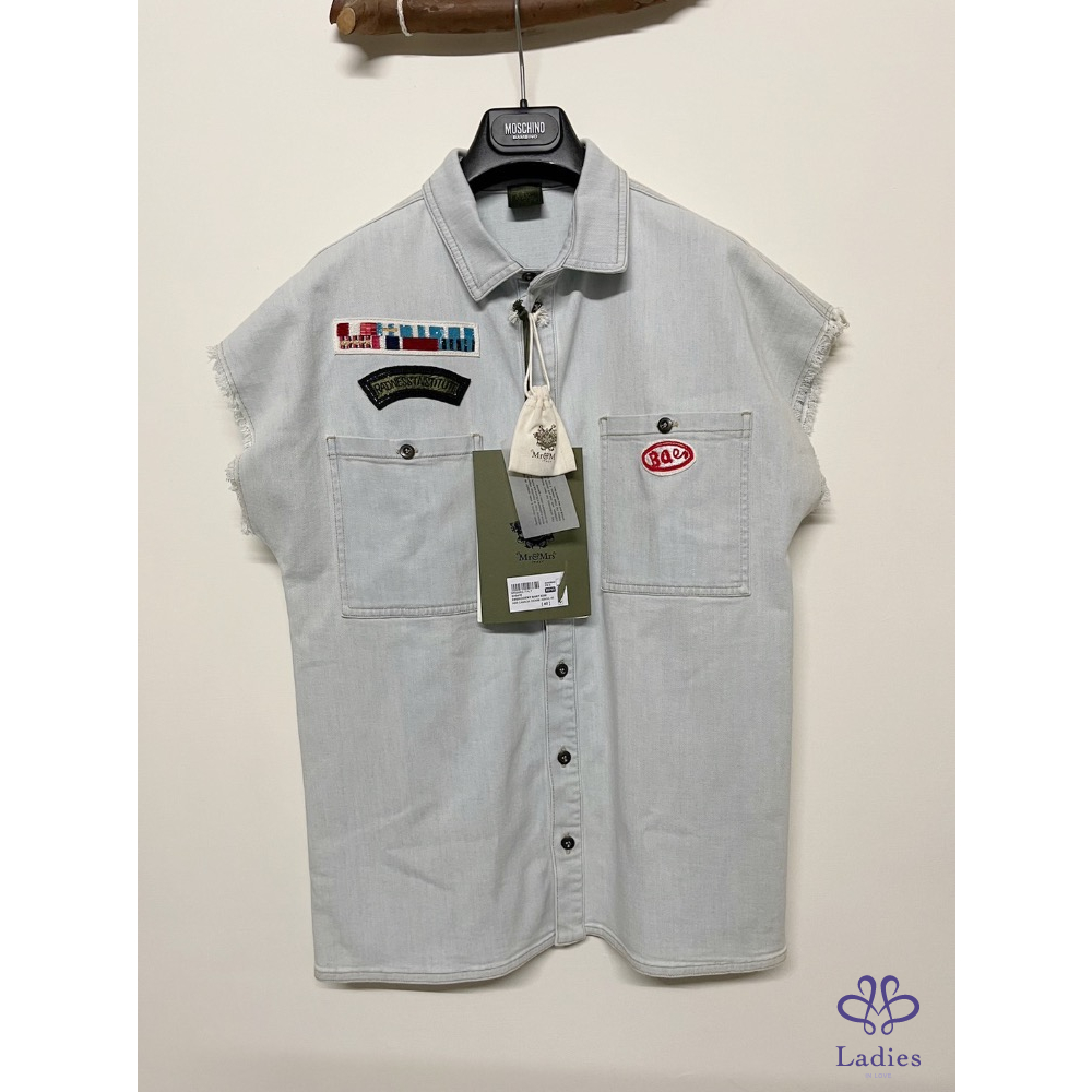 首頁 精品服飾 全新意大利皮草夫婦Mr&Mrs Italy 刺繡珠釘徽章無袖單寧外套