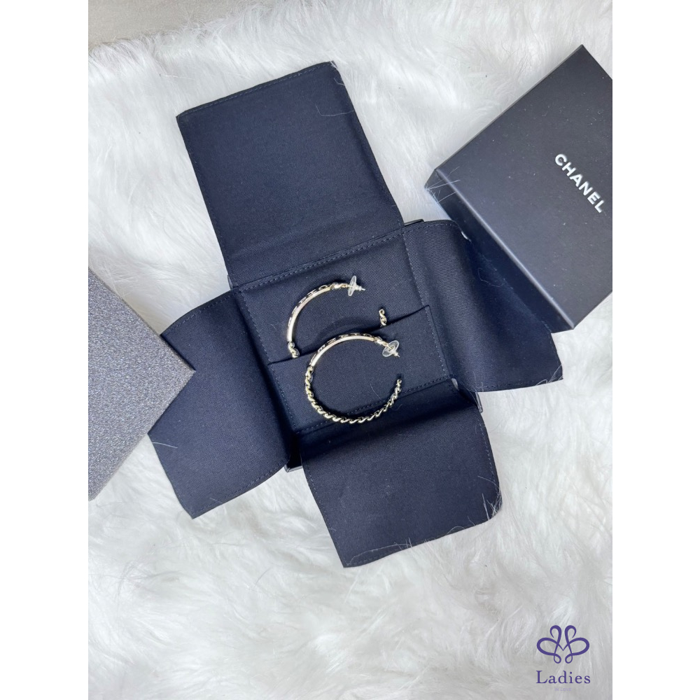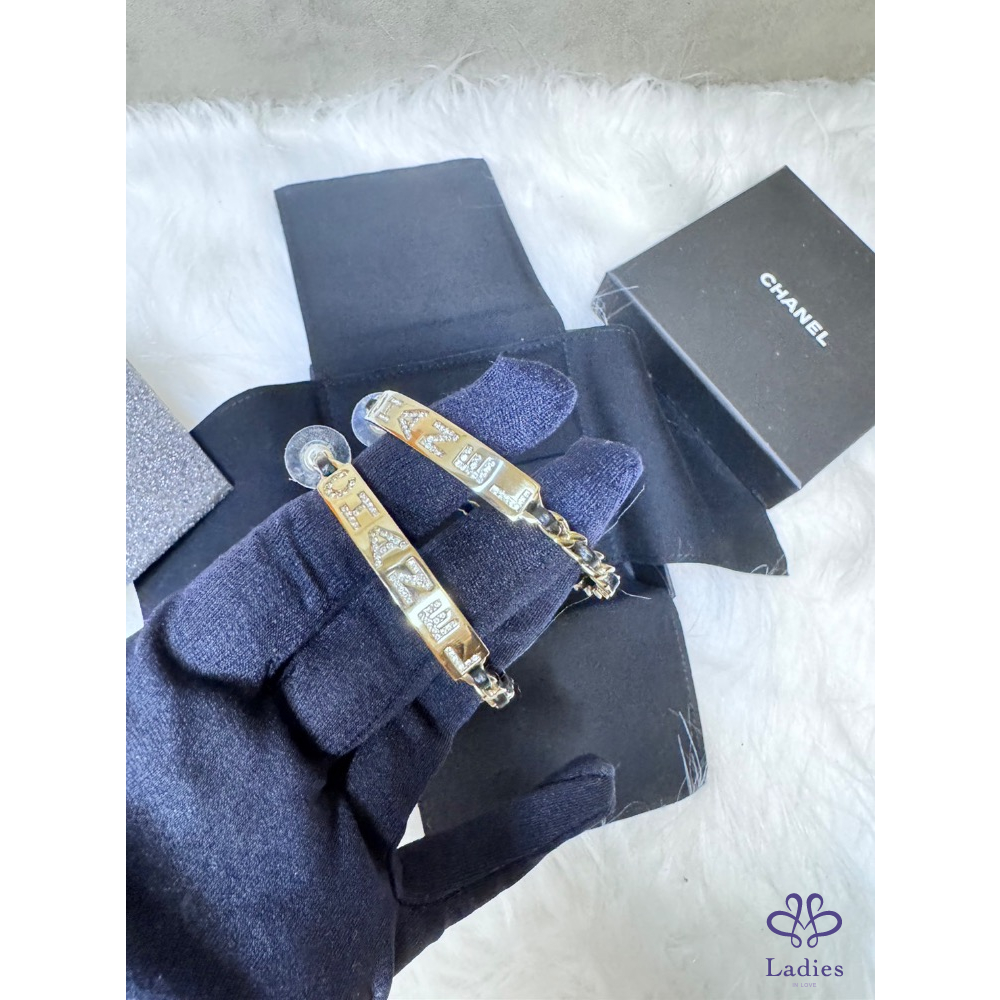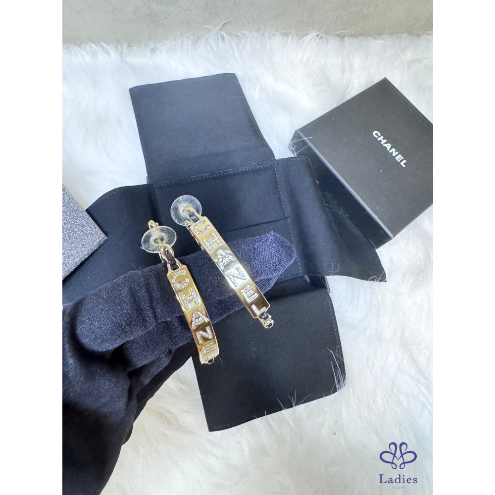 首頁 精品手錶 二手????香奈兒 chanel 水鑽Logo 皮穿鍊耳環