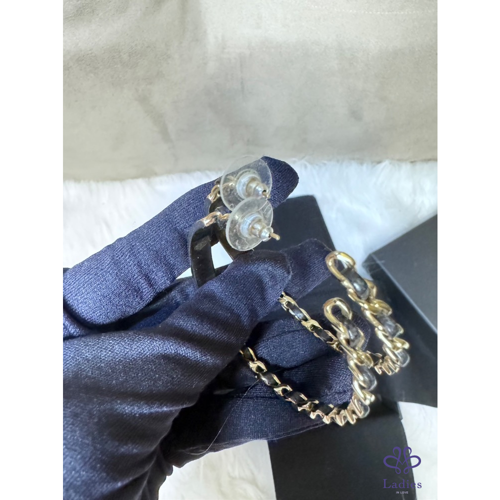 二手????香奈兒 chanel 水鑽Logo 皮穿鍊耳環