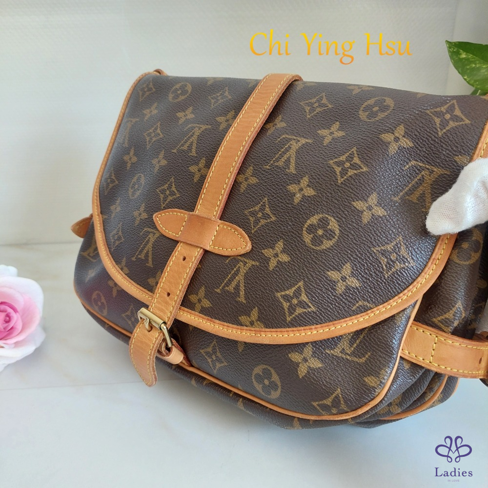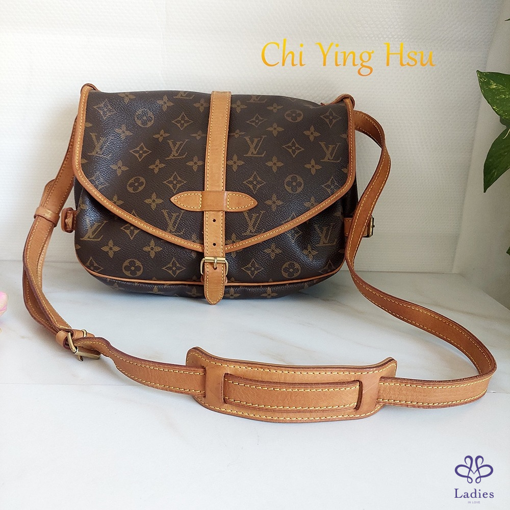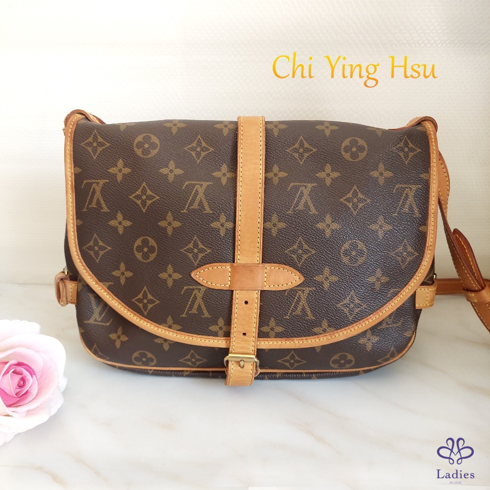 商品名稱:LOUIS VUITTON LV 路易威登 原花 PVC塗層帆布 SAUMUR MM 馬鞍 肩背包