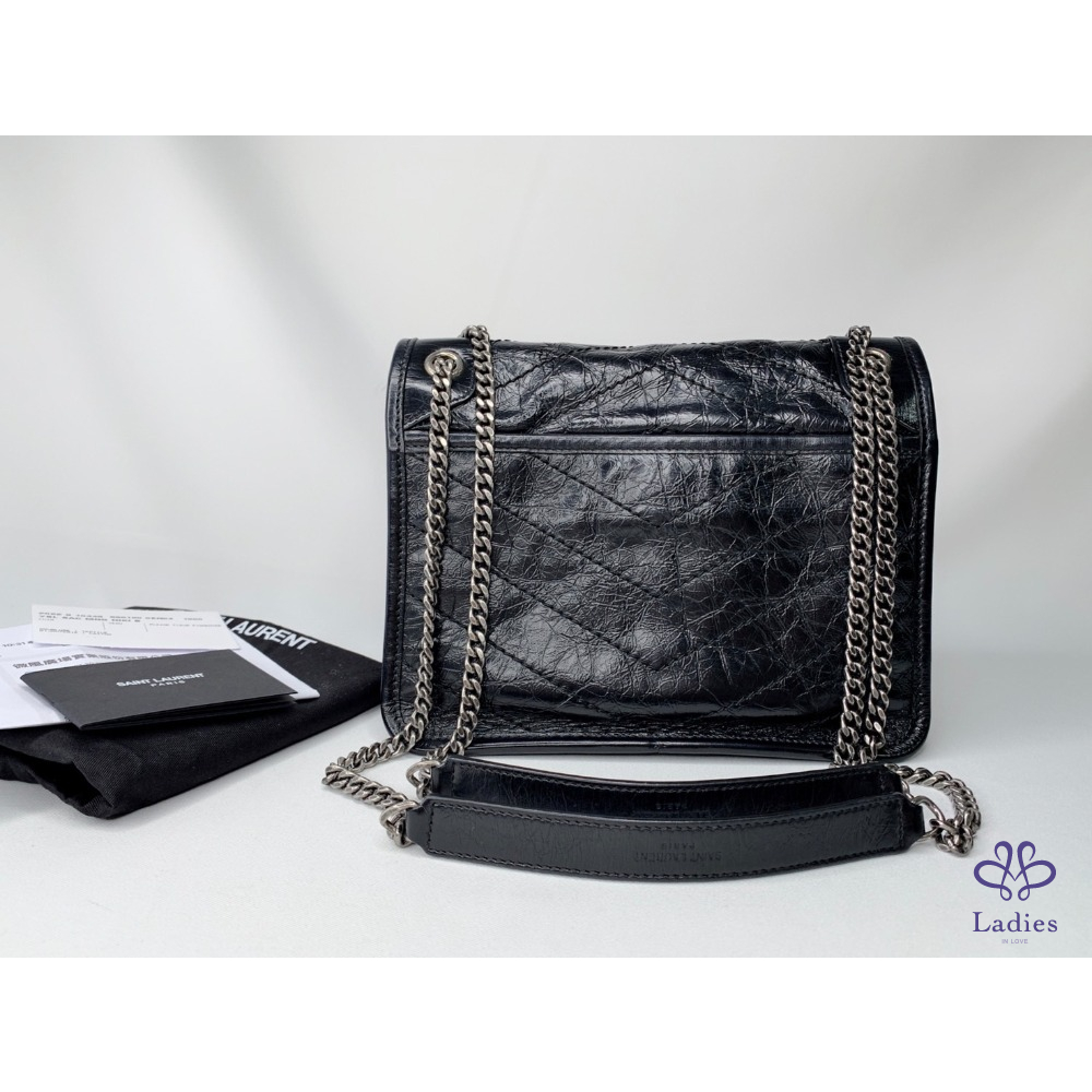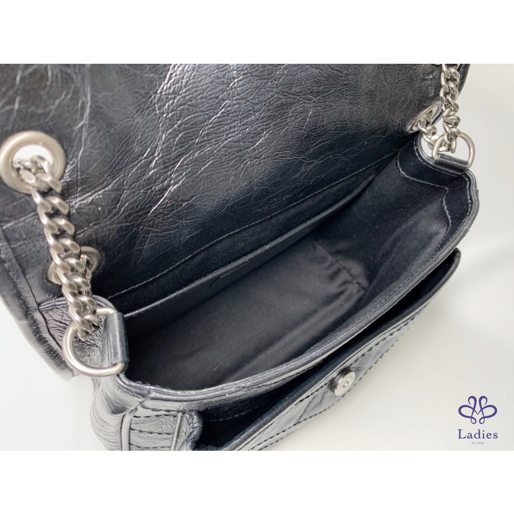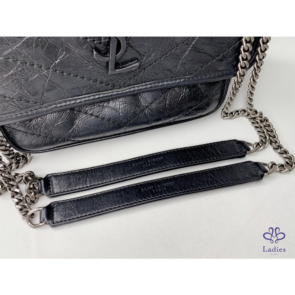 產品信息 【YSL Niki Baby銀鍊肩背包】 #櫃上漲價近11萬 #熱門爆搶baby尺寸 採用無金屬鞣製皮革和有機棉襯裡製作 綴以皮革包覆YSL MONOGRAM 包身輕盈,有兩個隔層,背面有一個大型貼袋 滑動式鏈條肩帶方便肩背或斜背 整體品項新舊如圖,二手商品均有正常使用/存放痕跡 型號:633160 尺寸:21x16x7.5cm 附件:原廠防塵袋、電子發票影本、小卡 #A113021901