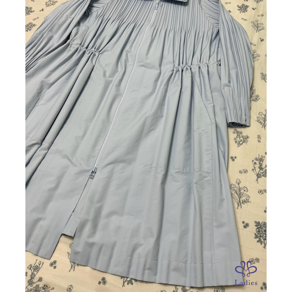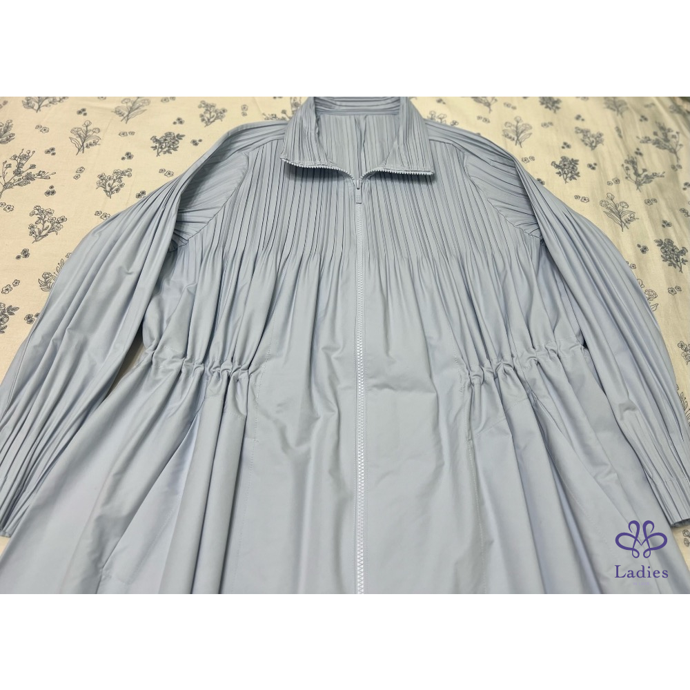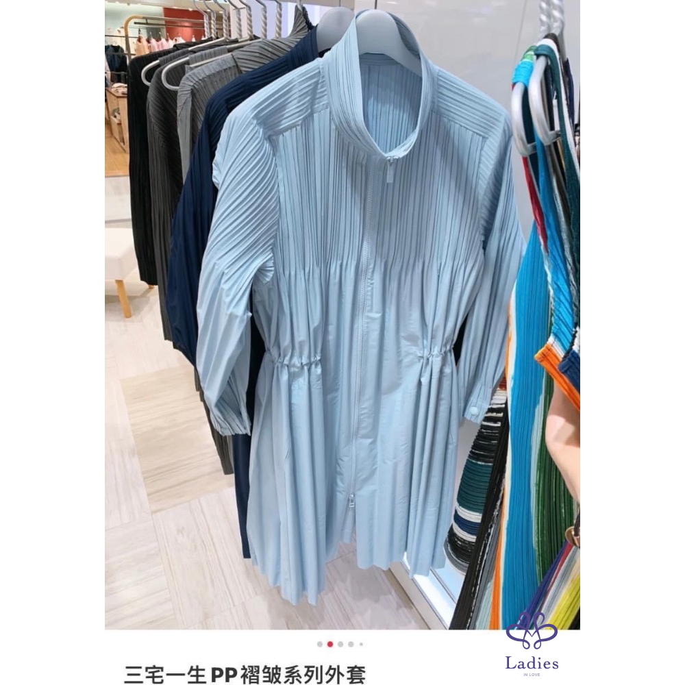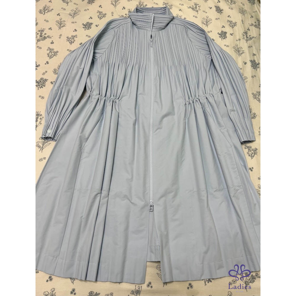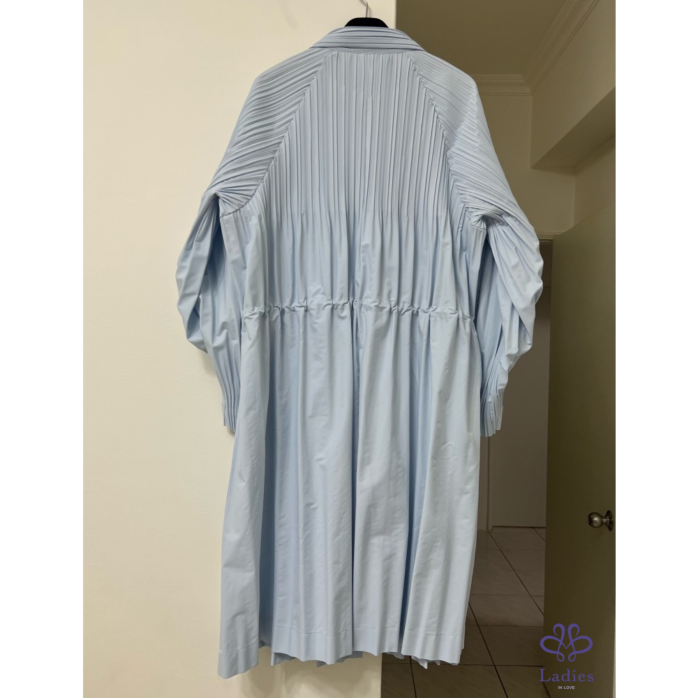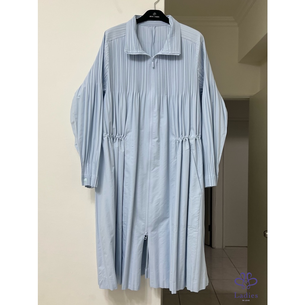 售三宅一生Pleats Please Jaunty baby藍色簾褶風衣長外套,疏密雙皺傘狀剪裁,防風防水,斜肩剪裁很顯瘦,既可當洋裝單穿,又可當外套搭配,穿出自己的風格。